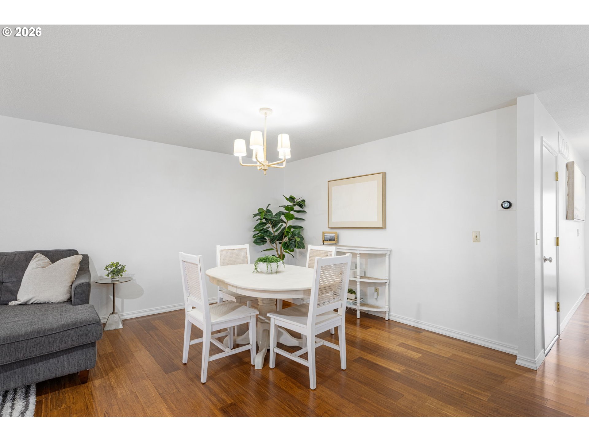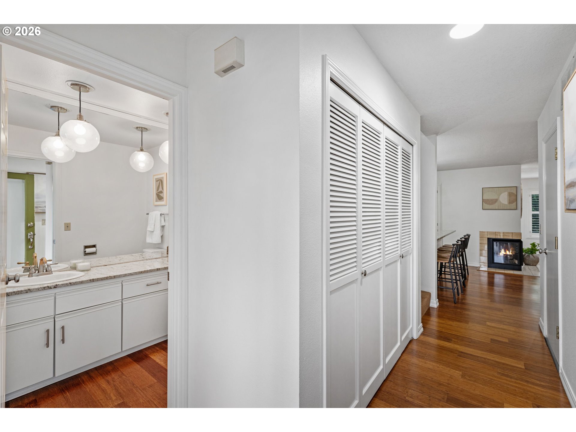 This beautifully updated home offers a peaceful escape, backing to forest views and filled with natural light. Warm, natural finishes and bamboo flooring create a calming atmosphere throughout, with serene forest views from nearly every window. The open flow between the kitchen, dining, and living areas feels both spacious and welcoming, ideal for everyday living and entertaining. French doors open to a covered patio, providing the perfect spot to enjoy the surrounding nature year-round. The spacious primary suite is a true retreat, featuring a dedicated office or sitting area, a private deck overlooking the treetops, generous closet space, and an updated bath. Thoughtful upgrades are found throughout the home, including updated bathrooms, bamboo flooring, an EV charger, and fresh interior paint. Offering a rare blend of tranquility, functionality, and modern convenience, this home delivers peaceful forest living just minutes from city amenities.