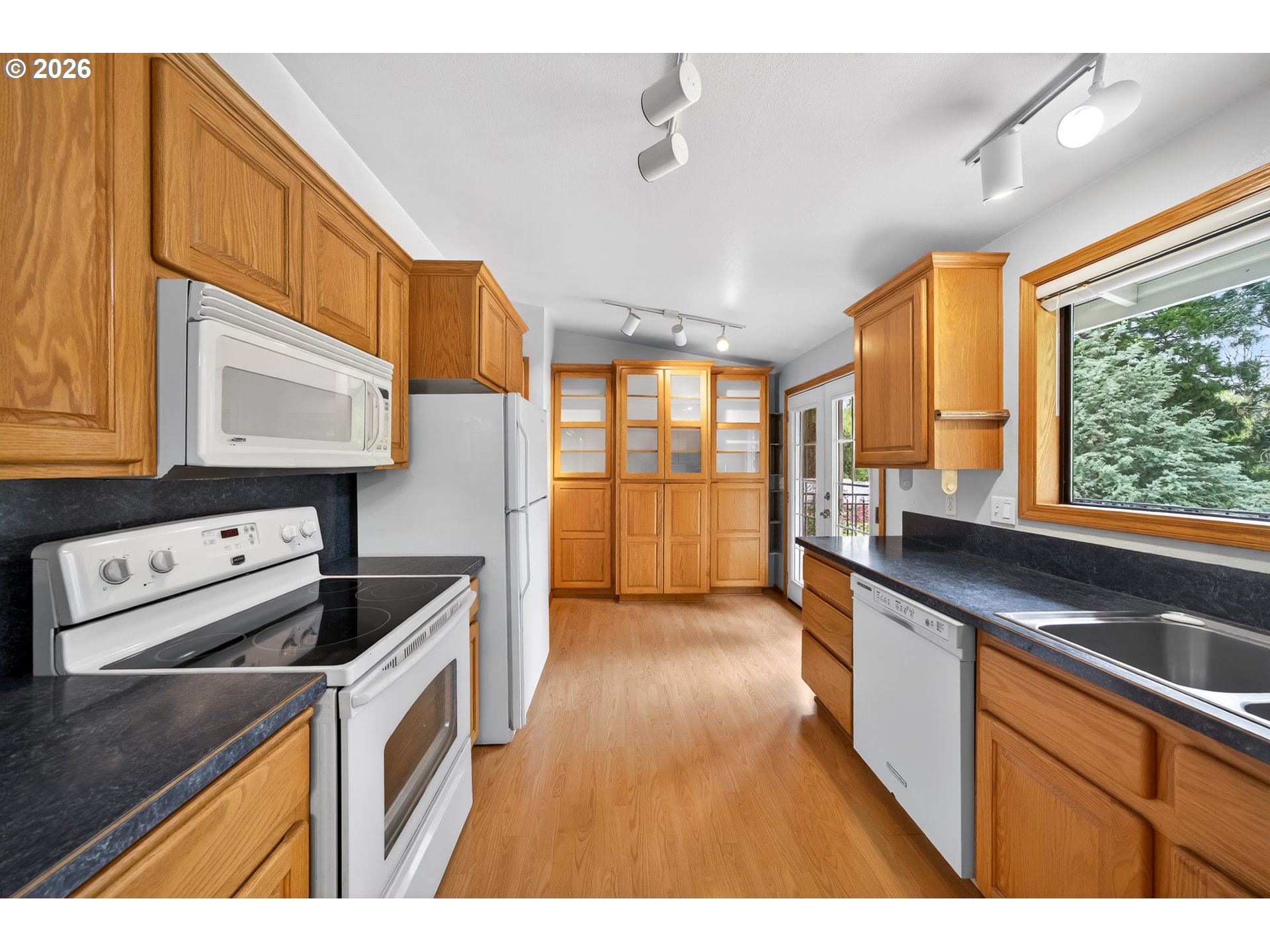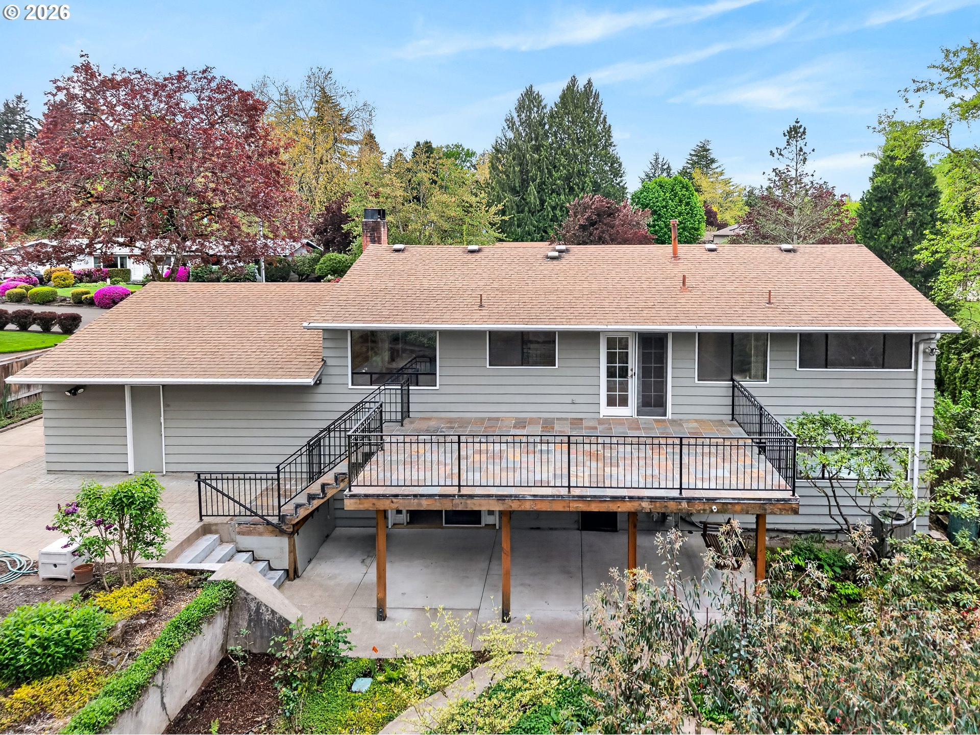 (503) 893-8874Welcome to your own private garden sanctuary in a quiet, established Tigard neighborhood. This split-level home features vaulted ceilings and skylights that fill the main level with natural light. The great room includes a gas-insert fireplace, large windows, and skylights. The open kitchen flows into the dining area and out to a large, deck, ideal for entertaining or relaxing. This level also includes a spacious primary bedroom with a sizeable walk-in closet and convenient access to the full hall bath via a pocket door. Downstairs offers two additional bedrooms, a second full bath, and a laundry/mud room with its own entrance to the back patio. The large downstairs bonus room has a thermostat-controlled gas-insert fireplace, and access to the two-car garage and the back patio. The AC and high-efficiency furnace are new as of 2022. Step outside to discover what truly sets this home apart, a fully fenced garden oasis on nearly half an acre, backing up to a green space for added privacy. Garden showpieces include a tulip saucer magnolia, dark pink dogwood, the unique Arizona "Blue ice" cypress, multiple flaming crape myrtles and burning bushes, a variety of Japanese maples, and four color variations of redbud trees. Blueberry bushes and fig trees have provided an abundance of fruit each year. To the right of the garage is a long driveway, suitable for RV parking, that reaches a versatile outbuilding. The outbuilding was thoughtfully designed for a past owner, a ceramic artist, featuring a half bath, an extended stainless-steel sink with hot and cold water, electrical service with 220V capability, an industrial gas heater, and central drain for easy cleanup. There are many shelves, and built-in drawers. The attached carport is also plumbed for water, gas and electricity and has a retractable garage door. Convenient front and back sprinkler systems for stress-free watering. This home is truly a standout, offering space, functionality, and a beautiful setting all in one.