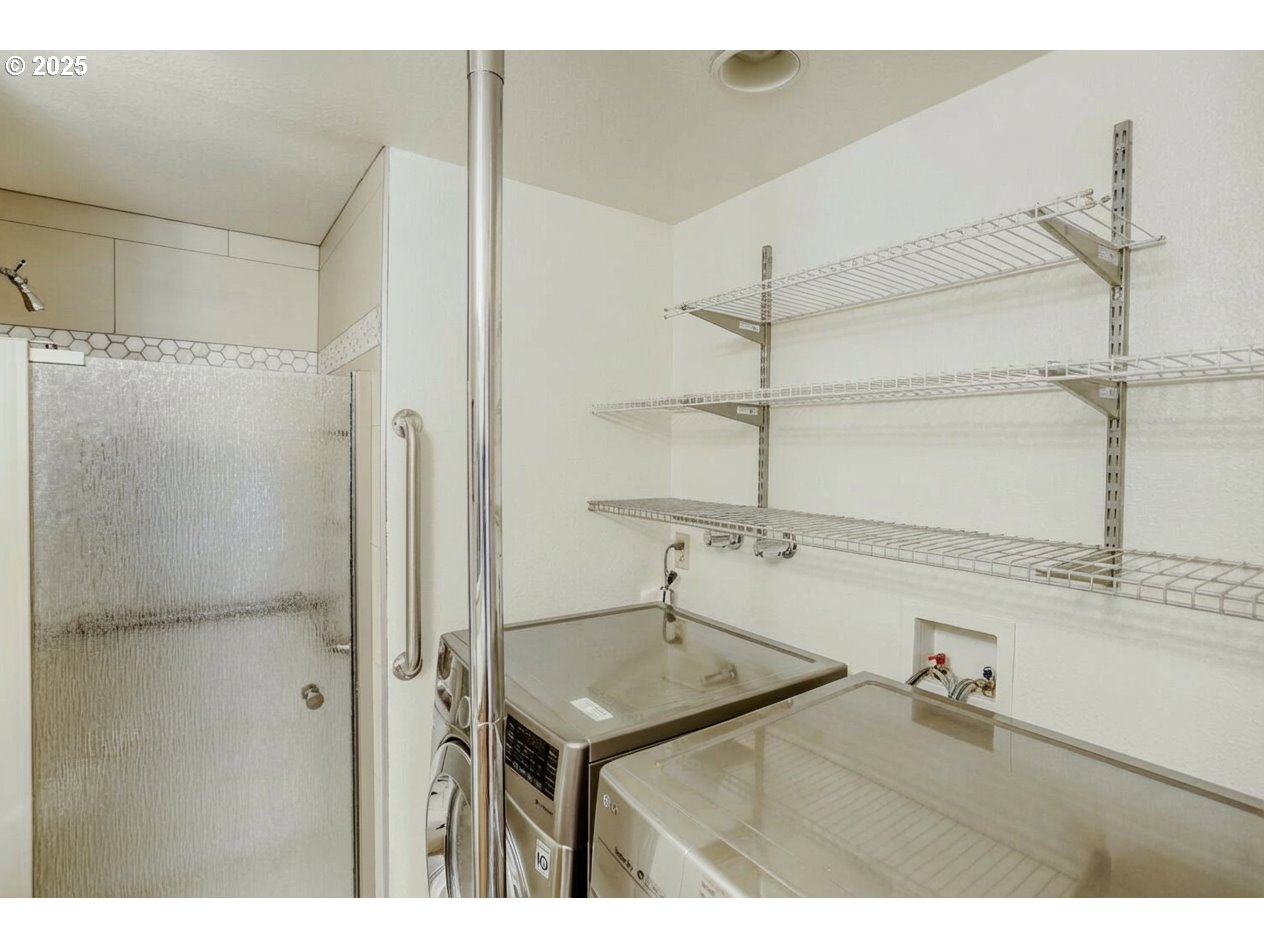 Nestled in King City’s coveted Par 4 neighborhood, this updated townhome offers true main-level living plus a flexible lower level — all in a vibrant 55+ community. The 2,035 sqft floor plan with 2-car garage, features a spacious living room with vaulted ceiling and a wall of windows with gleaming hardwoods throughout. The remodeled kitchen and baths are stylish and functional, while the primary suite offers a generous walk-in closet and private bath with roll-in shower. A second bedroom and full bath with laundry on the main make day-to-day living easy with no steps or stairs required. Downstairs, you’ll find a 3rd bedroom and full bath and a bonus room with fireplace — ideal as a family room, hobby space, or 4th bedroom - plus over 500sq ft of storage! Hardwood floors continue on this level. The home is well situated for caretaker quarters and is updated for accessibility, with safety grab bars installed in bathrooms, hallways, and key transition areas. Outdoor living is a standout with a large trex deck spanning the back of the home and a private front courtyard. 22kw Generator and water softener included. A short walk to the clubhouse, residents enjoy a 9-hole golf course, library, wood shop, clubs, and a full calendar of social activities. Shopping, dining, and services are close by. Move right in and start enjoying the easy, resort-style lifestyle that is King City Civic Association.
