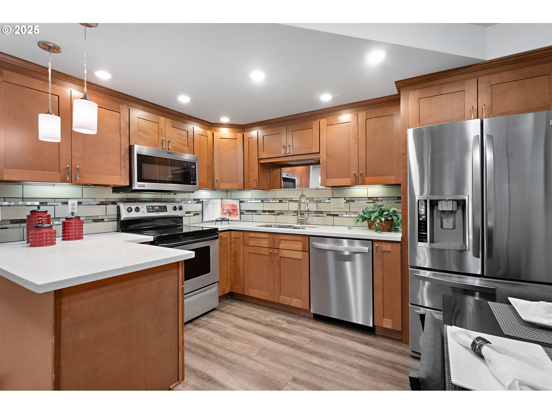 OPEN SUNDAY NOVEMBER 30 1-3 Welcome to 12065 SW King Arthur St—an inviting 2-bedroom, 2-bath, 1028 sq ft single-level end unit condominium in the award-winning 55+ King City community! This rare gem offers privacy, peace, and a modern touch of style, all with the convenience of no steps or stairs. Step inside and discover a beautifully updated open floor plan designed for easy living. The elegantly remodeled kitchen features rich cherry cabinets, sleek quartz countertops, stainless steel appliances, and plenty of workspace for the inspired home chef. The spacious great room flows effortlessly for entertaining or relaxing, highlighted by updated canned ceiling lights and smooth ceilings (popcorn removed!). Luxury Vinyl Plank flooring adds warmth and sophistication throughout, while the efficient minisplit system provides whisper-quiet comfort year-round. A spacious utility room provides ample storage and features a washer and dryer—no need to lift a finger! Outdoor living is easy and inviting with a charming enclosed covered entry patio—perfect for sipping morning coffee or catching up with neighbors. Located in the vibrant 55+ King City Civic Association, residents enjoy resort-style amenities, including a golf course, pool, library, woodworking shop, ceramics studio, arts and crafts center, and a calendar full of engaging activities. This stylish, move-in-ready condo isn’t just a home—it’s a lifestyle. Come experience the friendly charm, active energy, and easy living that make King City the perfect place to call home!
