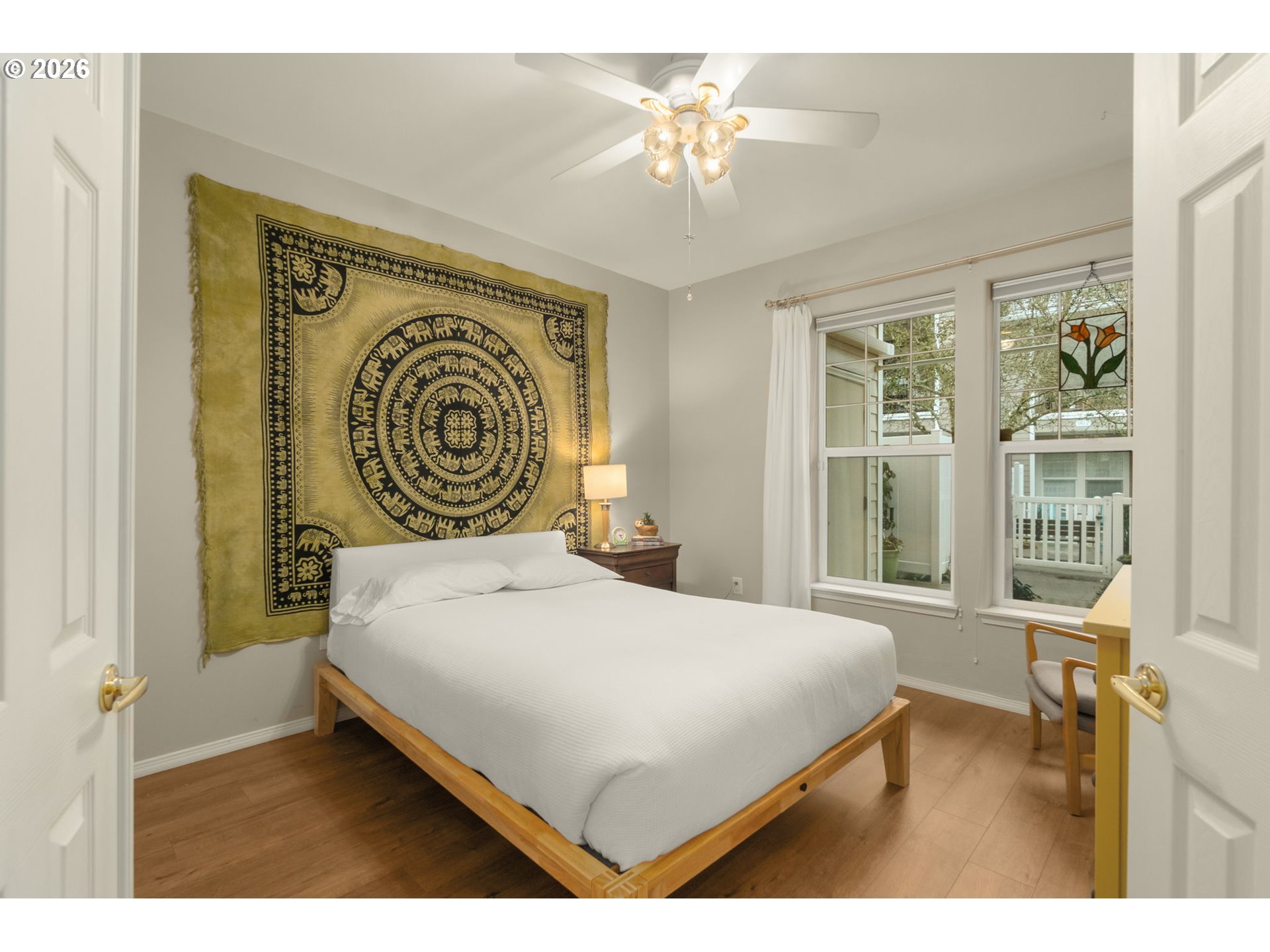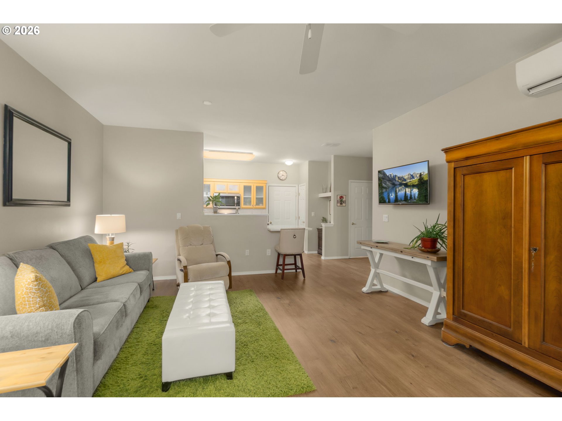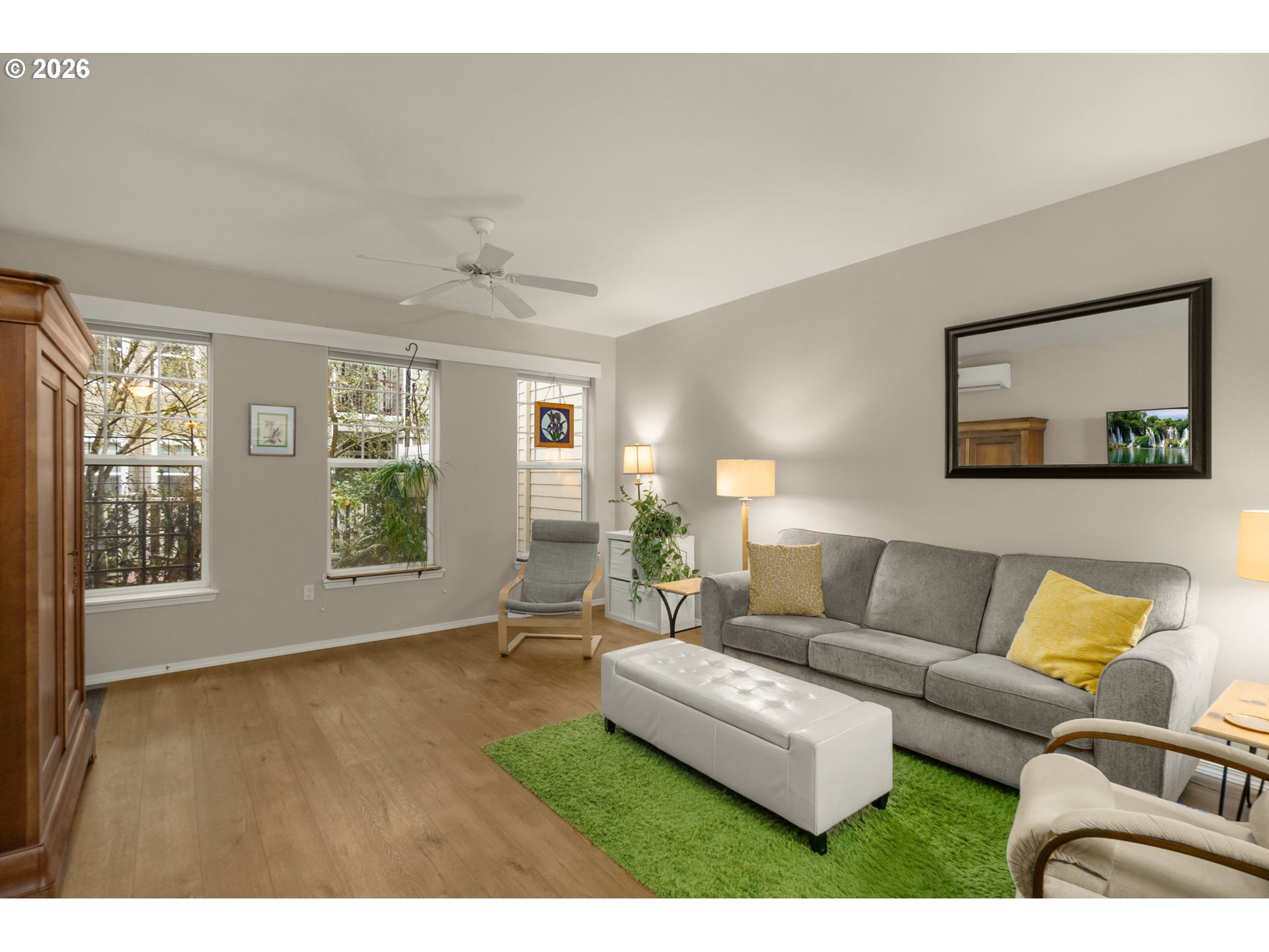Live the coveted Orenco Station lifestyle in this beautifully updated and maintained hard-to-find one level ground floor one bedroom, one bath condominium located within walking distance to all the wonderful conveniences the Orenco Station/Platform District have to offer. This lovely ground level unit condo is doused in light and has been tastefully updated with Luxury Vinyl Plank floors throughout, quartz counters and stainless appliances in the kitchen, heat pump mini-split, and a large master suite with ample walk in closet and updated bath. Enjoy sipping your morning coffee while greeting neighbors from your very own fenced in side garden. A deep attached one car garage with an extra covered parking spot come with this unit, and several visitor parking spots adjacent to the unit provide convenience for visiting friends and family. This unit is nestled in a nice quiet location within the community just a short walk to the clubhouse, swimming pool, dog park, restaurants, the seasonal Orenco Farmer's Market, Intel and the Orenco Max stop. Once you've lived the Orenco Station lifestyle, nowhere else will do...