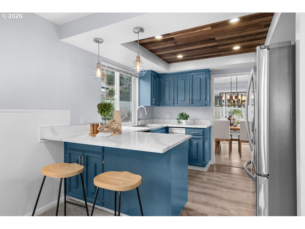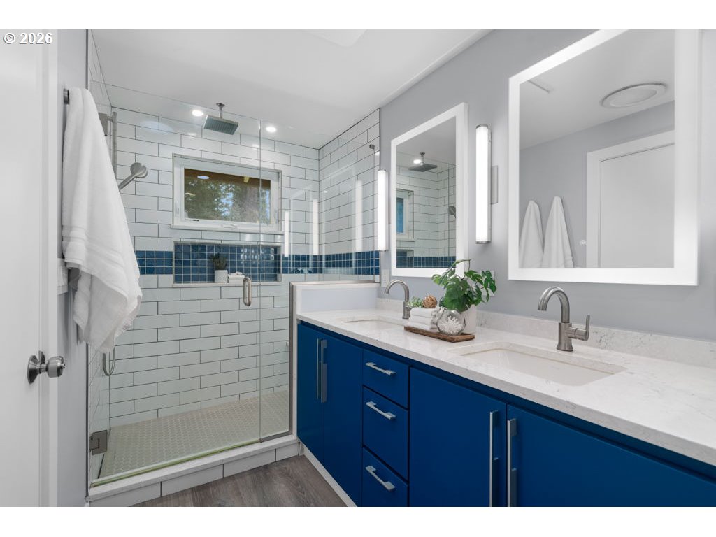 OPEN HOUSE SAT 1-3PM. This single level, 3 bed/2 bath home has been extensively cared-for, updated, and remodeled throughout. The primary bedroom includes double closets and a remodeled en-suite bathroom with a large walk-in shower, custom tile, lighted anti-fog mirrors, a new vanity with quartz countertop, and beautiful updated fixtures. The hall bathroom is also fully remodeled with custom tile and an extra-large bathtub suitable for taller individuals. The updated kitchen features quartz countertops, pendant and recessed lighting, a new sink, new dishwasher, new refrigerator, and new built-in microwave. But they left the amazing trash compactor — it's a rare feature you never knew you needed! Newer luxury vinyl plank flooring runs through the living areas, dining room, hallways, kitchen, and bathrooms. Additional recent improvements include a brand-new 95% efficient furnace and updates to much of the plumbing, electrical, attic ventilation, and crawlspace. Outside, the property offers a large yard with newer fencing and a detached two-car garage. Ideally located in a quiet, close-in Washington County neighborhood with no HOA.