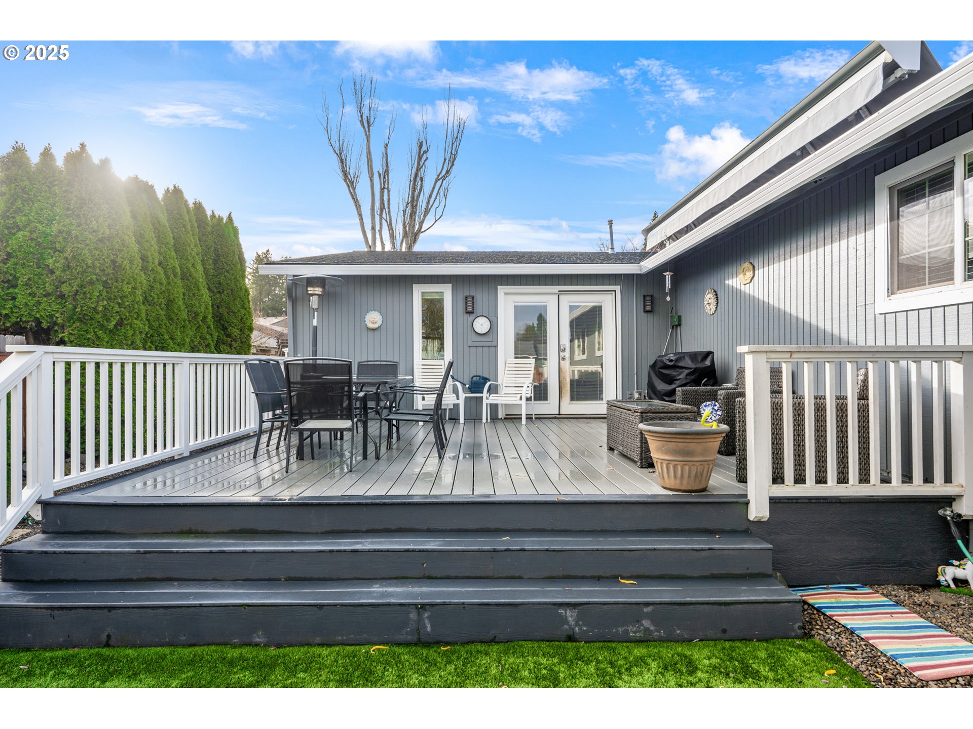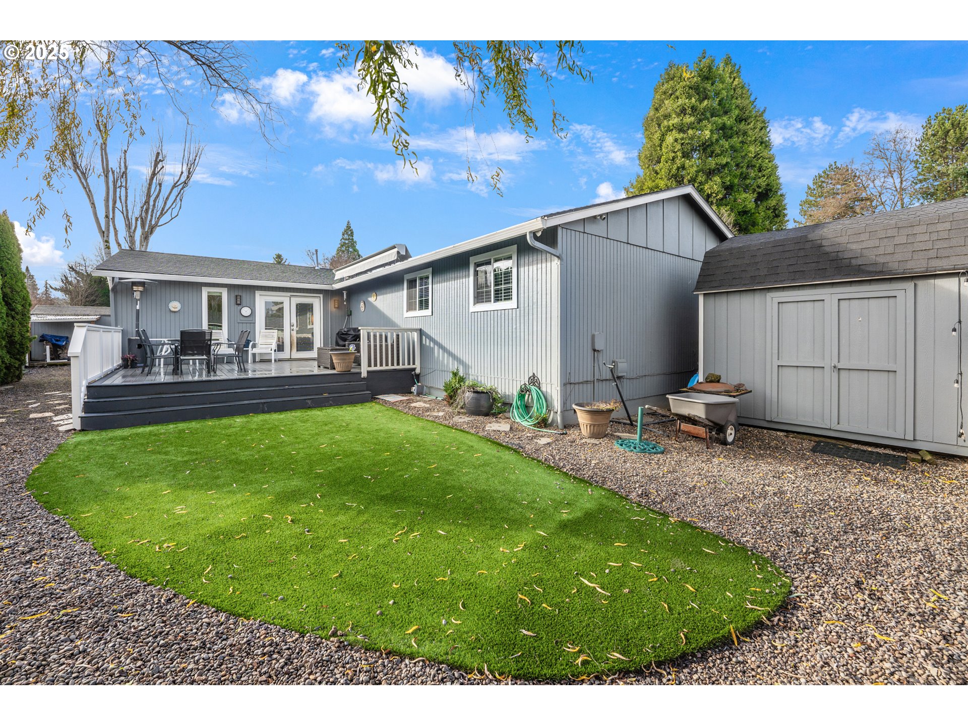 Beautiful one-level updated home on a corner lot in desirable Summerlake. $47K in 2 year old solar panels that covers almost all of your electric bill! Features a large, separate dining room and a newer kitchen with white cabinetry, soft-close drawers, side-by-side stainless steel refrigerator, quartz countertops, gas range, pantry, eat bar, and a removable island offering excellent storage and flexibility. Engineered flooring runs throughout the home. Massive family room open to the kitchen with French doors leading to a new deck. Private primary bedroom off the family room features its own ensuite walk-in closet, walk-in shower and quartz countertops. On the opposite side of the home are three additional bedrooms and one updated bathroom. One bedroom features a Murphy bed, built-in shelving, and a closet organizer. Another bedroom, currently used as an office, includes a nook that was previously a closet and can be easily converted back. Private fenced back yard with beautiful trex deck and 2 sheds. 2 car garage (1 car is used as a hair salon - easily convert back to garage) with tons of shelving. Rv parking!