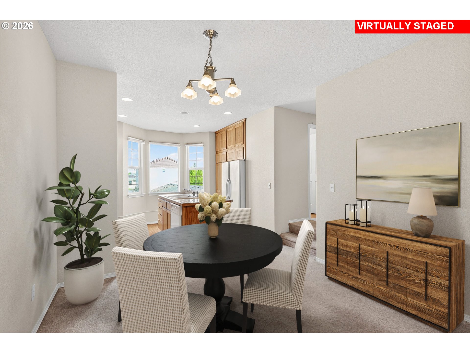 Light-filled and spacious tri-level townhouse in a quiet Beaverton neighborhood, offering 1,429 square feet of well-designed living space. The main level features a bright kitchen with island, eat bar, bay window, and built-in appliances, seamlessly open to the dining and living areas—creating an easy, connected flow for everyday living. The living room is anchored by a cozy fireplace, making it a comfortable space to relax or unwind. Upstairs includes two generously sized bedroom suites, each with their own ensuite baths and walk-in closets, providing ideal separation for privacy, guests, or a flexible living setup. The lower level offers a large bonus room that functions perfectly as a third bedroom, home office, media room, or workout space—adding valuable versatility to the home. Enjoy a private patio for outdoor living, along with an attached one-car garage and off-street parking for two additional vehicles, a new heat pump will be installed prior to closing and includes a 10-year transferable warranty, offering added peace of mind. Ideally located near the recently rebuilt Vose Elementary and desirable Southridge High School, with easy access to shopping, dining, and major commuter routes, this home offers a combination of comfort, function, and location.