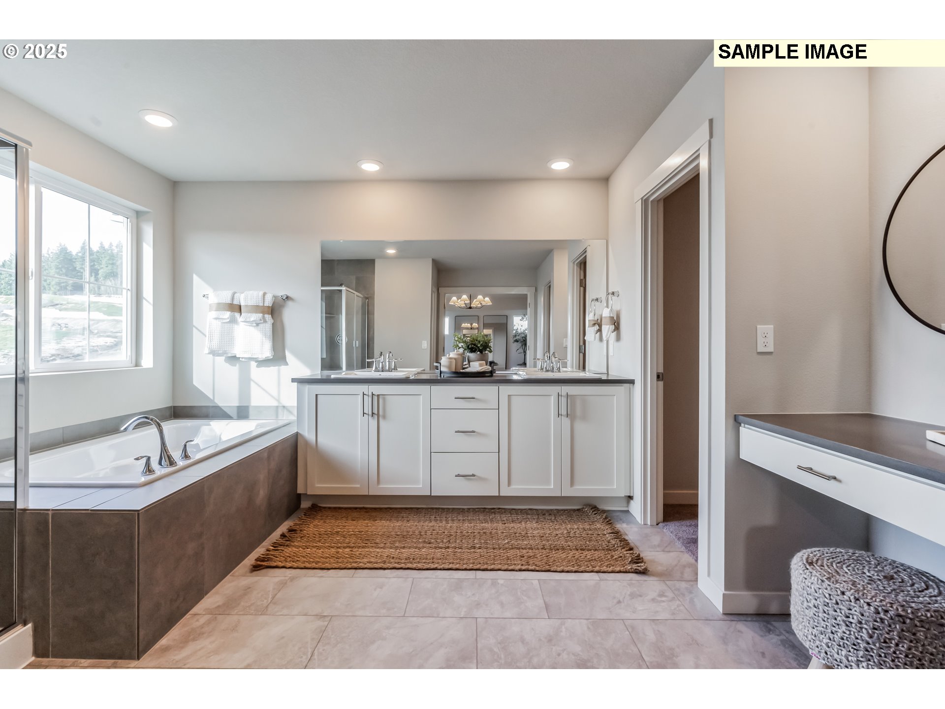 This new construction home is located in Heights at Cooper Mountain where residents enjoy onsite community parks along with nearby shopping, dining and entertainment at Progress Ridge. The Sellwood plan features an open layout on the first floor with a great room, dining room and kitchen that extend to a covered patio, plus a den, three-bay garage and secondary bedroom. Upstairs includes a bonus room and four bedrooms, including a spacious primary suite with a retreat, private bath with separate tub and shower, and split walk-in closet. Interior highlights include quartz countertops, shaker-style cabinets, a vertical tile backsplash in the kitchen, along with other premium highlights. This home also includes central air conditioning, a refrigerator, washer and dryer, and blinds—all at no extra cost! Located on homesite 136, this home is expected to be complete in winter 2026. Rendering is artist conception only. Photos are of a similar home, features and finishes will vary.