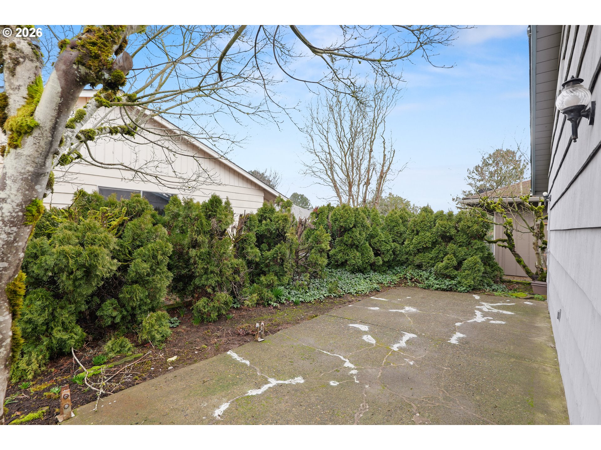 Bright and cheerful single-level ranch on a low-care corner lot is an ideal condo alternative. This well-maintained 2-bedroom home features hardwood floors throughout (excluding the kitchen) and freshly painted interior walls that enhance the light, open feel. A heavy-duty Mascotte-style front screen door adds both charm and durability.The attached oversized garage offers approximately 500 sq ft of space, complete with pull-down attic storage—perfect for hobbies, tools, or extra storage. A long driveway provides parking for two vehicles, a rare find in King City. The spacious side patio offers flexibility for outdoor relaxation, additional storage, or could easily be covered for year-round use.With minimal landscaping responsibilities, generous parking, and an oversized garage, this home delivers easy living in a convenient setting—perfect for buyers seeking comfort, simplicity, and value.