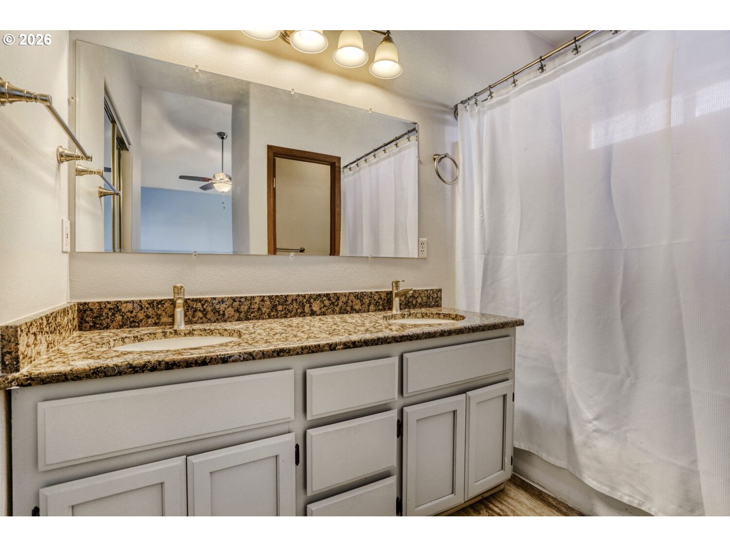Discover the perfect blend of modern comfort and effortless style in this move in ready single level home. Featuring three bedrooms and two full bathrooms, the residence has been thoughtfully updated throughout to provide a fresh, contemporary feel. The heart of the home is an expansive open concept great room where the kitchen, dining, and family areas flow seamlessly together under soaring vaulted ceilings. Flooded with natural light, this inviting space is anchored by a cozy fireplace, perfect for relaxing evenings. The primary suite serves as a true private retreat, boasting an elegant ensuite bathroom with a dual vanity and direct slider access to the back patio.Recent upgrades add both style and peace of mind, including luxury vinyl flooring, a new dishwasher, updated blinds, and refreshed bathrooms with new toilets, sinks, and granite countertops. Ceiling fans have been added in the living room, family room, and primary bedroom for enhanced comfort. Major system improvements include a newer A/C and furnace, as well as an Aquasana whole-house water filtration system. The exterior was freshly painted last fall, completing the home’s polished look. Whether you’re hosting a dinner party in the bright living area or enjoying a quiet morning coffee outdoors, this home is designed for easy living, thoughtful updates, and modern convenience. [Home Energy Score = 6. HES Report at https://rpt.greenbuildingregistry.com/hes/OR10243965]