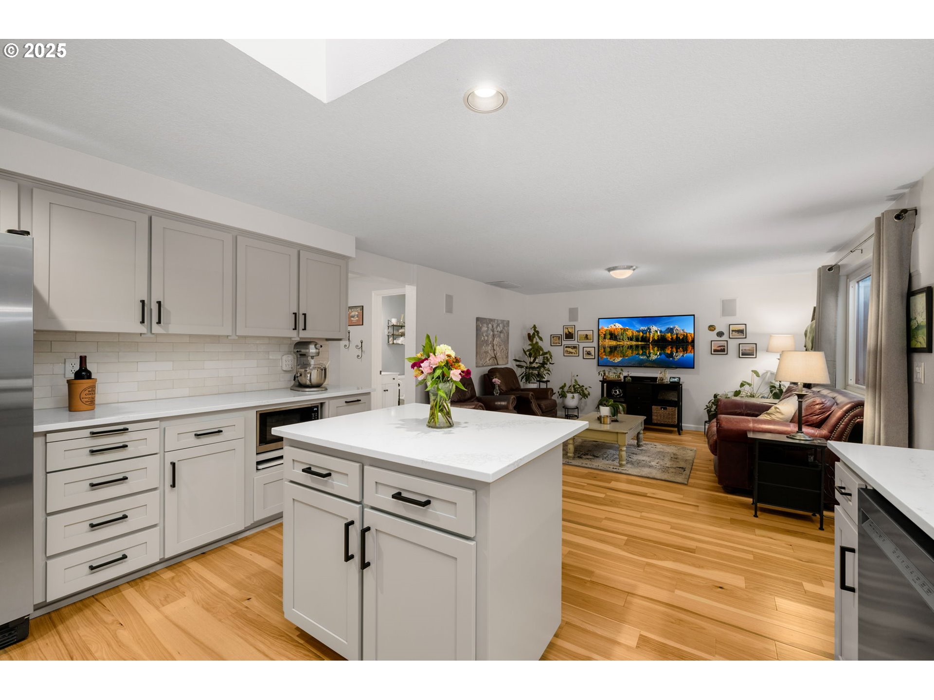Light, bright & beautiful home in one of the most desirable neighborhoods. Step into the welcoming foyer and feel the warmth and care throughout. The spacious living room features vaulted ceilings, a cozy fireplace, and gleaming hickory hardwood floors that flow through the main level. The fully remodeled kitchen is the true heart of the home, showcasing quartz countertops, 6 burner gas range with electric convection, large eating bar, skylights and abundant storage. Enjoy your morning coffee in the sunny breakfast nook overlooking the backyard. A main-level office or guest room and a full bath provides flexibility for your families lifestyle. Upstairs, you’ll find four generous bedrooms - new carpet in 2024, including a serene primary suite with double sinks, a jetted soaking tub, and dual closets—one a spacious walk-in. Convenient upstairs laundry makes daily life easy. Situated on a corner lot, the backyard offers a fully fenced space with raised garden beds, a patio for entertaining, and plenty of room to play or relax. The exterior of the home shines with a new 50-year roof, gutters and fresh exterior paint (2024)—offering peace of mind and lasting curb appeal. Additional updates include a tankless water heater, providing energy efficiency and endless hot water.The large garage with built-in workbenches provides ample space for hobbies, storage, or weekend projects. Near scenic Summerlake Park, top-rated schools, shopping, and dining—everything you need to enjoy the very best of living.