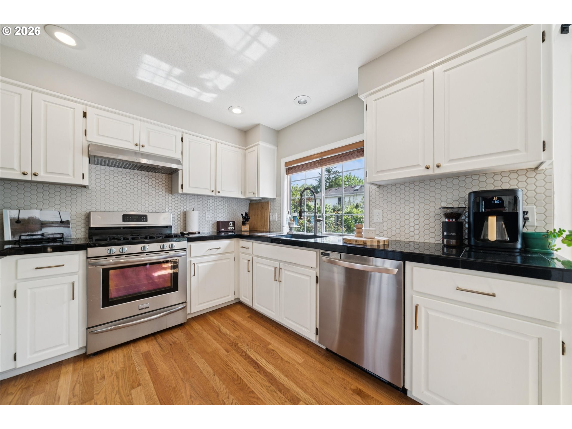 Charming 2-Story Traditional, move-in ready! Featuring a bright, open living room with a bay window, plantation shutters, and newer carpet. The recently remodeled eat-in kitchen offers hardwood floors, pantry, built-in desk, and a large dining area. Adjacent family room has hardwood floors, a gas fireplace insert, and a slider to the fenced, landscaped backyard with a deck — ideal for indoor/outdoor living. The oversized primary suite opens via French doors, includes a ceiling fan and a dual-vanity bath. Additional highlights include updated HVAC, generous closets, abundant natural light, and thoughtful updates throughout. Amazing neighborhood and location.
