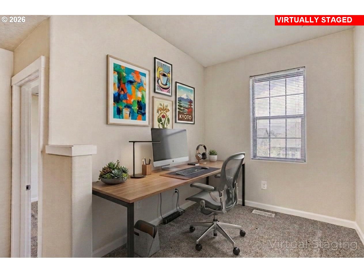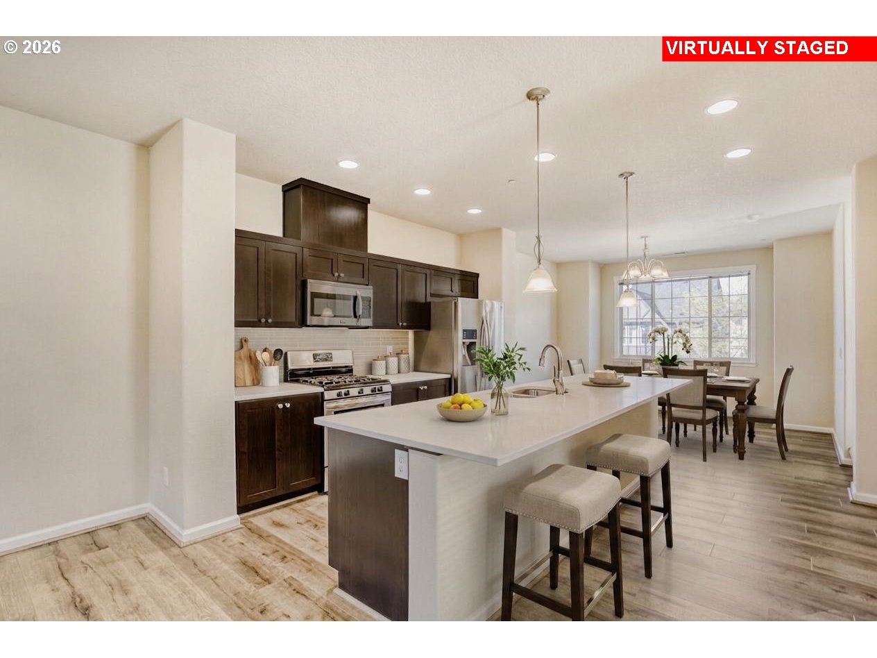 Lightly lived-in and impeccably maintained end-unit townhome in the desirable River Terrace community, within the Beaverton School District. Features 2 bedrooms, 2.5 bathrooms, and a versatile tech area/home office with abundant natural light. The gourmet kitchen offers an oversized quartz island, quartz countertops, and stainless steel appliances. Includes a tandem two-car garage with an upgraded wall-mounted opener. Thoughtfully upgraded with all-LED lighting and central A/C, this move-in ready home combines comfort and efficiency. Community amenities include a fitness center, pool, and parks. Conveniently located near Progress Ridge Town Square and Murray Scholls Town Center. A Home Warranty will be included.