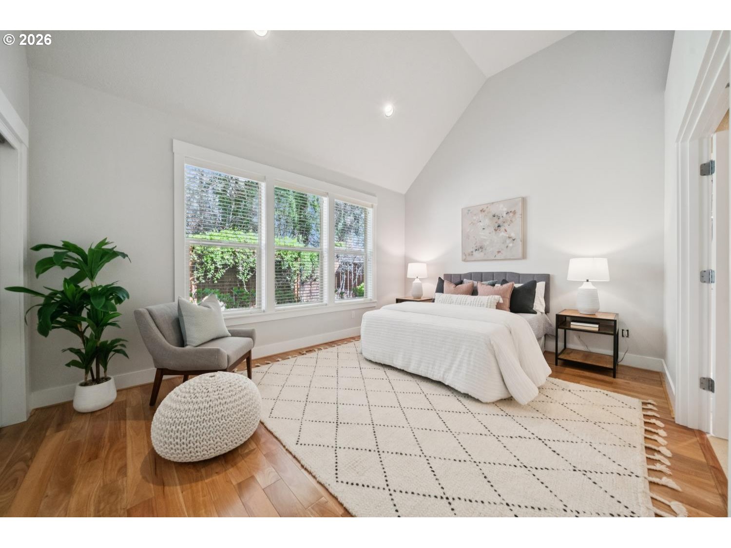 A lovely, meticulously maintained home that has been thoughtfully remodeled and checks all the boxes! Fresh paint, wood flooring and a completely remodeled kitchen with new appliances, a smart fridge, island with barstool seating, gas range, paneled hood and slab quartz countertops. The main level living space offers casual eat-in dining in the kitchen and a more formal dining area perfect for entertaining! The primary suite is located on the main floor with high vaulted ceilings, a spacious en suite bathroom with soaking tub and plenty of natural light. Washer and dryer plumbed in closet on the main in addition to the upstairs laundry room if main level living is desired! The upstairs offers a spacious bonus area plus two nice sized bedrooms and full sized laundry room with storage. Additional features include central vac, air conditioning, newer gas furnace and air filtration system and high quality carpet upstairs. A charming, low maintenance backyard with deck, pergola, plenty of entertaining space and privacy - backing to greenspace separating the home from Deer Creek elementary. This beauty does not disappoint!