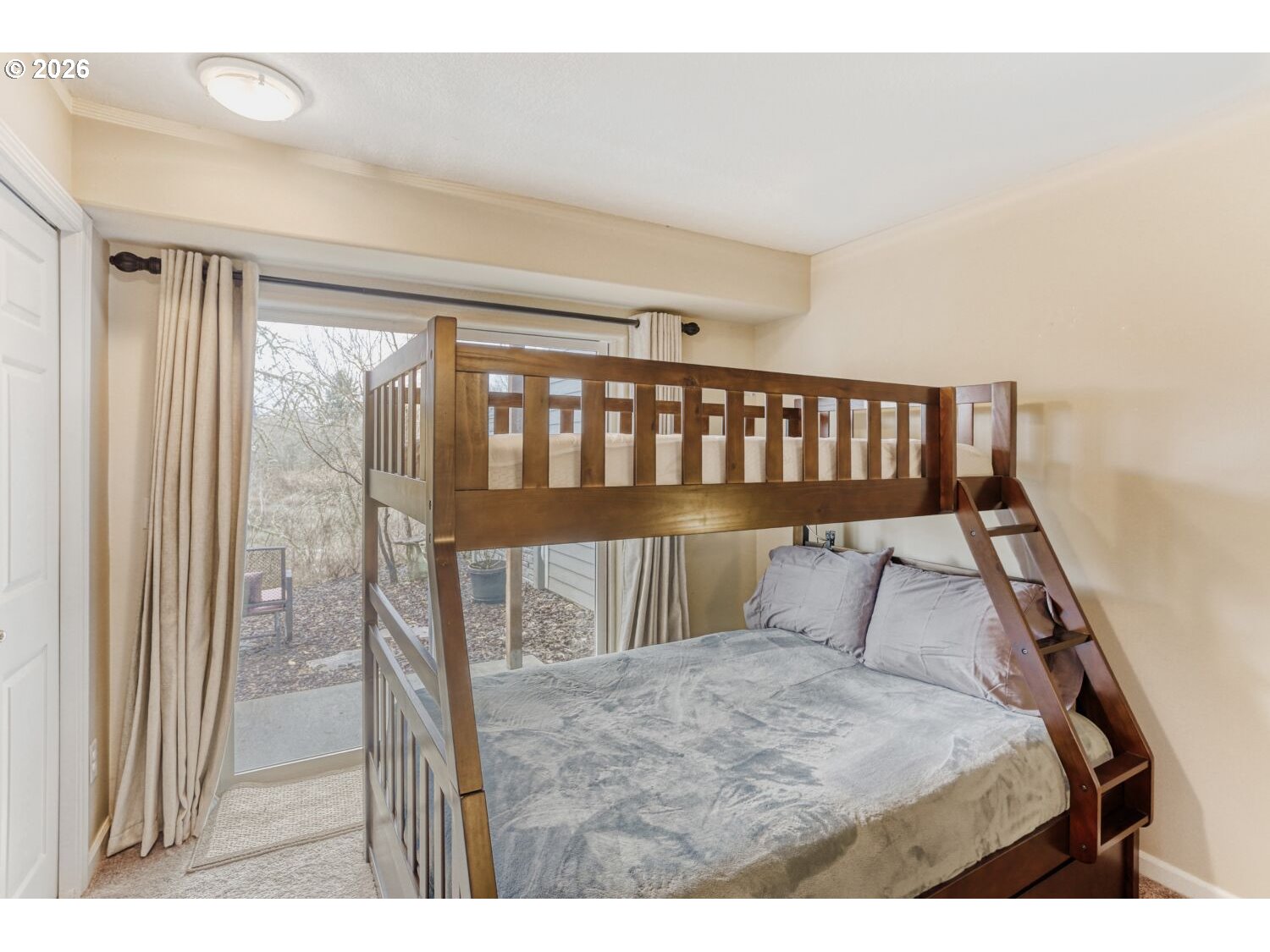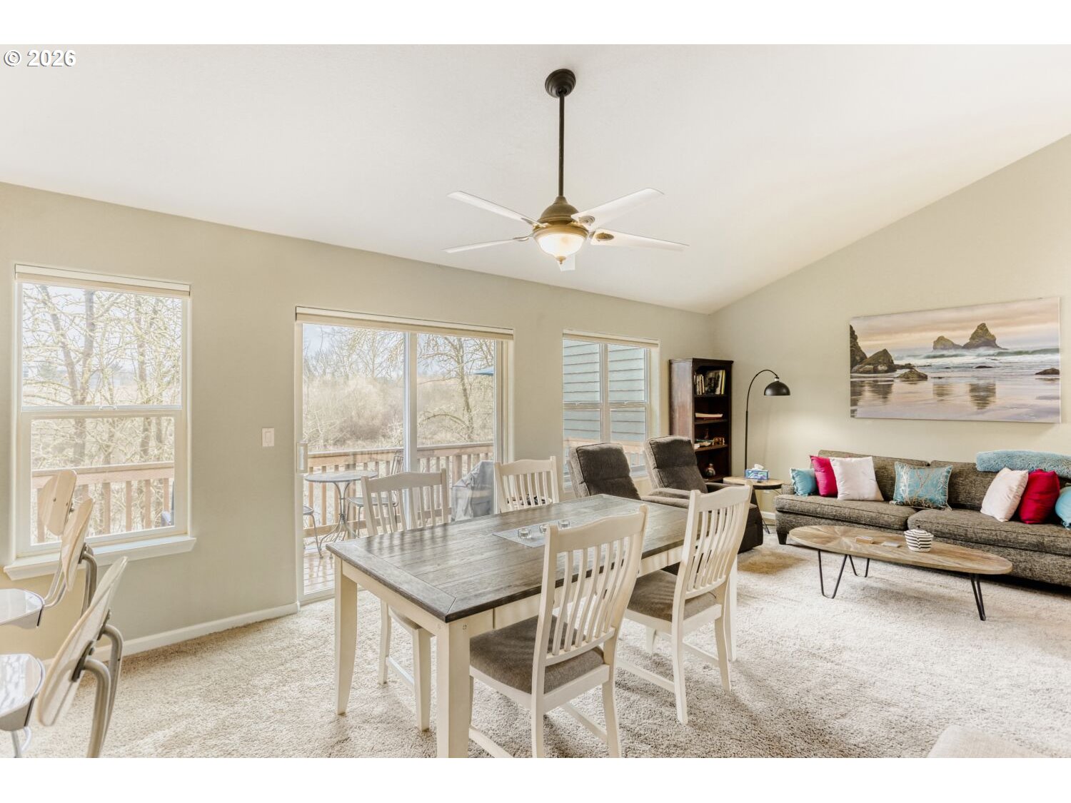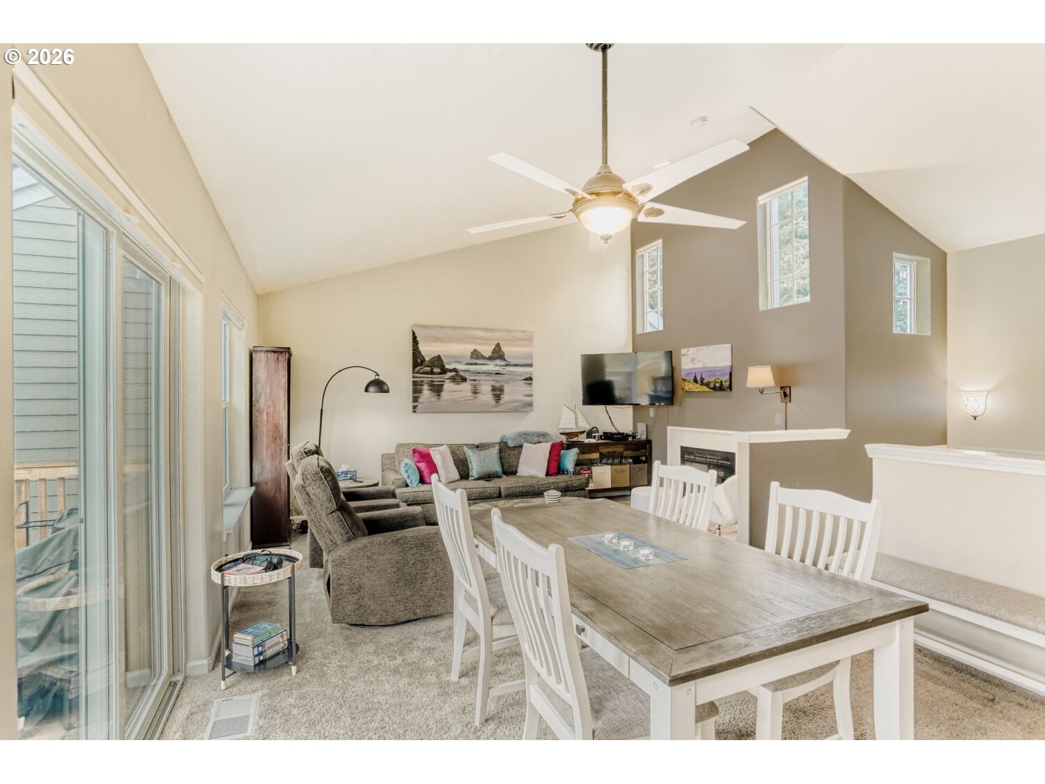 Private, light-filled townhome backing to serene wetlands near Summerlake Park. Soaring vaulted ceilings and a dramatic wall of north-facing windows flood the great room with natural light, creating an open and airy feel that seamlessly connects indoor living with the peaceful outdoor setting. The open-concept living and dining areas are anchored by a cozy fireplace and flow effortlessly to a sliding door leading to an expansive 30-foot patio and level yard—ideal for relaxing, entertaining, or simply enjoying tranquil water and tree views. The natural setting provides a rare sense of retreat while remaining close to everyday conveniences. Recent updates enhance both comfort and peace of mind, including an energy-efficient mini-split heat pump for heating and air conditioning, whole-home air scrubber system for improved air quality, and an induction cooktop. Exterior upgrades completed in 2021 include new windows, doors, roof, and decking. The crawlspace sump pump based system was redone in 2023 for enhanced moisture control. Quietly positioned yet conveniently located near parks, walking paths, shopping, and amenities, this move-in ready townhome offers the perfect blend of low-maintenance living, modern efficiency, and nature-inspired tranquility.
