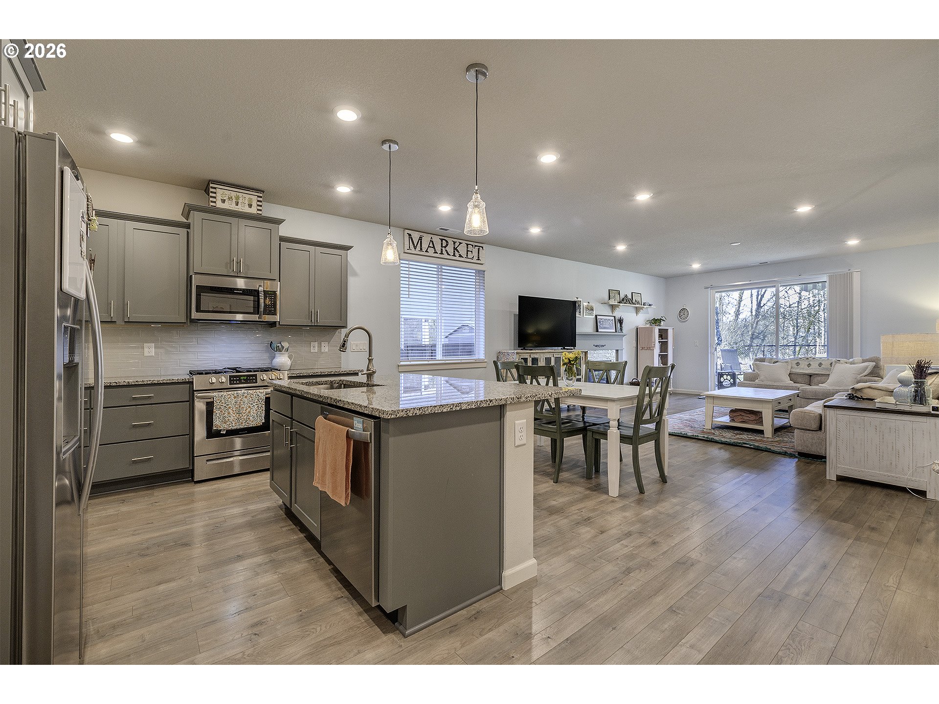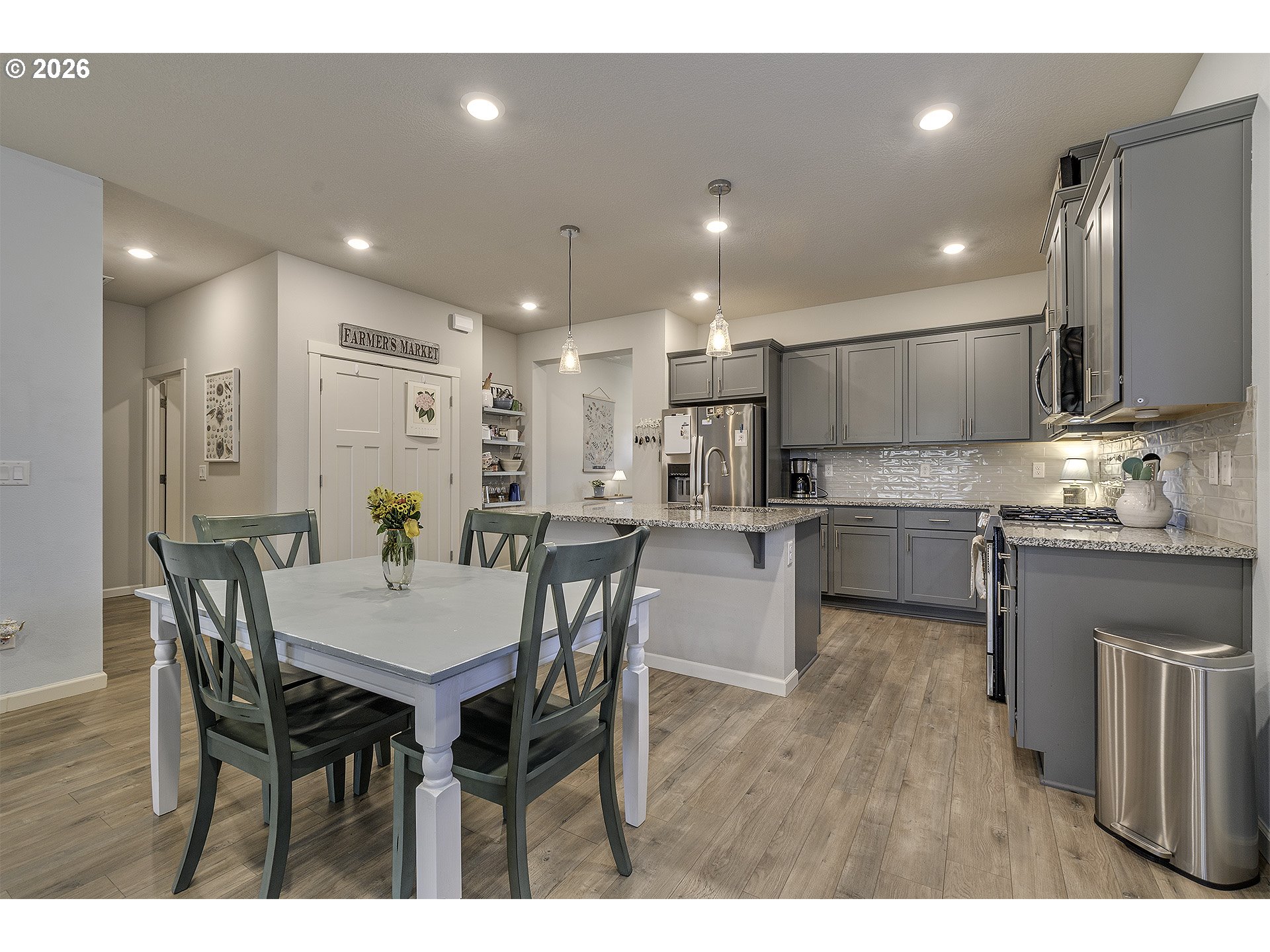 Dishwasher, FreeStandingGasRange, Granite, Island, Microwave, Pantry, StainlessSteelAppliance