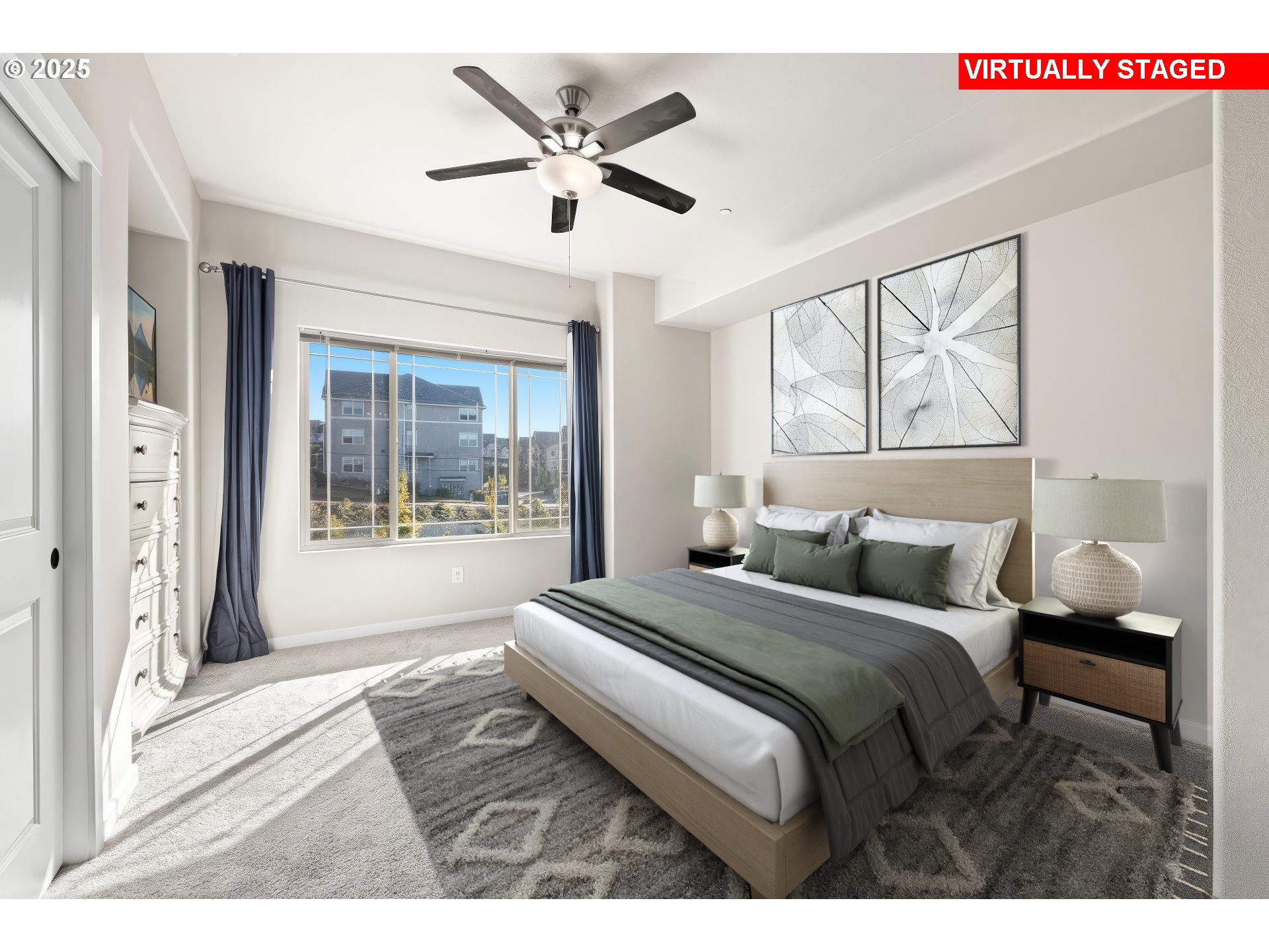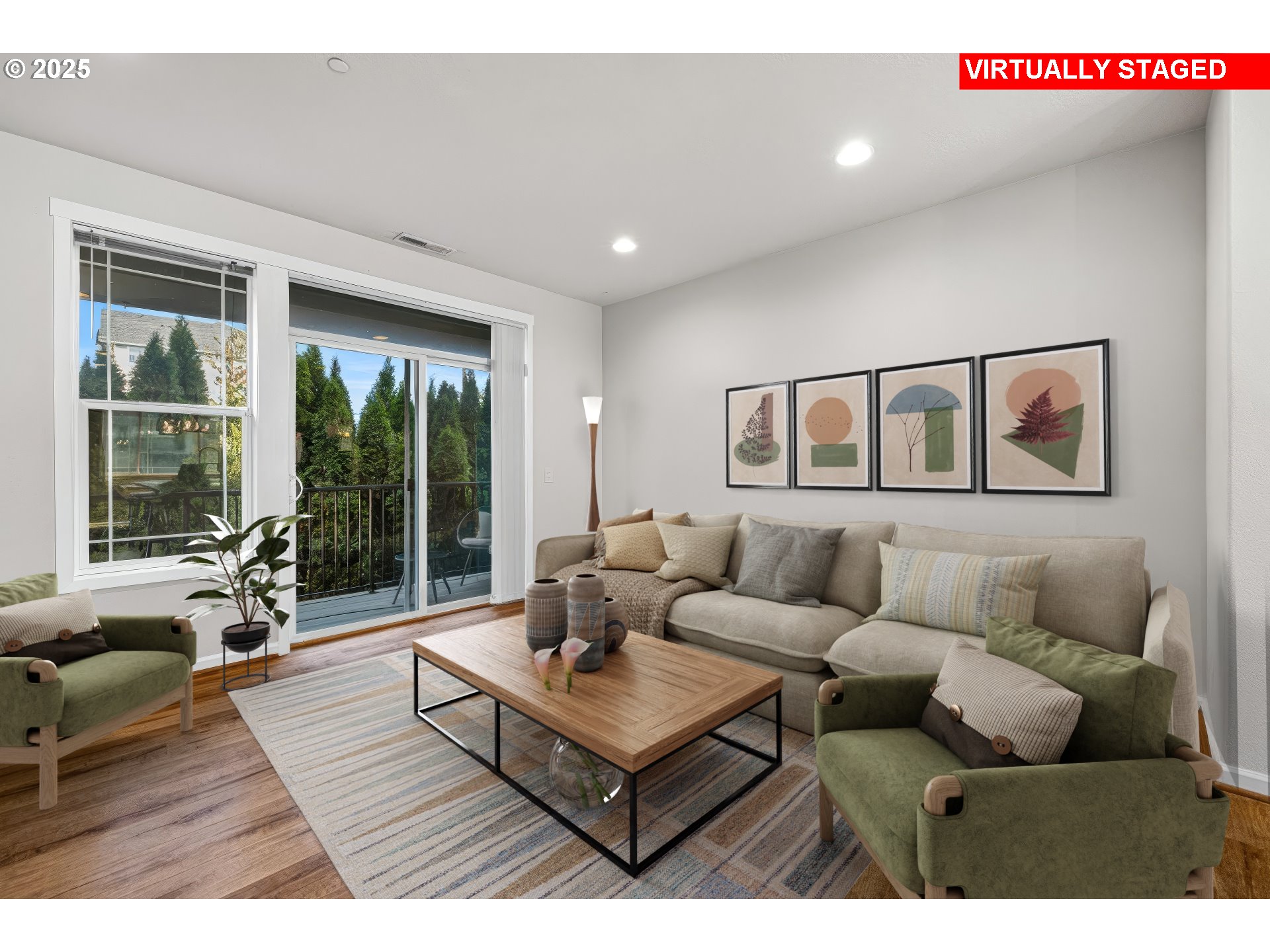 Bring your personal touches and style to this LIGHT and BRIGHT end-unit townhouse in River Terrace with open floor plan and beautiful features throughout! The 10-ft ceilings on the entire main level and in the primary suite add to the spacious feel of this home. This home boasts a large kitchen with quartz countertops, stainless steel gas appliances, and a huge island with eating bar and ample food prep area. The living room has a gas fireplace and sliding door to large, private covered outdoor deck. The dining room provides plenty of space for a large table with chairs and sideboard, hutch, etc. The flow between the kitchen and living areas is perfect for every day enjoyment or entertaining! There is also a half bath on the main level for convenience. Upstairs is the primary bedroom with en suite bath, laundry, second bedroom and full bathroom. Also upstairs is an additional flex space - great for office, library, playroom - use your imagination! The home has been freshly painted, and has A/C, LVP flooring, window coverings, and new carpet. Some of the community amenities are pool, gym, basketball court, playground, party room, and access to co-working space. Beautiful mature landscaping, and proximity to various schools and services round out the fabulous features of this property! Seller is offering 1-year paid HOAs and is also offering a 1-year standard home warranty! Don't let this one get away!
