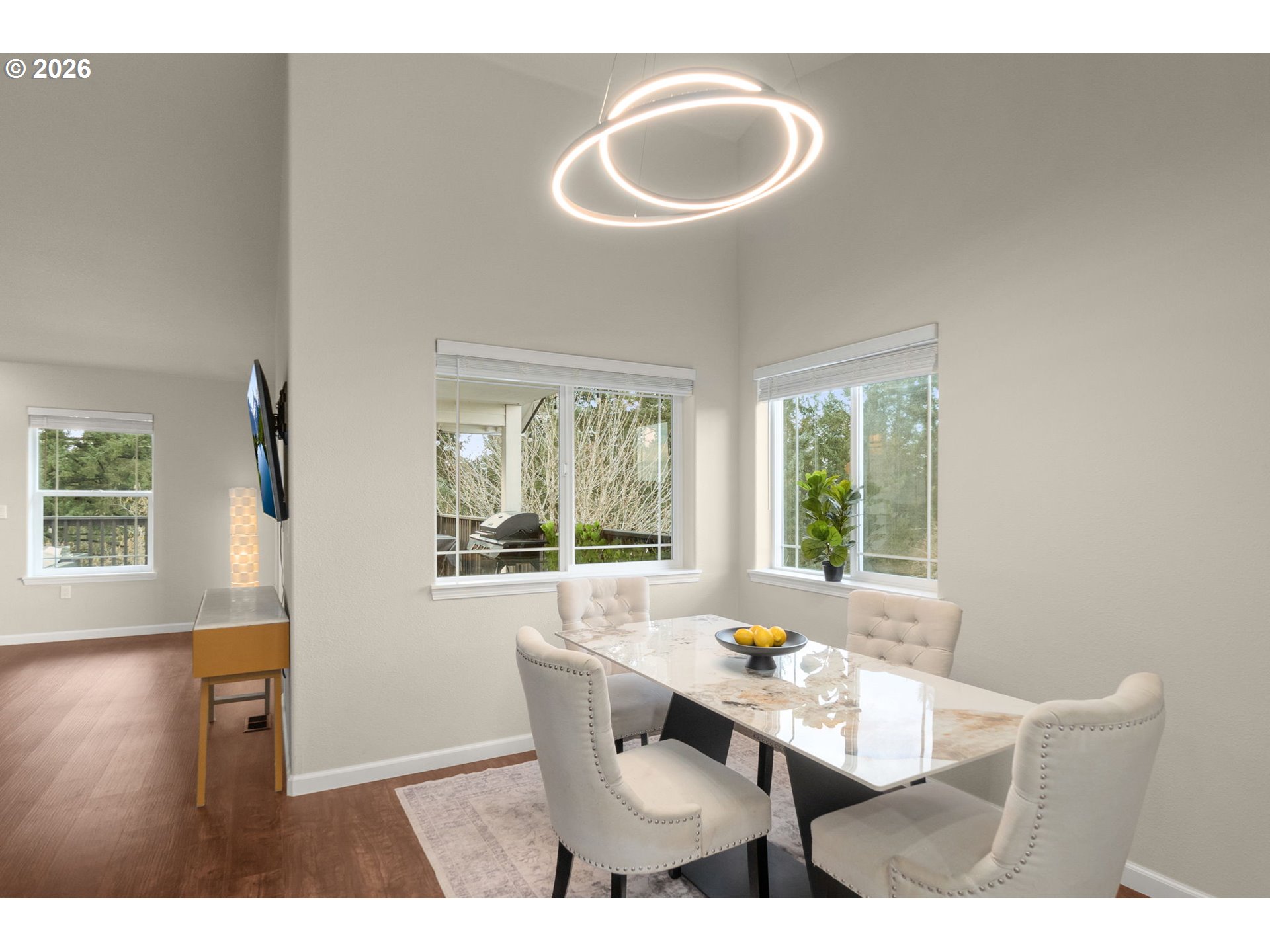 OPEN HOUSE SAT & SUN, 12-3pm. Nestled in the sought-after Bull Mountain area of Tigard, this stunning 5-bedroom, 3-bath home offers 3,222 square feet of light-filled living space with exceptional green space views. A dramatic soaring ceiling welcomes you into the light & bright great room, where expansive windows frame beautiful, forested surroundings and capture breathtaking sunset views. Designed for both comfort and versatility, the home features a beautifully updated modern kitchen and bathrooms with quartz countertops, recently updated flooring & carpet throughout, and a newer furnace and roof for added peace of mind. The kitchen also features a stylish new refrigerator and dishwasher. Multiple living areas include a huge family/bonus room ideal for a home gym, media room, or flexible living space, along with abundant storage throughout. Outdoor living shines with three decks overlooking tranquil green space, providing the perfect setting for entertaining, relaxing, and enjoying frequent wildlife sightings. The property also includes a spacious 3-car garage, new retaining walls along the back and side yard, reinforced stairs with lighting to a large backyard storage shed, and a massive unfinished basement storage area with convenient exterior access. Ideally located just minutes from shopping, dining, and entertainment at Progress Ridge TownSquare, including New Seasons Market and an AMC Movie Theater, and close to the scenic Ascension Trail trailhead and Bull Mountain Park, this exceptional home combines space, updates, and a peaceful natural setting with everyday convenience.