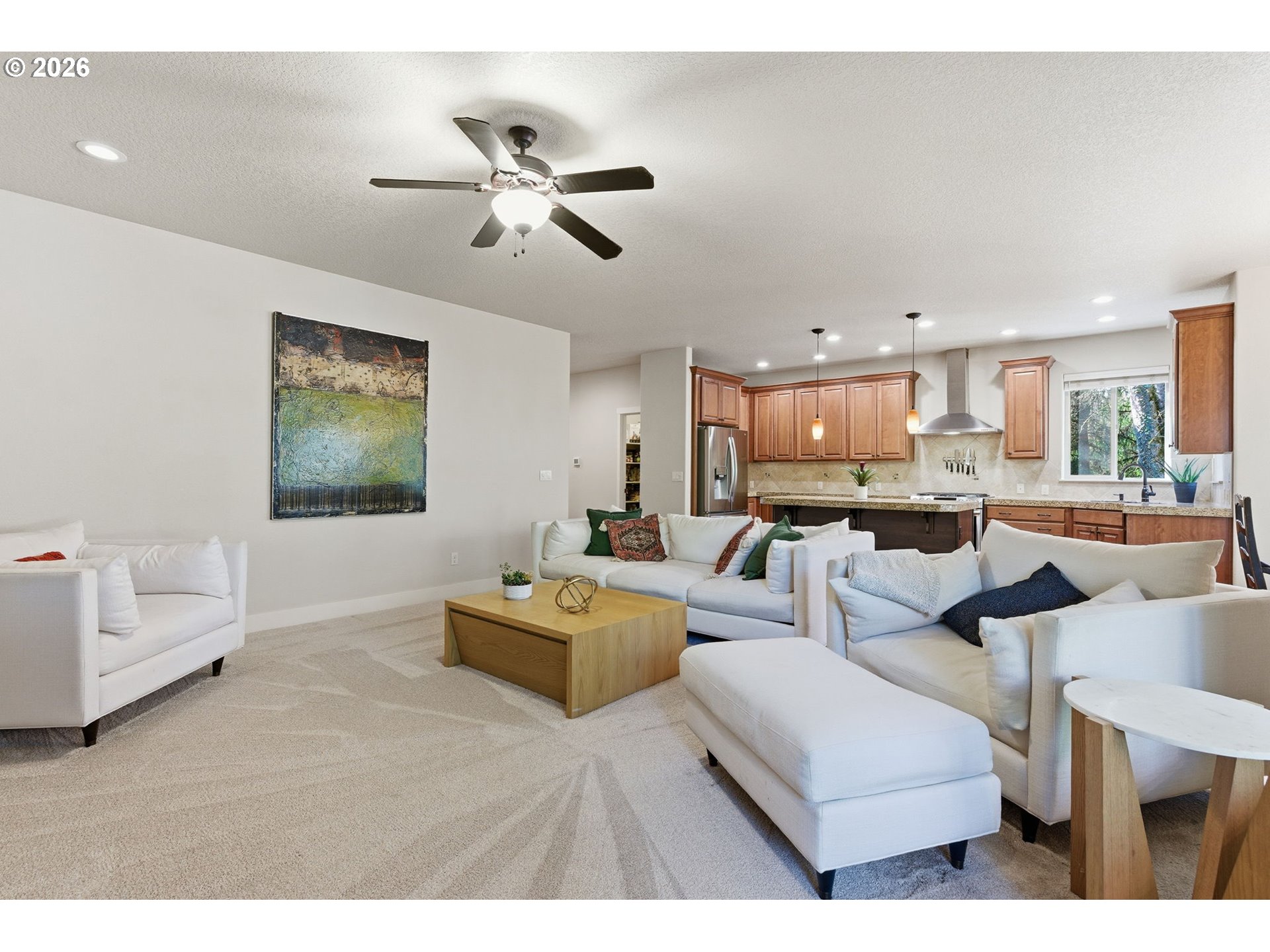 (503) 893-8874A rare blend of privacy, park views, and timeless quality awaits in this Timberland-built home at the end of a quiet cul-de-sac. Backing directly to King City Community Park with no neighbor on one side, this is a setting you don’t often find. Thoughtfully updated and impeccably maintained, it’s a home that truly lives well. The chef’s kitchen features generous storage, a walk-in pantry, stainless steel appliances, a new refrigerator, and a new gas range. A large center island opens seamlessly to the great room, making it ideal for effortless entertaining. The stone fireplace anchors the space, while a main-level office with built-ins and a full bathroom adds flexibility. Upstairs, you’ll find three bedrooms, two full bathrooms, a home theatre room with a new projector, and a convenient laundry room with a new washer and dryer. The spacious primary suite is a true retreat, offering an oversized bedroom, a spa-like bathroom with a jacuzzi tub, dual sinks, and a walk-in closet. Recent updates include new premium carpet throughout, central A/C, updated upstairs bathroom flooring, fresh interior and exterior paint, new window treatments, and an upgraded backyard. Step outside to a beautifully landscaped backyard oasis—perfect for relaxing or entertaining. Enjoy close proximity to the golf course, walking trails, shopping, dining, and top-rated schools. A rare opportunity that blends privacy, comfort, and an exceptional location in the heart of King City.