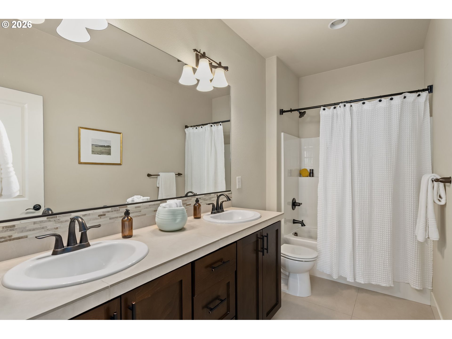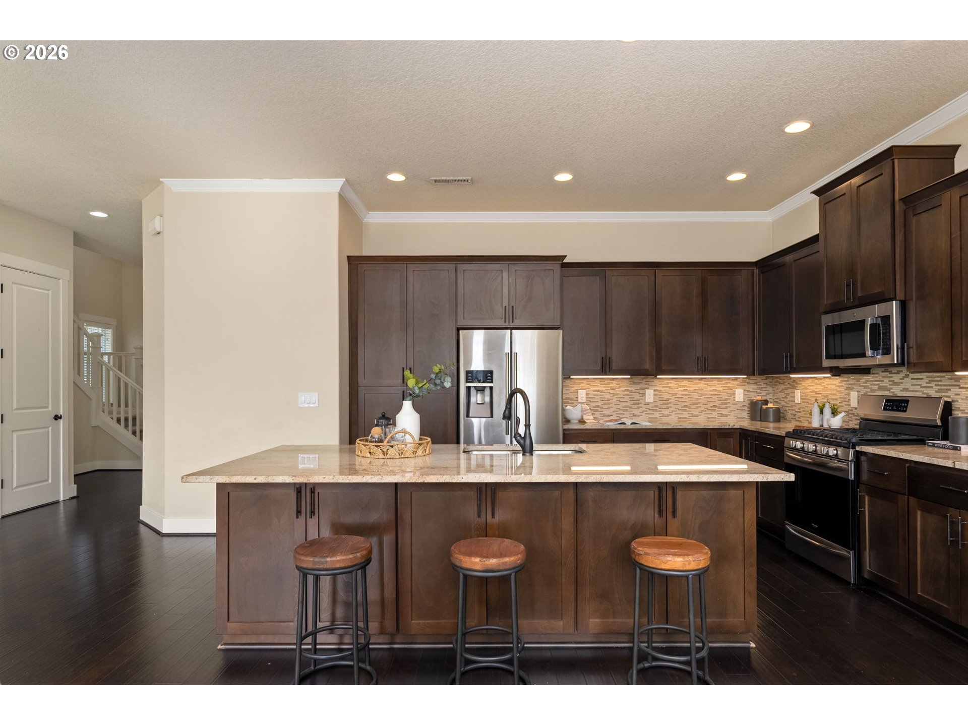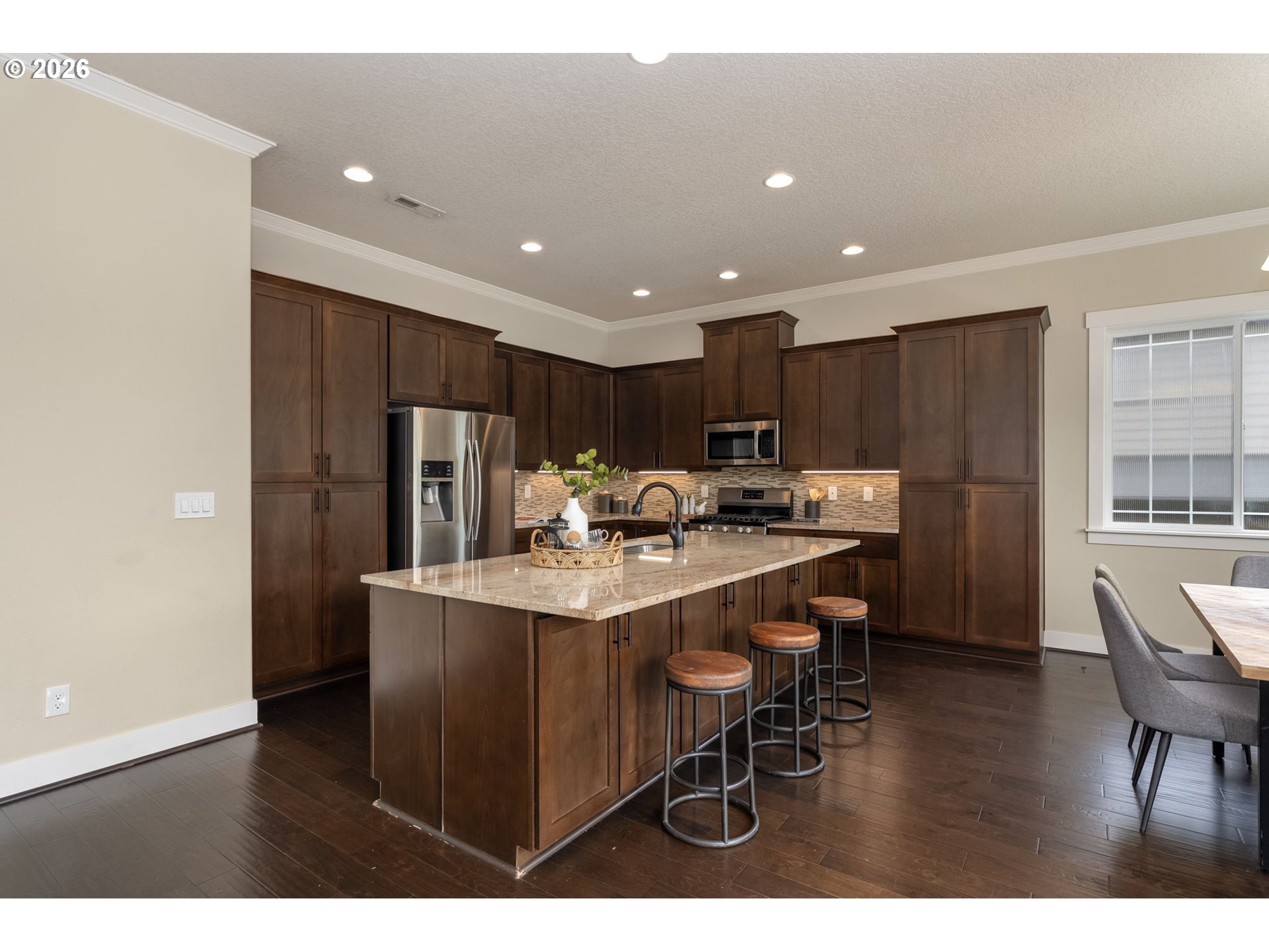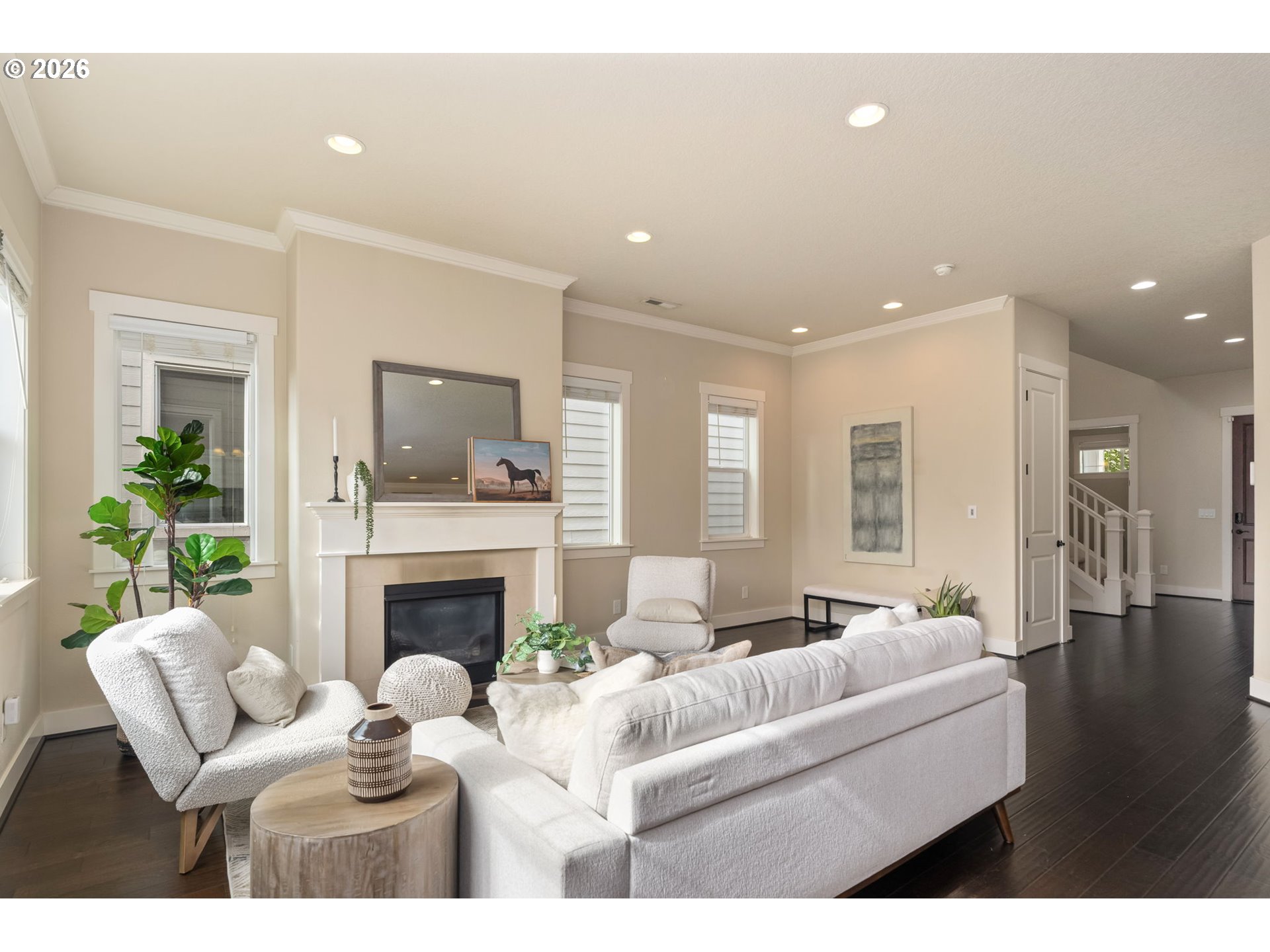 (503) 893-8874Located in Beaverton- River Terrace- Mountainside High School! This is the "Maple Plan" you've been waiting for! Spacious Elegant lines, with a Great Rm floor plan, High Ceilings, Gas Fireplace, huge Windows, Forced Air + AC and located in the highly coveted River Terrace Neighborhood. Don't miss the 3D tour! The Gourmet Kitchen has distinctive, solid wood cabinets, a large Center Island with beautiful, slab Granite Counters, Engineered Hardwood floors and SS appliances including a Gas stove and New Refrigerator (never been used!) Better than new with Smart Home Features and Window Blinds throughout, this 4BD, 2.5BA has flex space in the loft area at the top of the stairs...perfect for an office or play area. Enter the spacious Primary Suite through double French doors, voluminous ceilings with classic NW views and evergreen trees in the distance! Complementing the space are 2 Walk-in closets, generously sized Bathroom with Soaker Tub, Glass Shower & Dual Vanities. The other 3 Bedrooms are spacious with large closets, a shelf above the closet and large windows. The Guest Bathroom has Tile floors/backsplash and a Tub/Shower combination. Spend lazy summer evenings entertaining family and friends on the huge Deck w/stairs down to the back yard. The outdoor covered patio is ready for your creativity. There's plenty of room for lights, sitting area and fire pit. A Gardener's delight, the back yard has 2 planters just waiting for you to plant fruits and veggies for a summer harvest! Enjoy NW bounty for years to come with an Apple and 2 types of Cherry Trees! The grassy back yard is the perfect spot for your furry friends or to work on your putting game! This home comes with some amazing Amenities including the gorgeous Community Pool, Clubhouse, Weight Rm, Basketball Court, Kids Play area, Park & Walking Paths. Minutes to Progress Ridge with Shopping, Theater and Restaurants. Don't miss out on the opportunity to live in this sought after neighborhood!