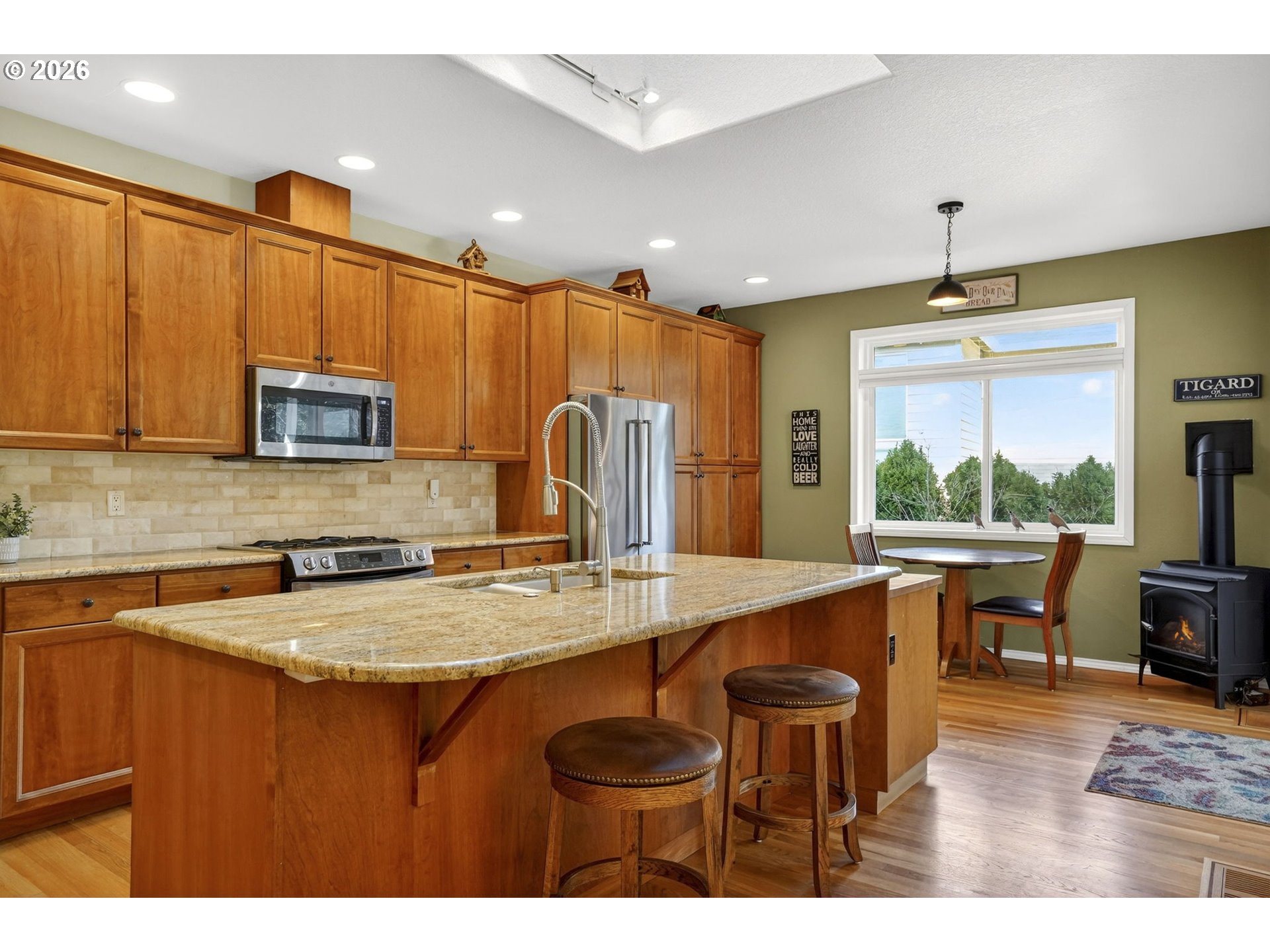 (503) 893-8874Nestled in the sought-after Bull Mountain neighborhood, this beautifully maintained single-level home offers the perfect blend of comfort, functionality, and serene natural surroundings. Backing to a lush green space with a walking trail, the home provides privacy and picturesque views that can be enjoyed from many of the main living areas and the backyard—creating a peaceful retreat you’ll appreciate every day. From the moment you arrive, the pride of ownership is evident. A new roof adds peace of mind, while the three-car garage offers ample space for vehicles, storage, hobbies, or a workshop. Inside, the home opens to high ceilings throughout, complemented by elevated windows that flood the space with natural light and enhance the open, airy feel. The heart of the home is designed for both everyday living and entertaining. The kitchen flows seamlessly into the living and dining areas, making it easy to host gatherings or enjoy quiet evenings at home. Thoughtful touches like a central vacuum system add convenience, while the home’s layout ensures everything you need is easily accessible on one level. The owner’s suite is truly exceptional, offering a private, spacious retreat. Featuring three closets, including two walk-ins, there is no shortage of storage or organization. The spa-inspired owner’s bathroom elevates daily routines with an oversized garden tub, a walk-in shower, a double-sink vanity, and a large mirror-perfect for getting ready with ease and comfort. Step outside to enjoy the partially covered deck, ideal for year-round entertaining, relaxing, or dining al fresco. A gas line to the deck makes outdoor barbecuing effortless, while the tranquil green space backdrop enhances the sense of privacy and connection to nature. Whether you’re enjoying morning coffee or hosting friends in the evening, the outdoor setting is both functional and inviting. Single-level living, premium features, prime location, you'll enjoy comfort & privacy all-in-one.