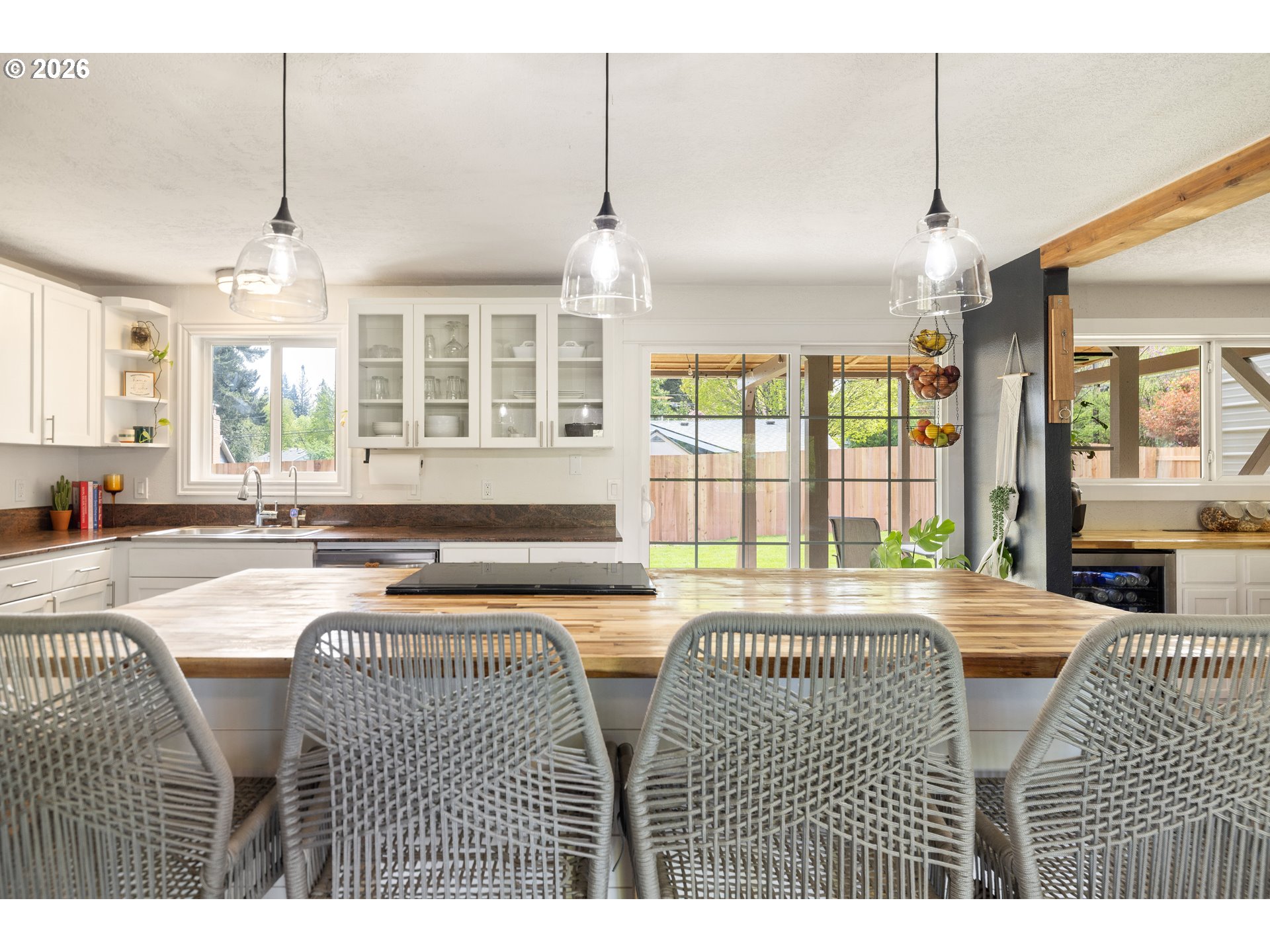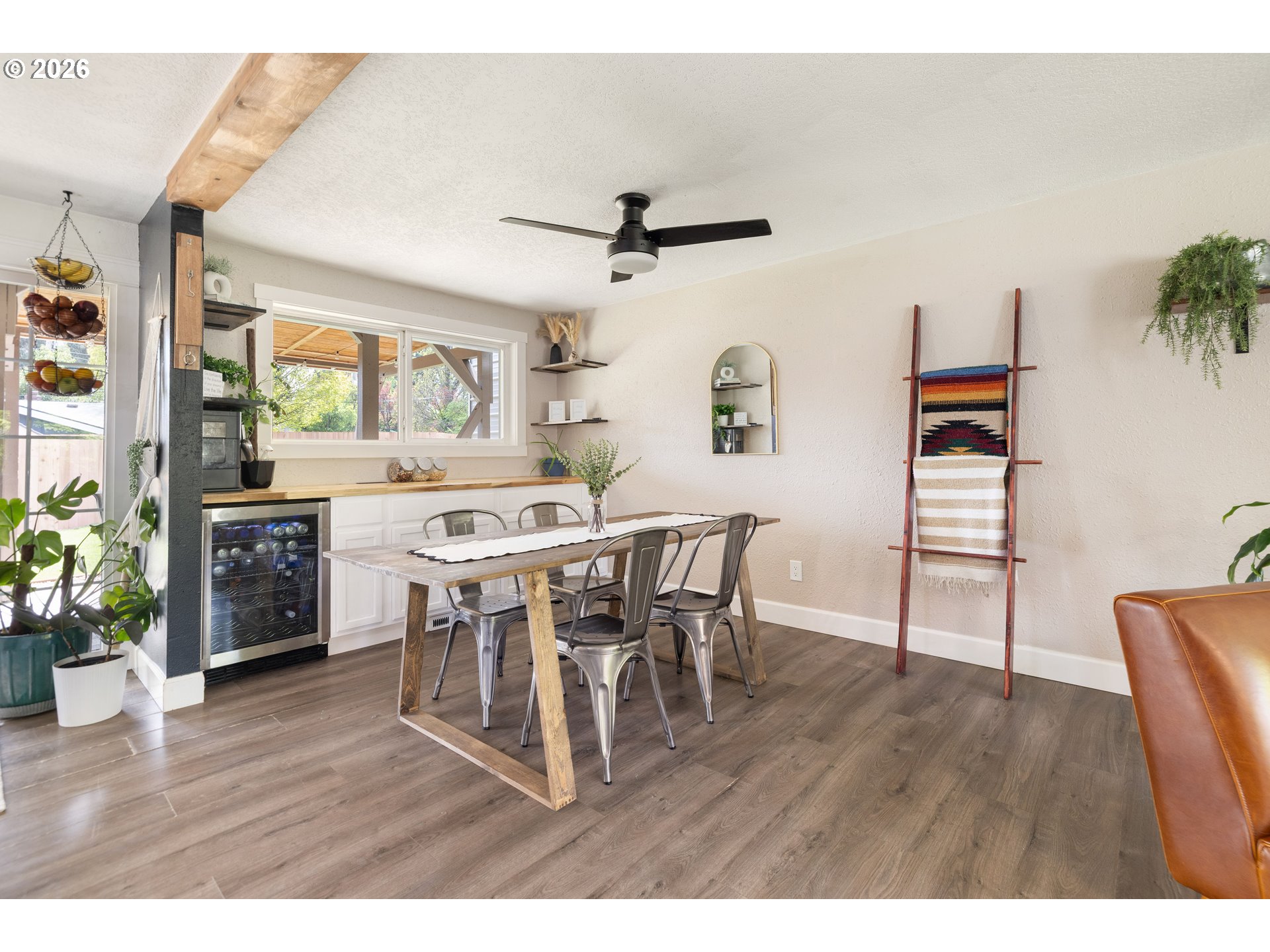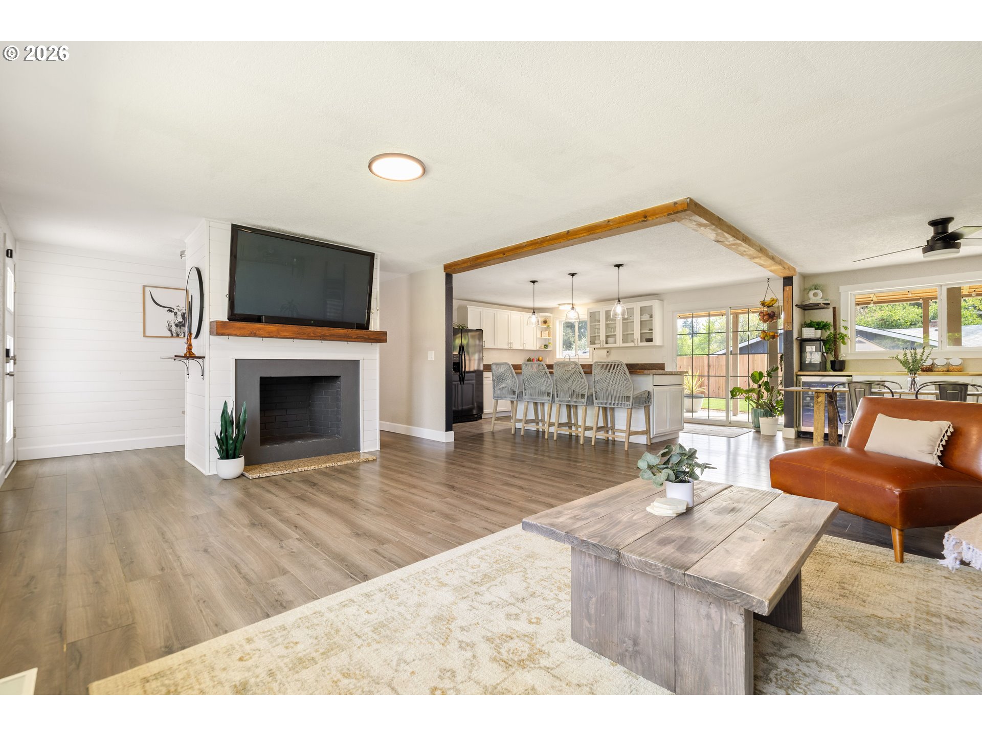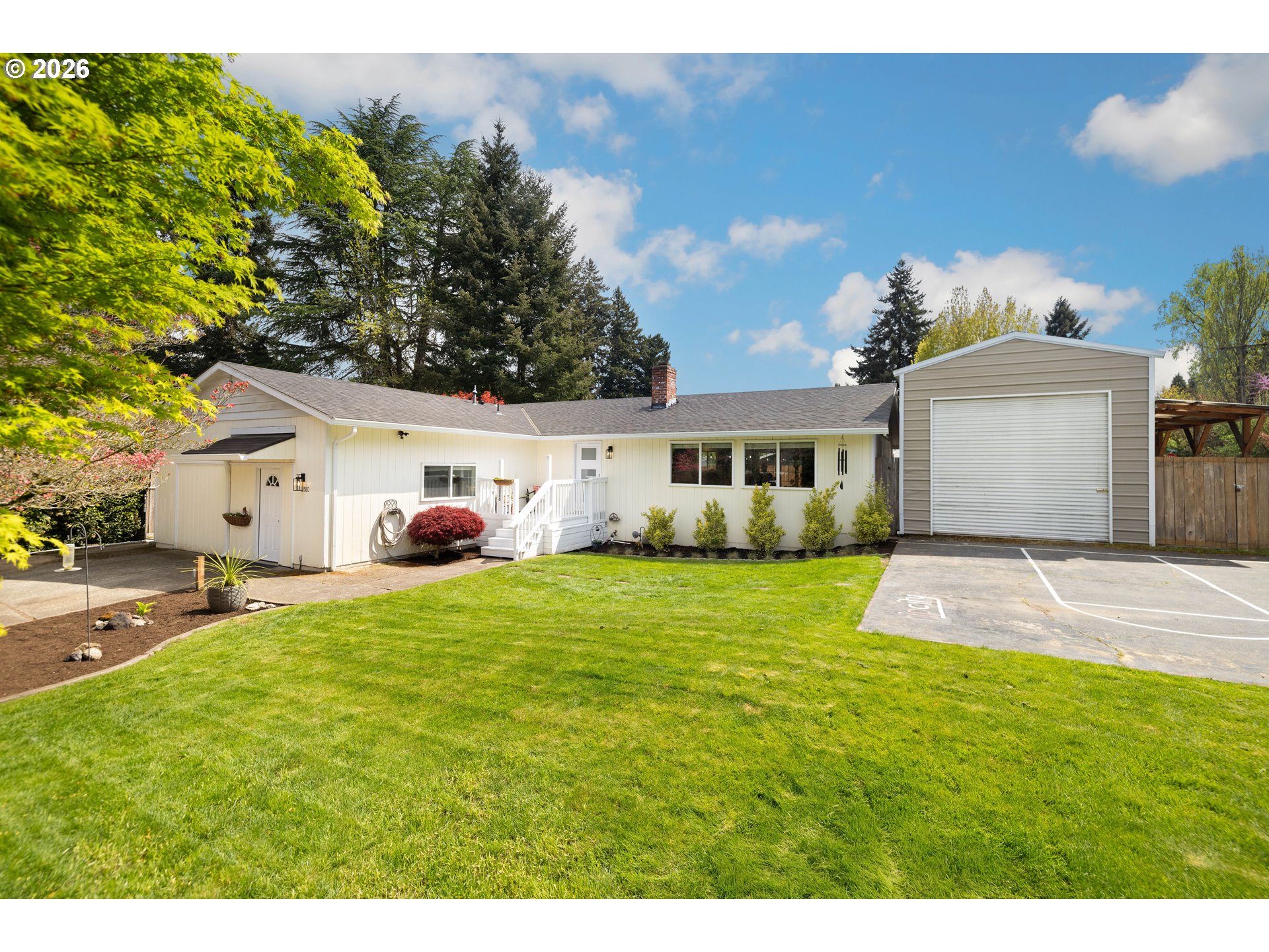 Truly charming, this one level home is ready to welcome its next owner. The spacious open concept layout features a large butcher block island, an additional bar/coffee counter, a beverage refrigerator, and a wood burning fireplace that brings warmth and character to the main living space. The home offers four bedrooms and two updated bathrooms. The primary bedroom includes an attached bath that has been remodeled in a chic modern farmhouse style. Throughout the home, you will find a thoughtful mix of modern updates and wholesome charm. The garage has been converted into a second living area with potential for an ADU style setup. This space includes a breakfast nook, great storage, an office or storage closet, living room and a bedroom. There is also abundant extra storage above the bedroom off the additional living room. Outside, the property continues to impress with a giant pole barn style garage with space for two cars, tandem parking, and loads of storage. The large, flat fenced backyard includes raised garden beds and excellent sun exposure. The side yard features a concrete pad, an additional shed, and a tucked away area for garbage cans. Parking is plentiful, with two spaces in the main driveway, an additional side driveway in front of the pole barn, and possible boat parking along the side of the driveway.
