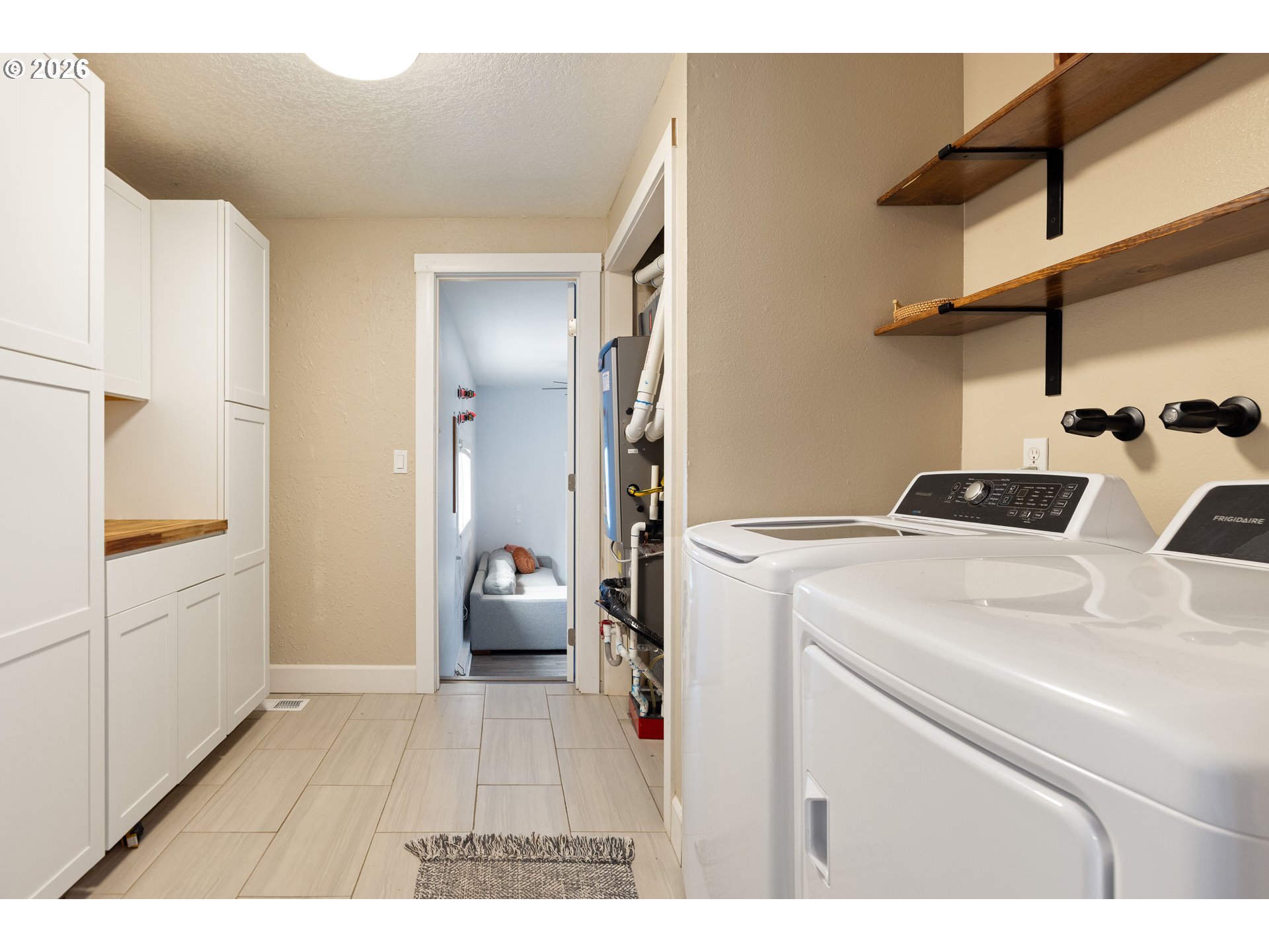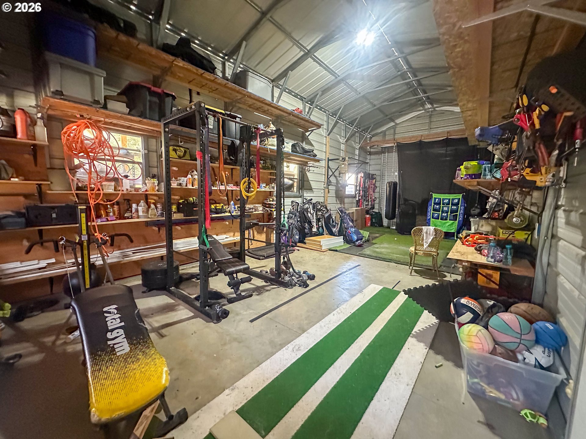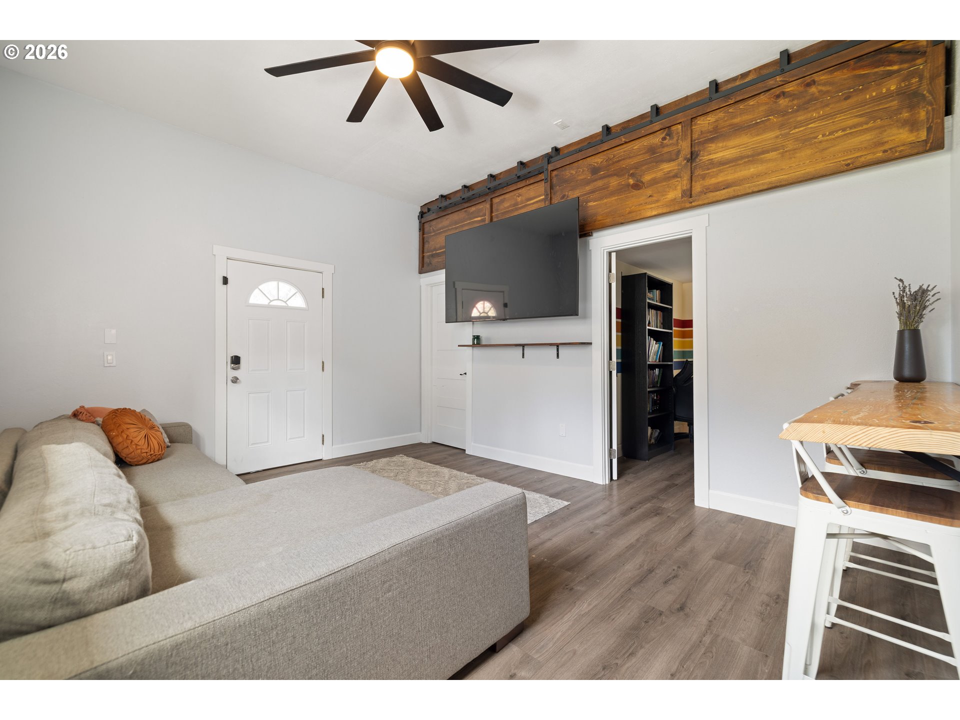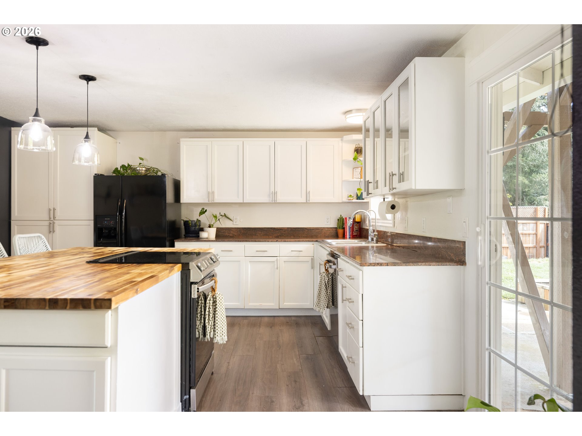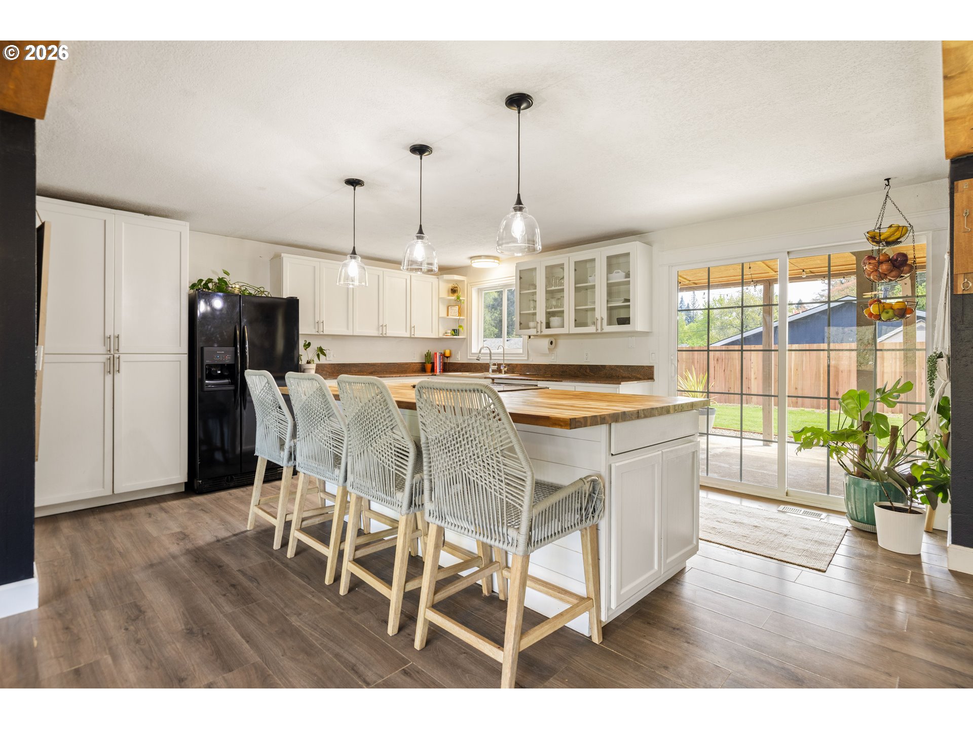 Truly charming, this one level home is ready to welcome its next owner. The spacious open concept layout features a large butcher block island, an additional bar/coffee counter, a beverage refrigerator, and a wood burning fireplace that brings warmth and character to the main living space. The home offers four bedrooms and two updated bathrooms. The primary bedroom includes an attached bath that has been remodeled in a chic modern farmhouse style. Throughout the home, you will find a thoughtful mix of modern updates and wholesome charm. The garage has been converted into a second living area with potential for an ADU style setup. This space includes a breakfast nook, great storage, an office or storage closet, living room and a bedroom. There is also abundant extra storage above the bedroom off the additional living room. Outside, the property continues to impress with a giant pole barn style garage with space for two cars, tandem parking, and loads of storage. The large, flat fenced backyard includes raised garden beds and excellent sun exposure. The side yard features a concrete pad, an additional shed, and a tucked away area for garbage cans. Parking is plentiful, with two spaces in the main driveway, an additional side driveway in front of the pole barn, and possible boat parking along the side of the driveway.