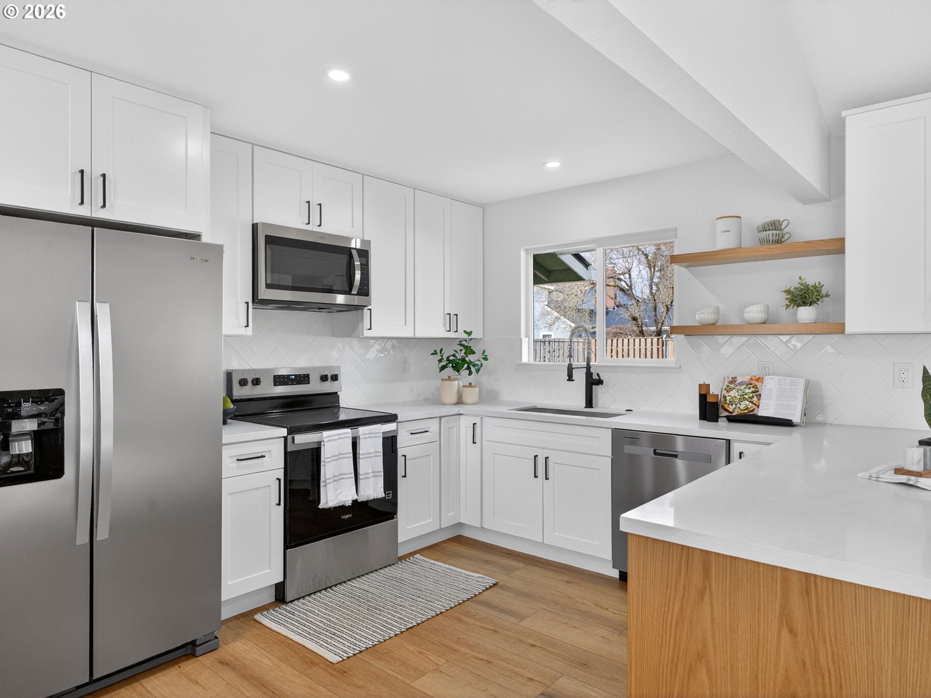 OPEN HOUSE SAT, 2/21 FROM 1-3PM AND SUN, 2/22 FROM 12-2PM. Turn-Key Beauty in the Heart of Beaverton! Impeccable, fully updated home tucked into a quiet neighborhood in Cedar Hills. Thoughtfully refreshed from top to bottom, this property blends modern finishes with everyday comfort. The light-filled interior showcases fresh finishes throughout, a functional layout and stylish touches that feel both current and timeless. Formal living room with wood-burning fireplace and beamed ceilings. The updated kitchen is the heart of the home, offering quartz countertops, tile backsplash, modern cabinetry and new SS appliances including dishwasher, range, microwave & fridge, complemented by a breakfast bar and a dining area with a slider. The private suite features a closet and an ensuite bath with walk-in-shower. Updated bathrooms offer a spa-like feel with clean lines and quality fixtures, while refreshed flooring and paint create a cohesive, move-in-ready experience. Highlights: 3 beds/2 baths, new interior & exterior paint, new flooring throughout and new roof. The landscaped, fenced backyard has a covered patio, patio and room for garden, perfect for entertainment. Attached 1-car garage with storage space and washer/dryer hookups. Prime location, very bikeable. Easy access to parks, shopping, dining, downtown Cedar Hills & commuter routes, making daily life effortless. This rare gem blends style, comfort and location—an ideal place to call home.
