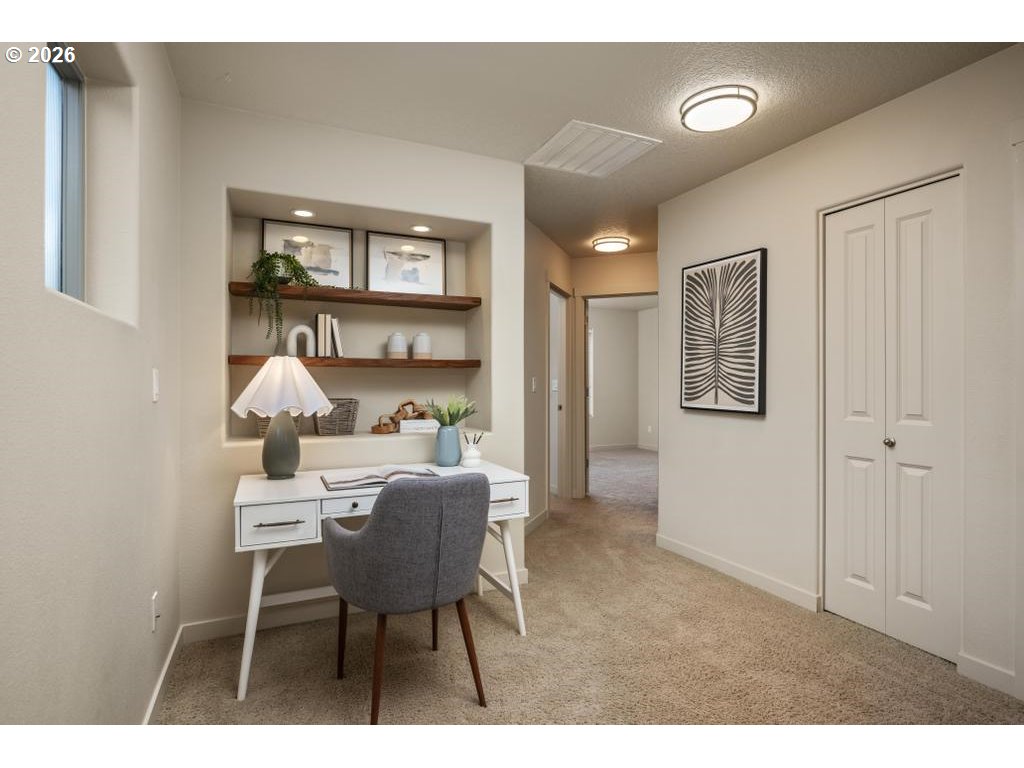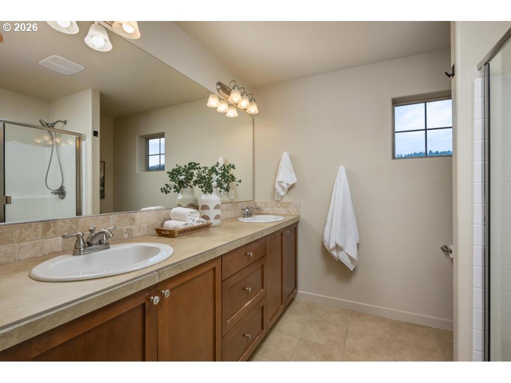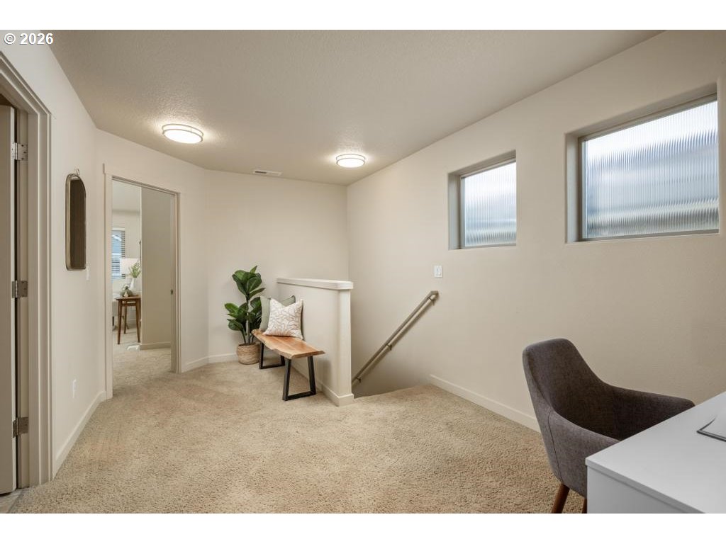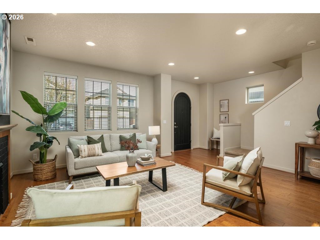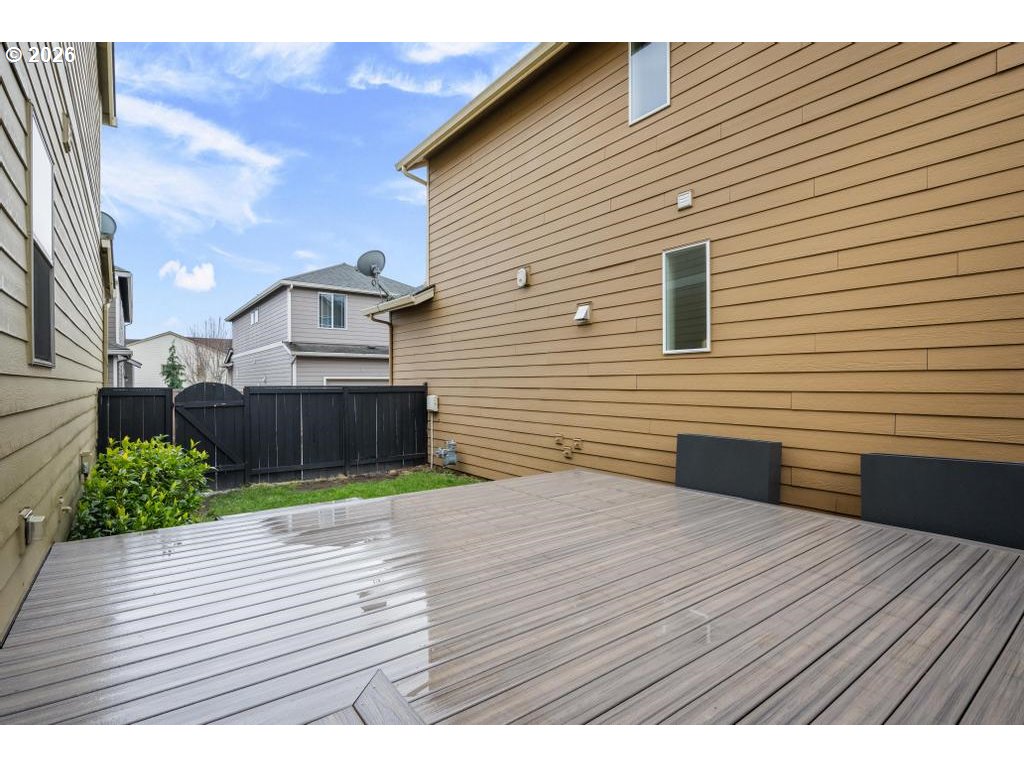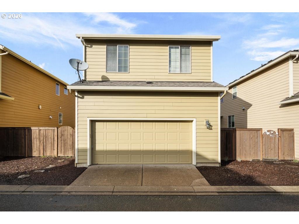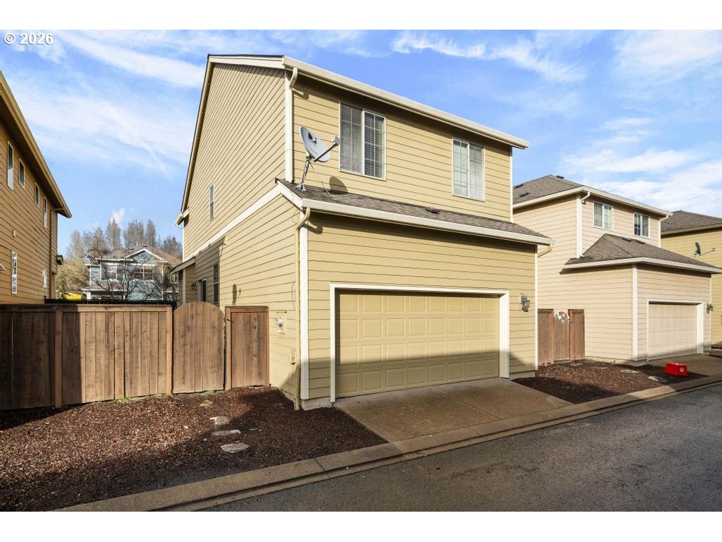 Charming two-level home in the Edgewater on the Tualatin community, steps away from Deer Creek Elementary and conveniently located near parks, walking paths, shopping, and dining. Classic brick accents and Tudor-style trim create adorable curb appeal. Inside, an open layout provides seamless flow between the kitchen, dining area, and living room. Upstairs offers a versatile flex space, dedicated laundry room, and three bedrooms, including a spacious primary suite with ensuite bath and walk-in closet. The fully fenced side yard with a large deck is perfect for summer dining or entertaining. A two car garage with high ceilings and built-in storage racks adds flexibility and convenience. Low quarterly HOA dues covering front yard maintenance, commons upkeep, and professional management make for easy, low-maintenance living. Move-in ready and waiting for its next chapter.