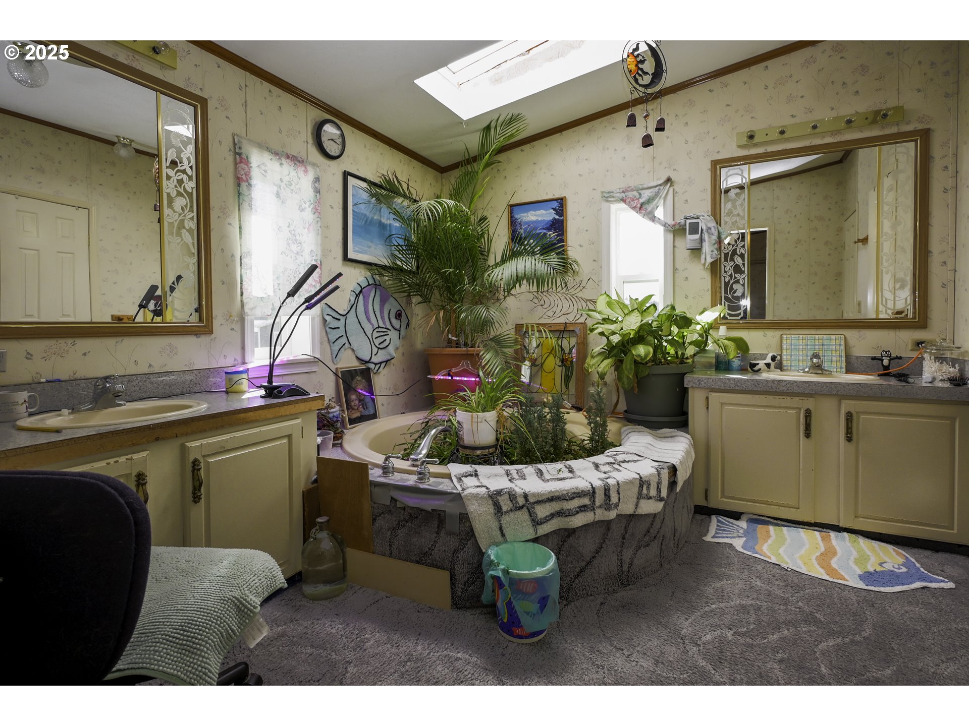 3 bed 2 bath home, 1620 SQ ft. Features open kitchen adjoining the sunroom/family room, dining area, large living room with vaulted ceilings and wood burning stove. The Primary bedroom has a jetted tub, step in shower. 2 more bedrooms and a utility room with washer & dyer. Attached covered carport currently being used for storage and 1 car space, but could easily be turned back into a 2 car carport. Fully fenced front and back yards with a small deck. Roof replaced in 2018, furnace is about 5 years old and a newer hot water heater.This home is just in need of some cosmetic updating, it is a solid home just waiting for you to make it your own.Park Space Rent is $1276 per month- Covers Management, water and sewer.