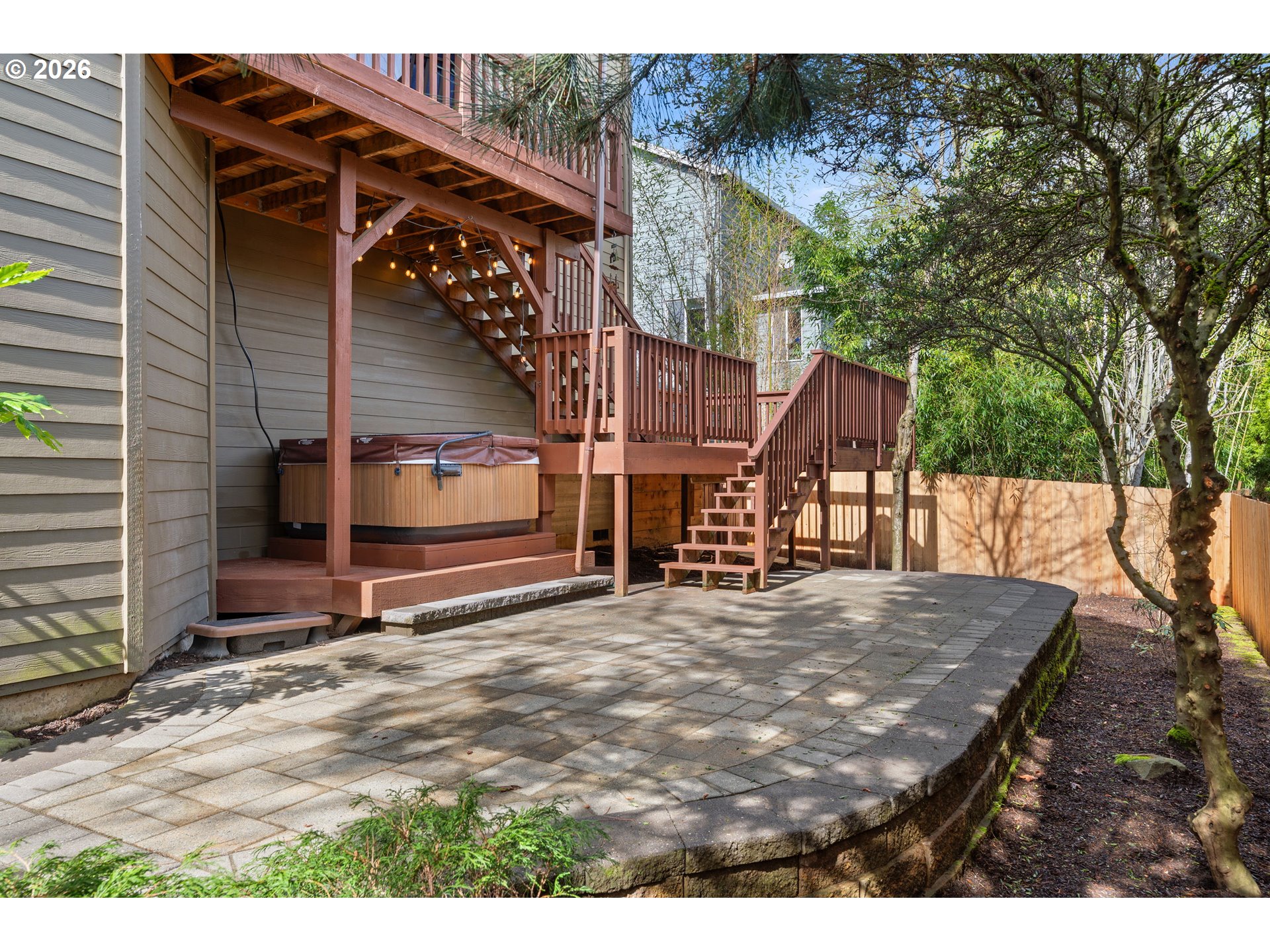 Beautiful traditional home in a desirable Tigard neighborhood offering spacious living and a flowing open floor plan. This well maintained home features soaring ceilings, abundant natural light, and a layout crafted to support effortless daily routines and memorable entertaining. Main level includes a formal dining room, a spacious family room with cozy gas fireplace that opens seamlessly to the kitchen, creating a warm and connected gathering space. The kitchen features quartz countertops, subway tile backsplash, stainless steel appliances, a gas range, pantry, kitchen eating bar, and sunny eating area with access to the backyard deck and yard. A main floor bedroom and full bathroom provide flexible living options for guests or multi-generational living. Upstairs, the spacious primary suite offers an en-suite bathroom and walk-in closet. Three additional bedrooms along with a convenient upstairs laundry room and a supersized bonus room. Step outside to a private backyard retreat with a deck, and hot tub—perfect for relaxing or entertaining. The oversized 3-car garage provides abundant storage and space for hobbies or workout equipment. Recent updates include a new roof, some interior paint and interior lighting. Conveniently located near parks, schools, shopping, dining, and transportation.Tons of storage under house.