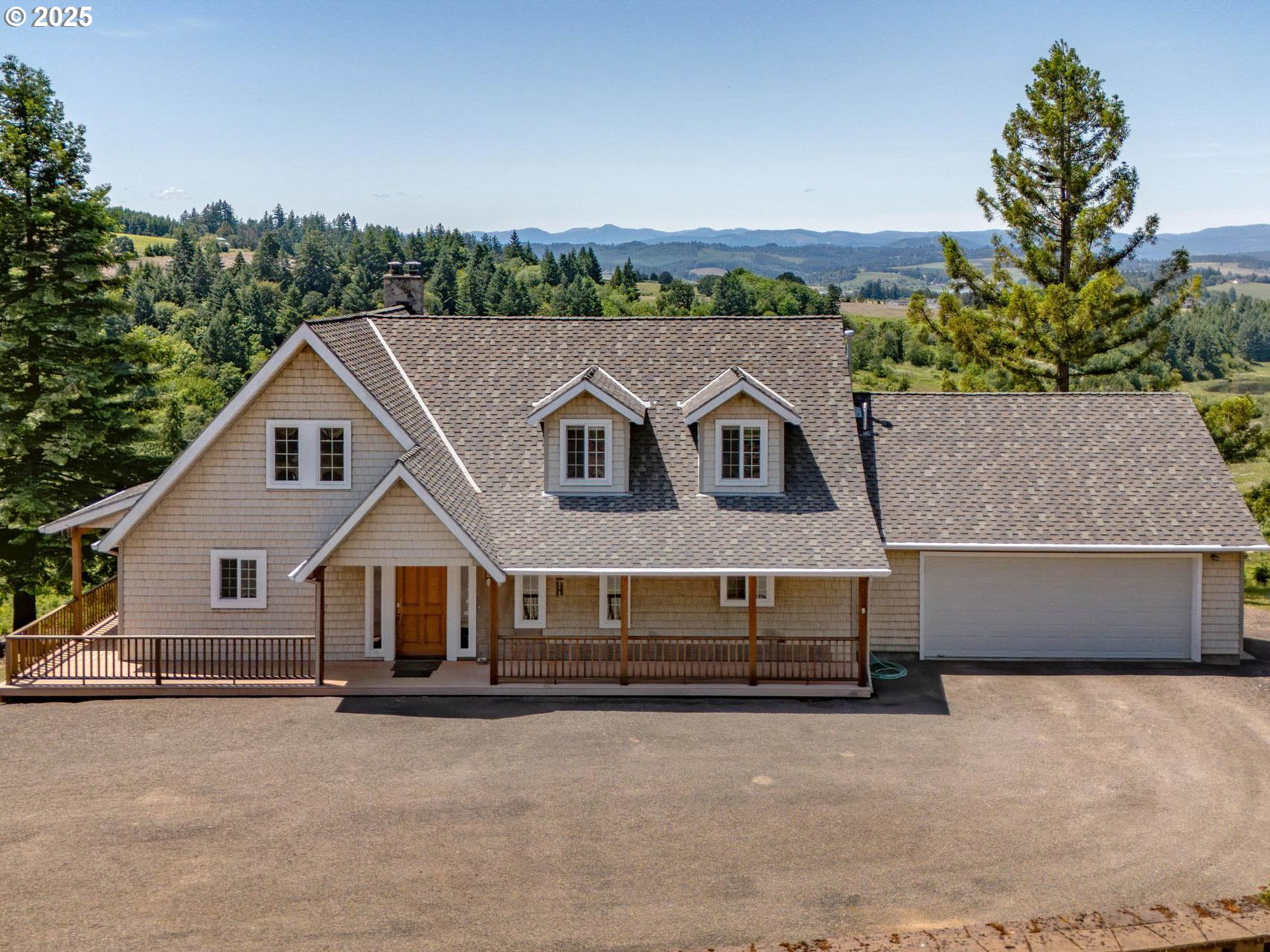 (503) 893-8874Enjoy expansive, ever-changing views from this private retreat in the heart of Oregon’s wine country. Set on nearly 20 west-facing acres, the custom-built home captures sweeping vistas of rolling farmland, vineyards, and the Coast Range, with stunning afternoon light and unforgettable sunsets. Designed and built by the current owner, the home offers a luxury lodge feel with abundant natural light, warm wood ceilings, a striking log staircase, and an open layout ideal for gathering. The main-level primary suite features a generous bath and walk-in closet, complemented by a spacious laundry and mudroom. The lower level provides a large, flexible bonus area with plumbing in place for a future full bathroom. A long, gated driveway enhances privacy and seclusion. The land includes young Christmas trees maintained by a local farmer, open space for gardens or a hobby farm, a helicopter pad, and a 1,990 sq ft shop with concrete floors, power, water, bathroom, and finished space ideal for a studio or office. Surrounded by vineyards and tasting rooms and just 20 minutes from nearby towns, this rare property offers exceptional privacy, breathtaking views, and everyday convenience.