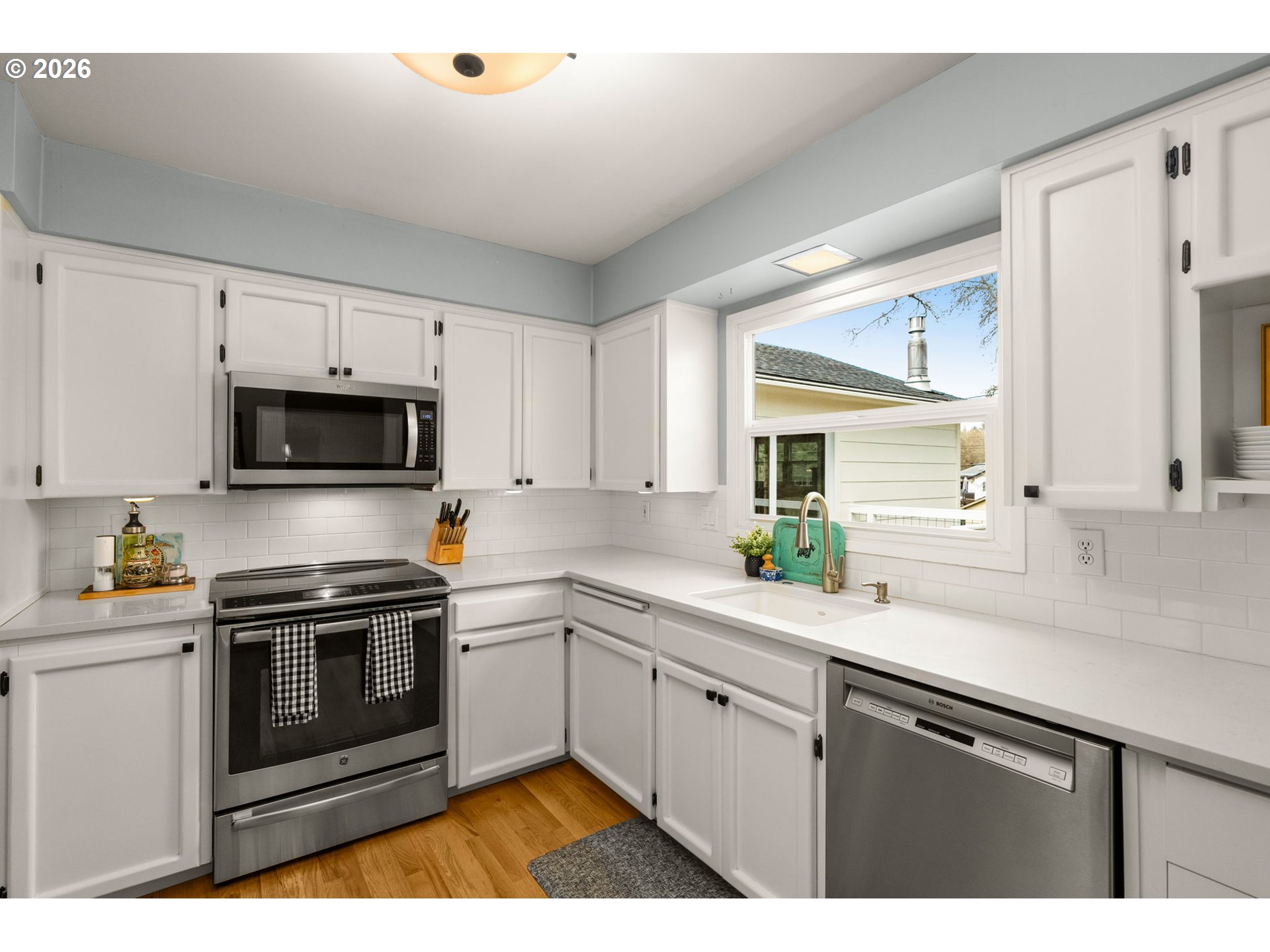 This beautifully updated 5-bedroom, 3-bath home offers 2,960 square feet of thoughtfully designed living space in the desirable Terra Linda neighborhood. Perfectly positioned in unincorporated Washington County, this property combines the benefits of Portland proximity with typically lower tax rates—a rare find for savvy buyers. This versatile floor plan adapts seamlessly to work-from-home, creative and side-hustle pursuits. The lower-level den and bedrooms provide ideal private office, studio, gym, storage or staging spaces. The expansive primary suite offers a luxurious retreat with deck access and gleaming hardwood floors. A fully fenced back yard creates an outdoor oasis perfect for families, pets, and entertaining. Multiple outdoor spaces include a generous covered deck and a ground-level patio, ideal for our northwest indoor-outdoor lifestyle. Fresh upgrades to the kitchen and primary suite, cozy gas fireplaces, beautiful hardwood and tile flooring add warmth and character throughout. The two-car attached garage and full basement provide ample storage. Enjoy walkability to parks and Terra Linda Elementary, with easy access to Sunset High School. The neighborhood's prime location offers quick connections to downtown Portland, Intel campuses, Nike, and Silicon Forest employers via Highway 26. This established community is known for its tree-lined streets, strong schools, and family-friendly atmosphere, where quality homes in this sought-after area continue to attract discerning buyers.