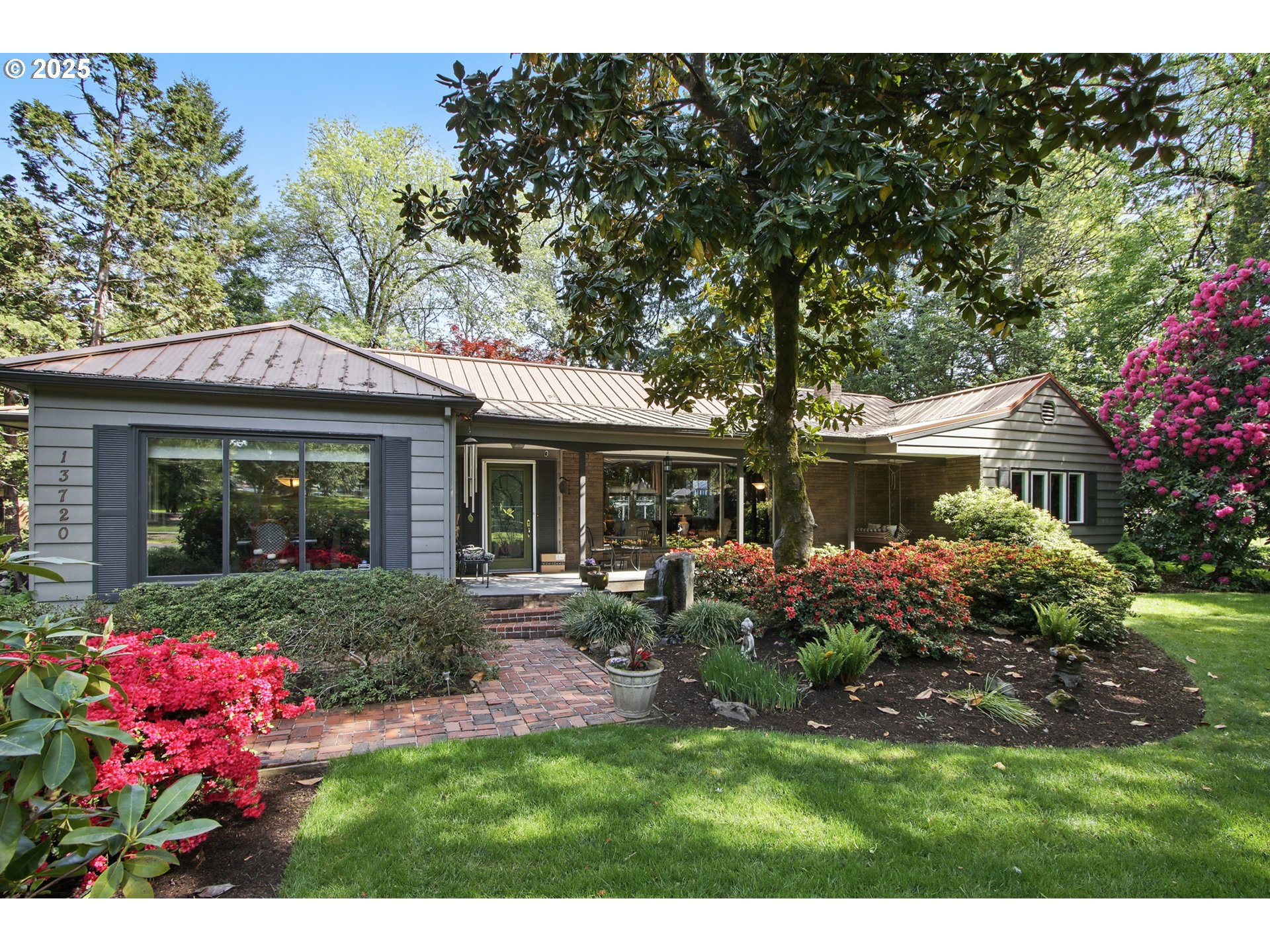 (503) 893-8874NEW PRICE well below recent appraisal! FRESH INTERIOR PAINT! An entertainers delight. One of a kind single level! Built in 1944 by Jerome Margulis, this gorgeous 4Bed/2Ba plus Den, estate home on .79 acre lot is zoned R-5 so potential here is outrageous. Dual gas fireplaces and built-ins with vintage glass to display all your heirlooms. This beautiful home has been upgraded and enjoys forest, creek, and park views throughout. Setback from Murray, the privacy is unmatched, as living is easterly. Original refinished narrow slat cherry hardwoods, updated kitchen and modern primary bathroom. On nearly an acre with an ample deck with remote awning, NEWER hot tub and in-ground pool resurfaced in 2020 and new pump last year. Please come visit - the grounds are stunning. Plenty of off street parking. Detached garage with storage room and built in cabinets. Fire station on the private drive obeys strict noise laws and engines/lights are not allowed to siren until well onto Murray. Top rated schools, close to Nike, Intel and major freeways, a true quiet and peaceful urban oasis!