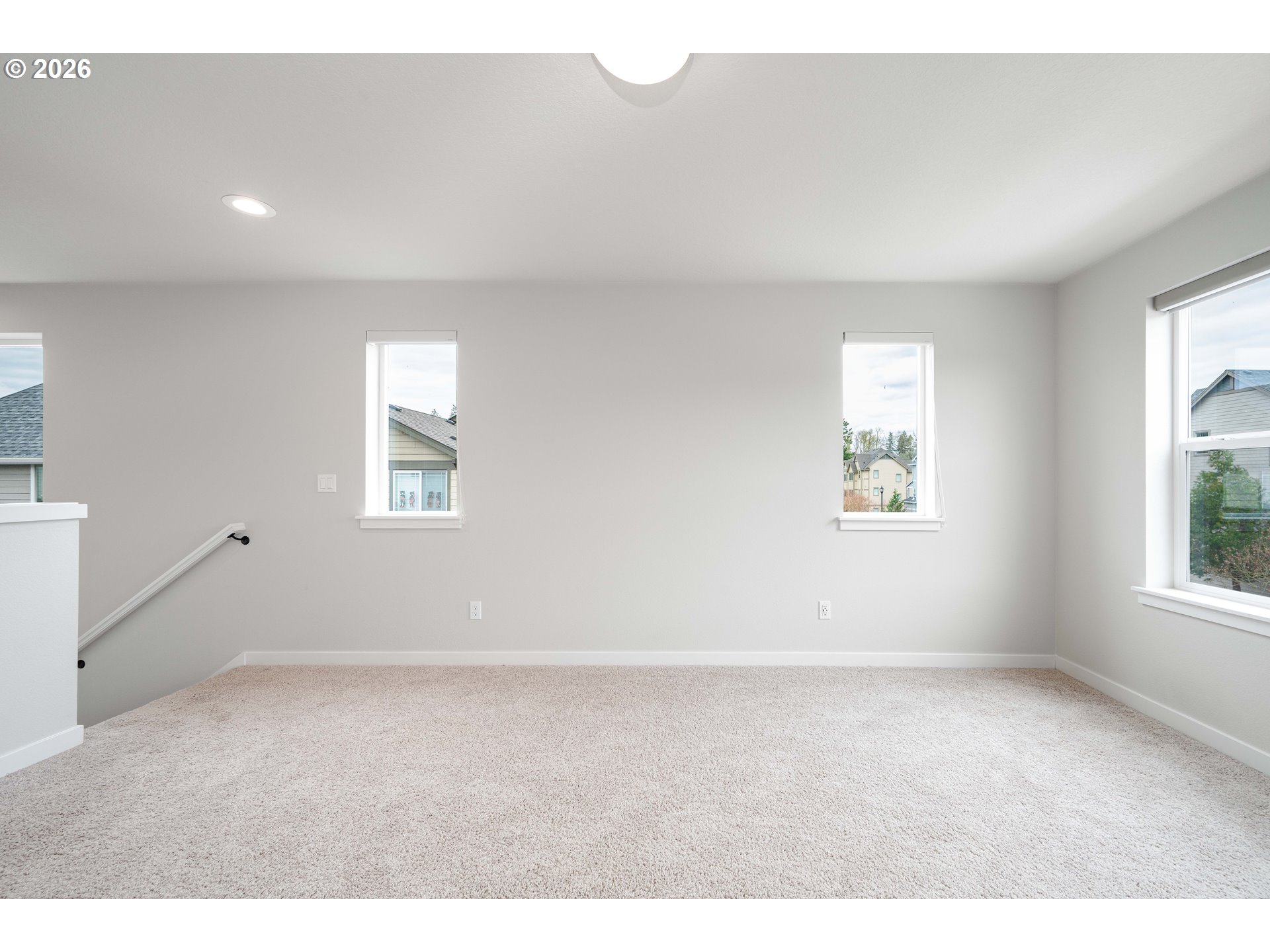 Open-concept home with high ceilings and 4 bedrooms. Gourmet kitchen features quartz countertops, gas range, pantry, and large island—flowing into the great room with gas fireplace and dining area with covered patio for easy indoor-outdoor living. Main-level bedroom or office. Spacious primary suite with soaking tub, tiled walk-in shower, double sinks, and large walk-in closet. Upstairs loft ideal for media or flex space. Two-car garage with extended driveway and street parking. Farmhouse-style exterior. Convenient location nearby Progress Ridge, Sabrina Park, and Mountainside High.