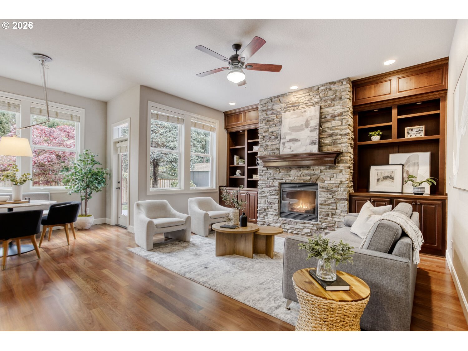 Tucked at the end of a private drive across from Hartung Farms, this Noyes built home offers both privacy and comfort. A dramatic two-story vaulted entry, soaring ceilings, and rich Brazilian cherry hardwoods set the tone for refined living. The thoughtfully designed floor plan features formal living and dining spaces, a warm family room with a stone fireplace and custom built-ins, and a gourmet kitchen with premium stainless steel appliances. Upstairs offers four spacious bedrooms, including a luxurious primary suite with a spa-like tile shower and expansive walk-in closet. Surrounded by trees, the beautifully landscaped backyard provides exceptional privacy, perfect for entertaining or quiet retreat. Top-rated school district, this home is a true standout. Move in ready!