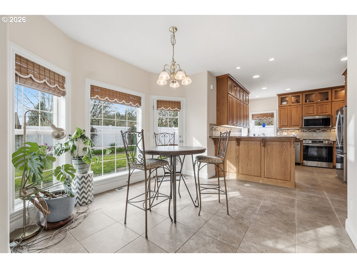 (503) 893-8874Traditional two-story home on a corner lot in Forest Grove with vaulted ceilings and abundant natural light from south-facing windows. The functional floor plan offers 3 bedrooms and 2.5 baths with multiple living spaces, including living, dining, and family rooms that provide flexibility for everyday living and entertaining. The kitchen features granite countertops, stainless steel appliances (including a new range), and a breakfast nook overlooking the fully fenced backyard. The primary suite features vaulted ceilings, a walk-in closet, and an ensuite bath with dual sinks, a jetted tub, and a walk-in shower. The second and third bedrooms are connected by a convenient Jack & Jill bathroom. A laundry room completes the upper level. Outdoor highlights include a water feature and a versatile outbuilding with power and water—ideal for a greenhouse, studio, hobby space, or creative retreat. Front and back automated sprinkler systems provide easy landscape care, completing a property that blends comfortable interior spaces with inviting outdoor living.