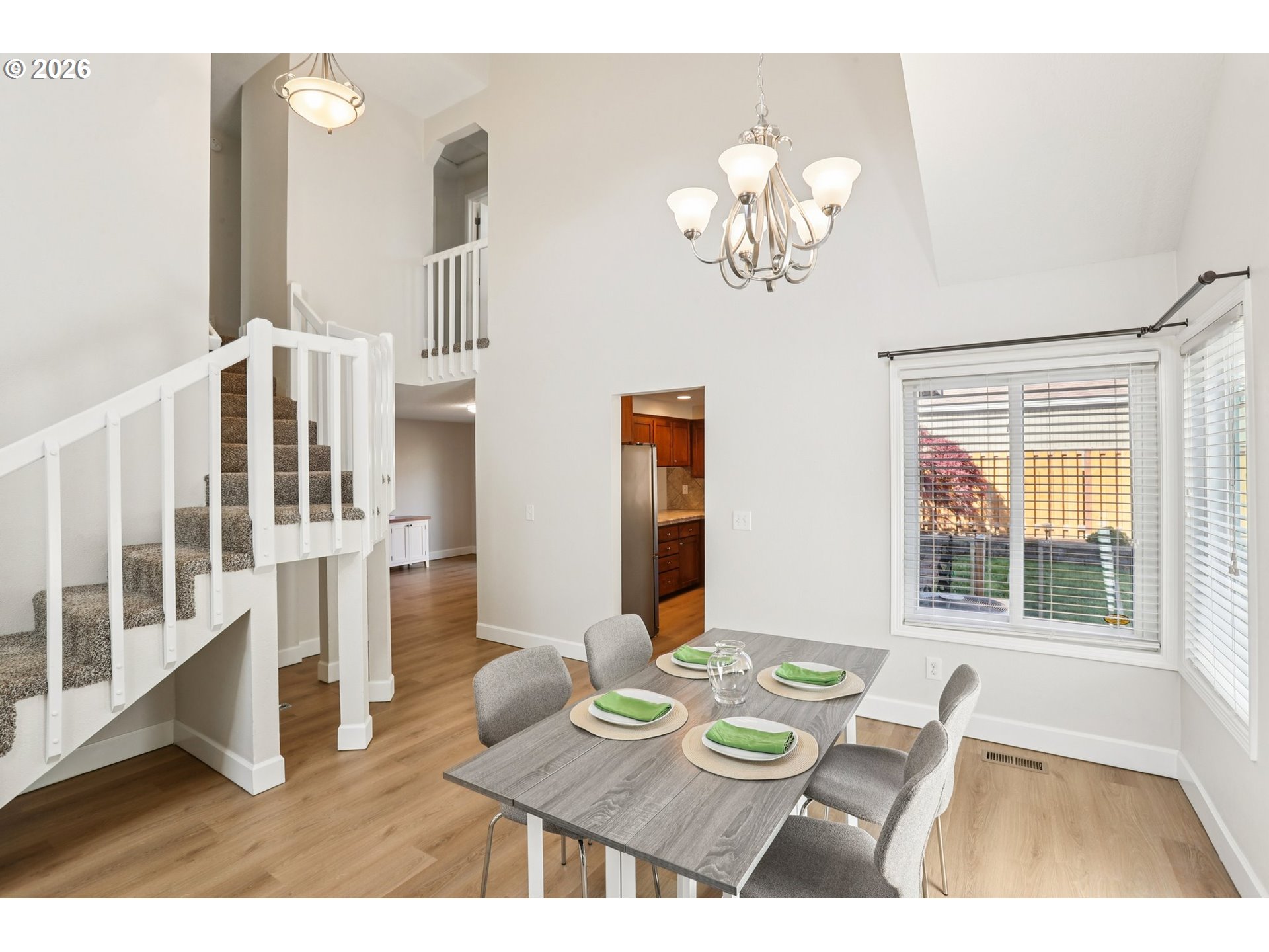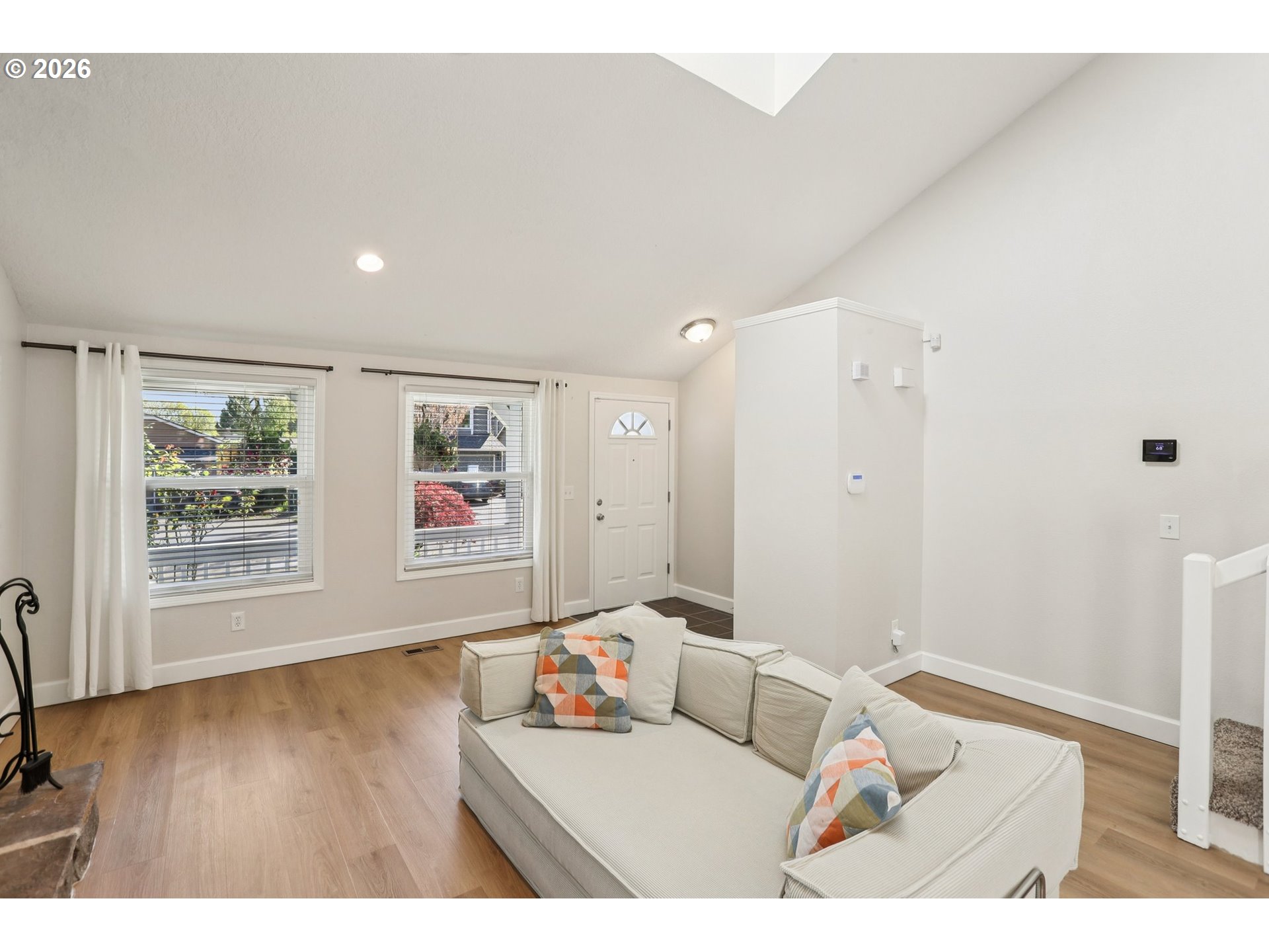 Beautifully updated home in Tigard featuring vaulted ceilings and a striking wood burning rock fireplace that anchors the main living space. Fresh interior and exterior paint and new luxury vinyl plank flooring throughout the lower level create a clean, modern feel. Comfort is covered with A/C, a newer furnace, and new water heater. The private backyard is designed for outdoor living with a stunning hardscape patio, mature Japanese maples, and a fully fenced yard with dog run. Convenient access to the vibrant downtown Tigard area known for local events, restaurants, and neighborhood gathering spots, along with the scenic Fanno Creek Trail for nearby nature and recreation. Includes a 1-year home warranty plan for added peace of mind. Open Saturday 1-3 | Sunday 1-3