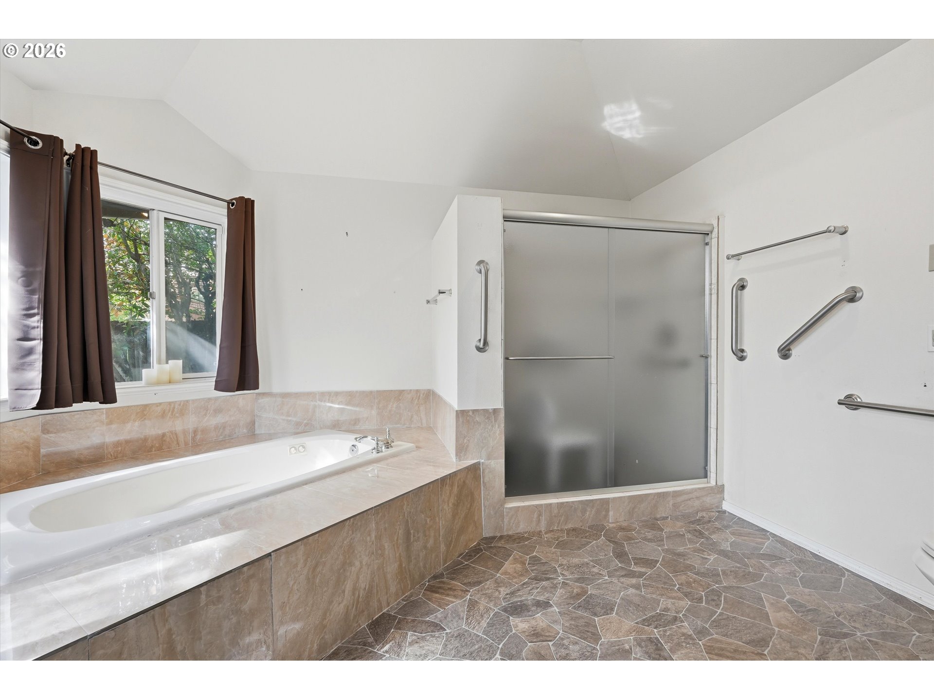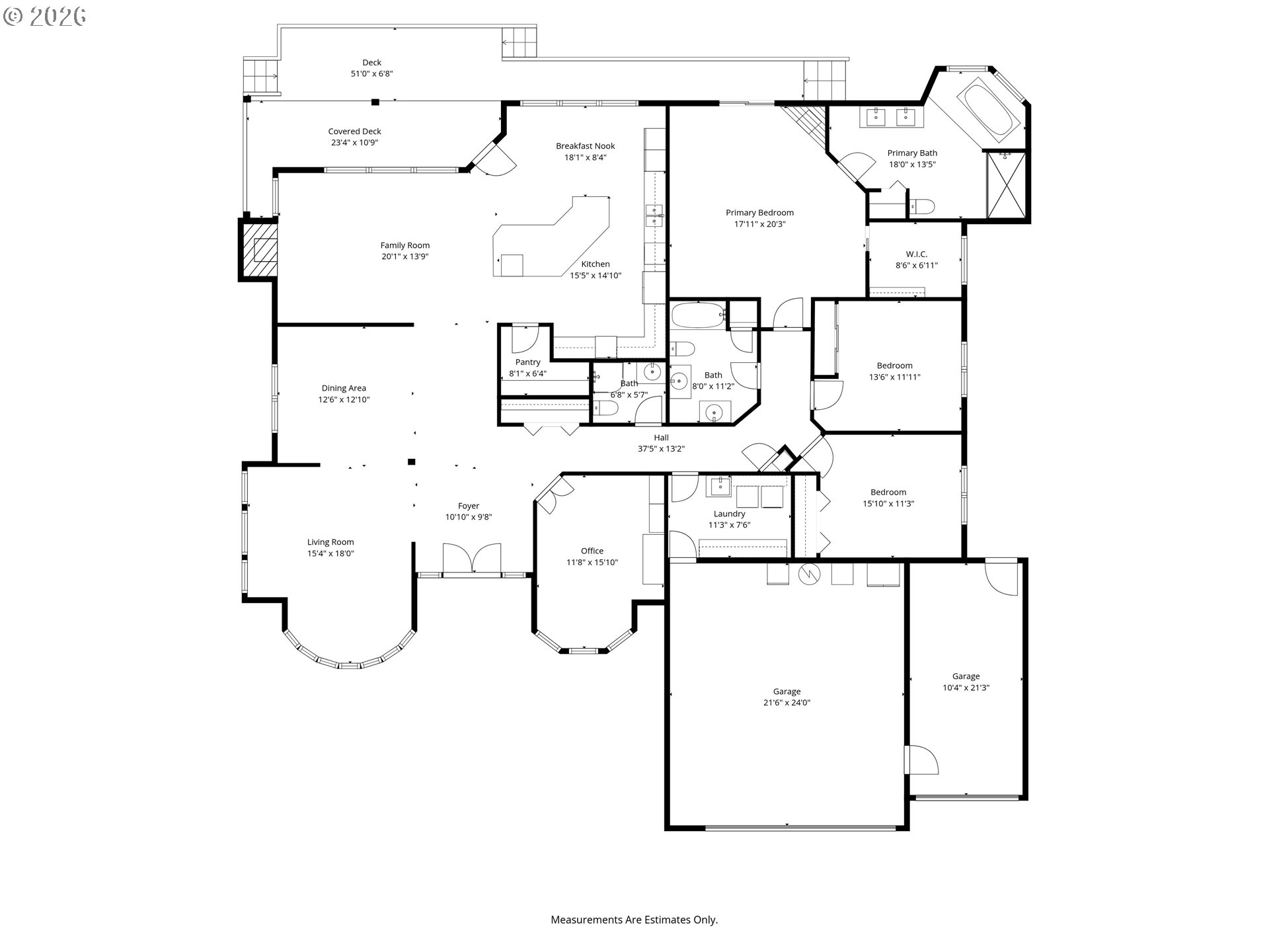 If 3 is your lucky number, this could be the home for you. Rare single-level Cedar Mill home with 3 bedrooms, 3 full bathrooms, a 3-car garage, and nearly 3,000 square feet of living space. Filled with natural light, this home features high ceilings, hardwood floors, extra-wide hallways, and a functional floor plan with accessibility in mind. A private office offers work-from-home flexibility, while two separate living areas provide space to gather, relax, and entertain. The primary suite includes a gas fireplace, soaking tub, and oversized walk-in closet. The huge kitchen offers a walk-in pantry, built-in wine chiller, oversized gas cooktop, double ovens, granite counters, skylights, and an open connection to the family room and bright eating area. Built in 1992, the home retains its original character and gives the next owner room to bring their own style and vision. Outdoor spaces are low-maintenance, with a newer Trex deck, raised garden beds, and Italian rosemary out front. Important updates include new gutters (2023), Trex deck (2021), A/C (2024), dishwasher (2024), electrical panel (2025), garbage disposal (2025), and water heater (2026). Conveniently located near Nike, Intel, Hwy 26, Sunset Athletic Club, and Claremont Golf Club, this Cedar Mill location also offers access to nearby schools including Terra Linda, Tumwater, and Sunset High with current GreatSchools ratings of 8/10, 9/10, and 9/10 respectively.