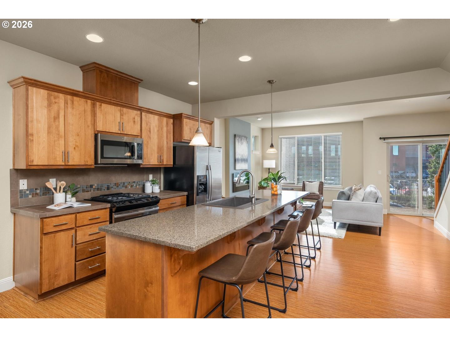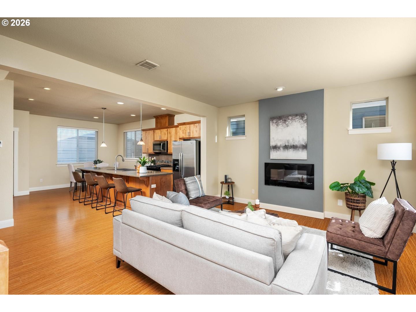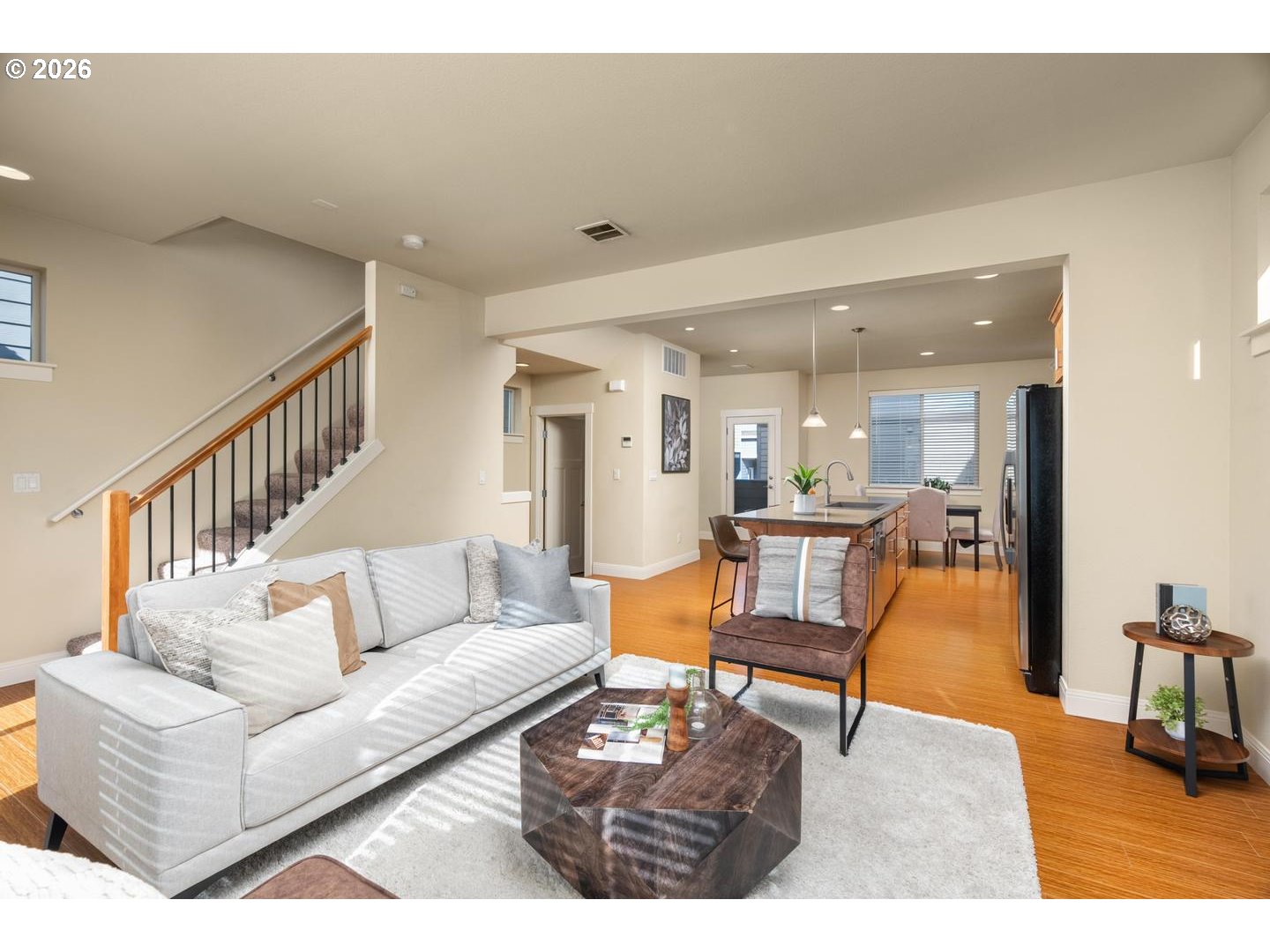 Open House: Sunday, Feb 22, 1:30-3:30 PM. Modern Living in Highly Sought-After 45 Central in Beaverton, OR with Ideal Southern Exposure. Bright Natural Light Fills the Open Great Room, Highlighting Wood Laminate Floors, Electric Fireplace, Big Picture Windows & Sunny Front Deck. The Open Kitchen Features Granite Counters, Large Island With Eating Bar & Stainless Steel Appliances. The Nook Alongside the Back Deck is Perfect for a Desk Area or Pantry. The Flexible 4-Bedroom Floor Plan Includes a Bedroom at The Front Entry that's Ideal for Office, Guest Space or Bonus Room. Upstairs Offers a Conventient Laundry Room with Washer/Dryer Included & Each Bedrooms Has Fabulously High Ceilings. The Vaulted Primary Suite With Walk-In Closet & Dual Sinks Has Amazing Natural Light. 2-Car Garage Plus Convenient Street Parking in Front. HOA Amenities Include Pool, Gym, Parks & Community Room. Located Near Nike World Headquarters, VillaSport Athletic Club, Intel & the Sunset Tech Corridor, Minutes to Cedar Hills Crossing, MAX Light Rail, THPRD Nature Park & Easy Access to Hwy 26 & 217. This Home Has It All!