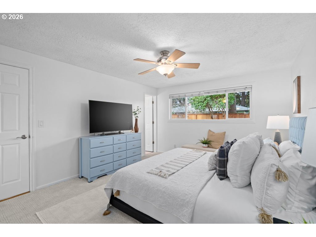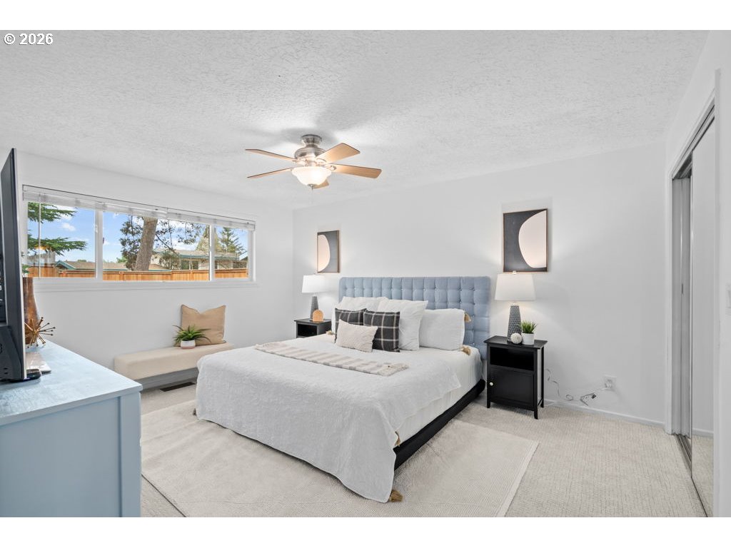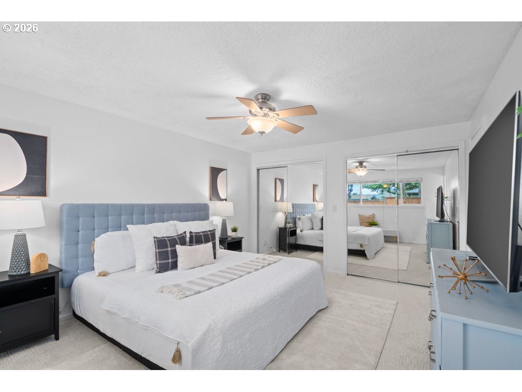 OPEN HOUSE Sat, March 7th 12-2PM. Well cared for, single-level 3 bedroom, 2 full bath home with thoughtful updates throughout. The open kitchen features wood cabinetry, solid granite countertops, an island, and stainless steel appliances, and flows directly into the dining room, which includes French doors opening to the backyard. The primary suite was recently painted, and both bathrooms were fully remodeled in 2023 with updated tile work, vanities, fixtures, and plumbing. Light-toned engineered hardwood flooring was installed in 2023 throughout the main living areas, while all three bedrooms feature brand new carpet. The spacious living room offers a gas fireplace with reclaimed wood surround and built-ins, and a separate family room includes a wood-burning fireplace and French doors to the backyard. The large, fully fenced backyard is well suited for entertaining and everyday use, with a newer fence, deck and pergola covered in clematis, hot tub patio, fire pit area, lawn, shed, and gated RV parking. Exterior was repainted in 2025, and the home includes fully paid-for solar panels for energy efficiency and long-term savings.