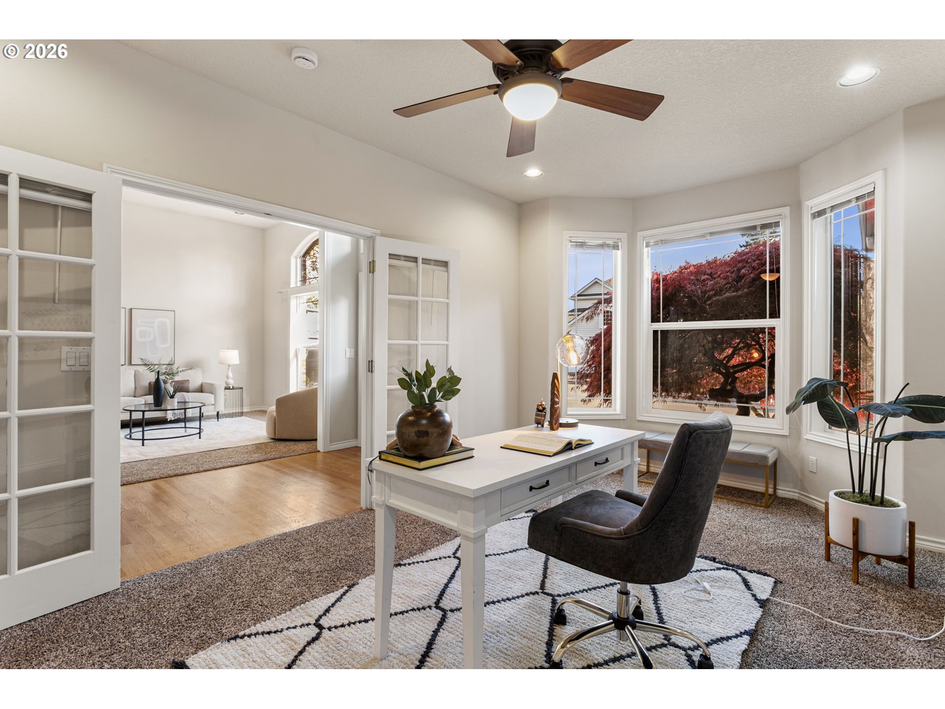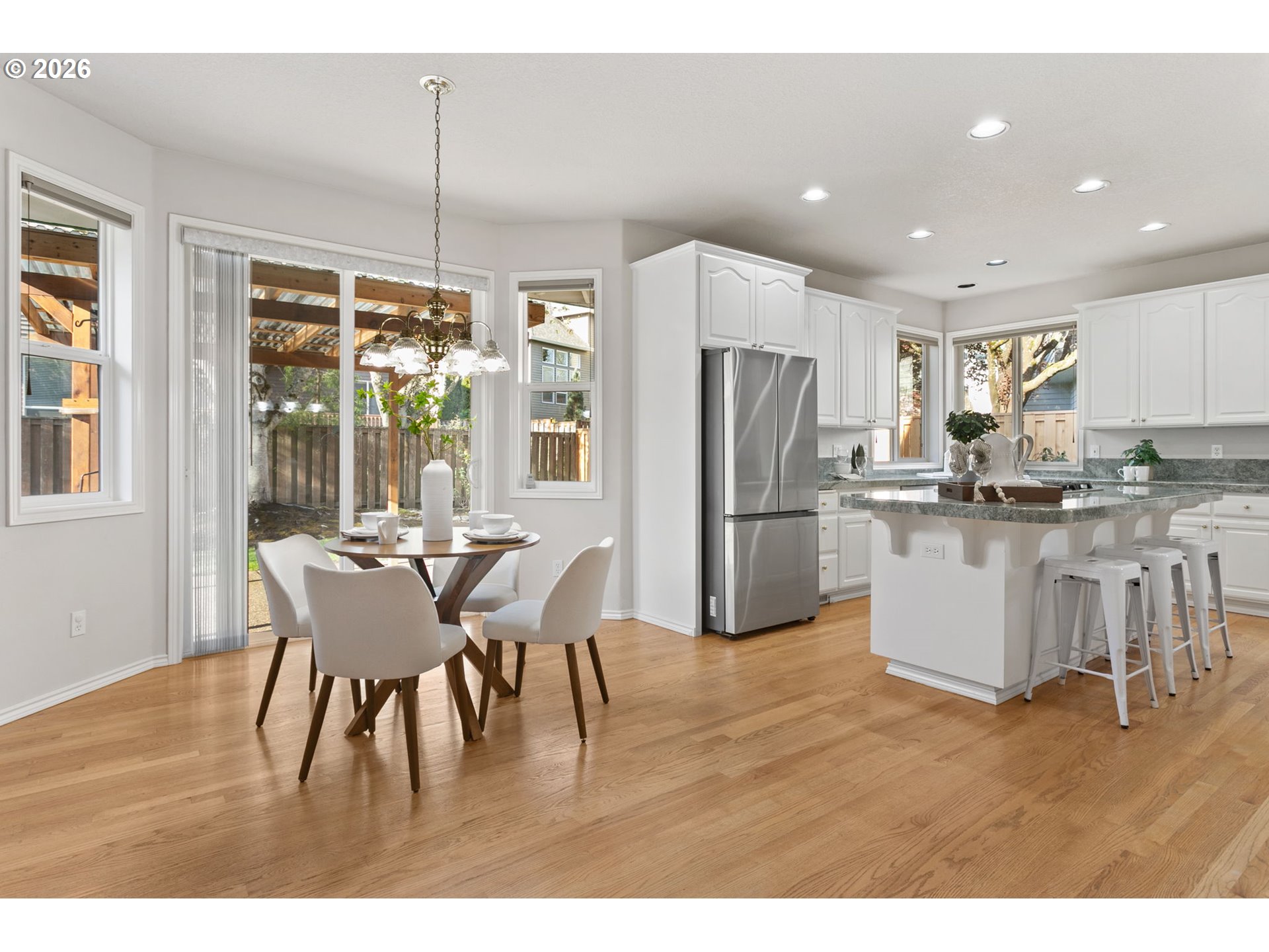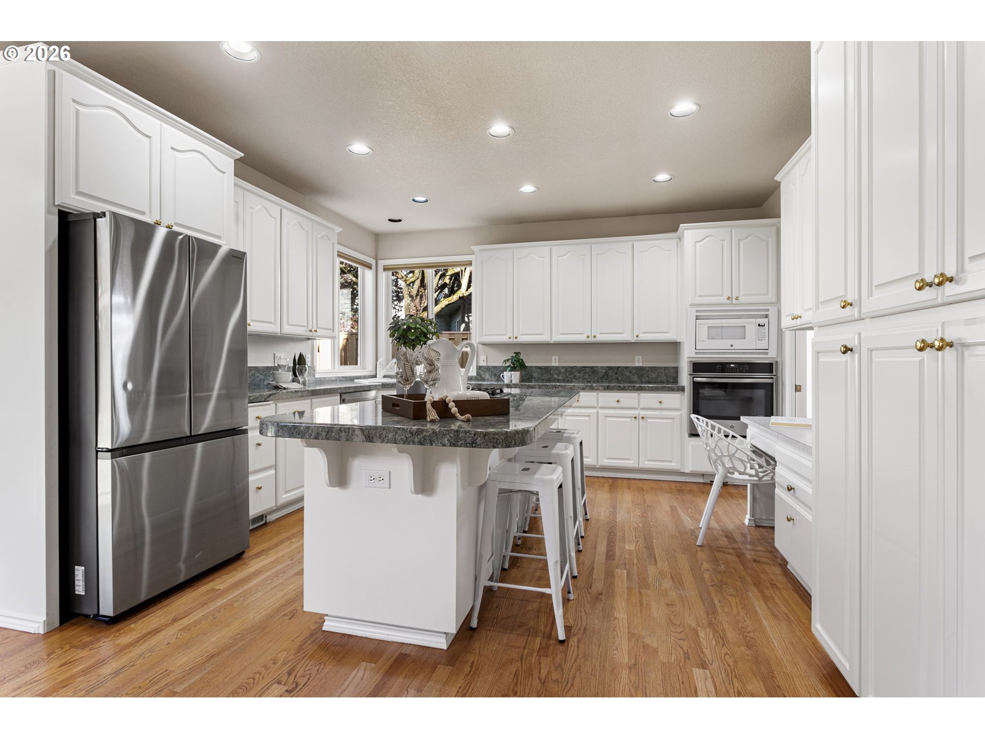 (503) 893-8874You will notice it before you can explain it. The light, the flow, the feel, the way everything just works. Set within Oakridge Estates, this Bethany home offers a custom floor plan that is rarely available, anchored by a true main-level, primary suite and dedicated office. Soaring ceilings, rich hardwood floors, and fresh, plush carpet set the tone for the light-filled, freshly painted interiors throughout. The great room unfolds with intention, creating a seamless connection between the kitchen, dining room, and living spaces, all anchored by a warm gas fireplace and elevated by custom Hunter Douglas motorized shades. Designed for both function and gathering, the kitchen features slab granite surfaces, abundant white cabinetry, a spacious pantry, and a dedicated workspace. The central island is complete with a 5-burner gas cooktop and nearby built-in oven and microwave. This kitchen invites everything from casual mornings to elevated entertaining. The main-level primary suite offers a true sense of retreat, with private access to the backyard and a spa-inspired ensuite featuring dual vanities, a walk-in shower, jetted soaking tub, private water closet, and generous closet. Upstairs, three additional bedrooms and a thoughtfully designed bath provide flexibility for guests, work-from-home living, or multi-generational needs. Outdoors, a covered patio overlooks a beautifully maintained, fully fenced yard with mature landscaping, in-ground sprinklers, and a garden shed. A three-car garage adds both convenience and versatility. Meticulously cared for, with recent updates including gutter maintenance, roof treatment, and a new crawl space vapor barrier, along with major systems and appliances updated between 2017–2025. Oakridge Estates offers a lifestyle that’s hard to match, with access to tennis courts, a community amphitheater, park, playground, neighborhood events, and scenic walking trails all in close proximity to highly rated schools: Findley, Tumwater & Sunset.