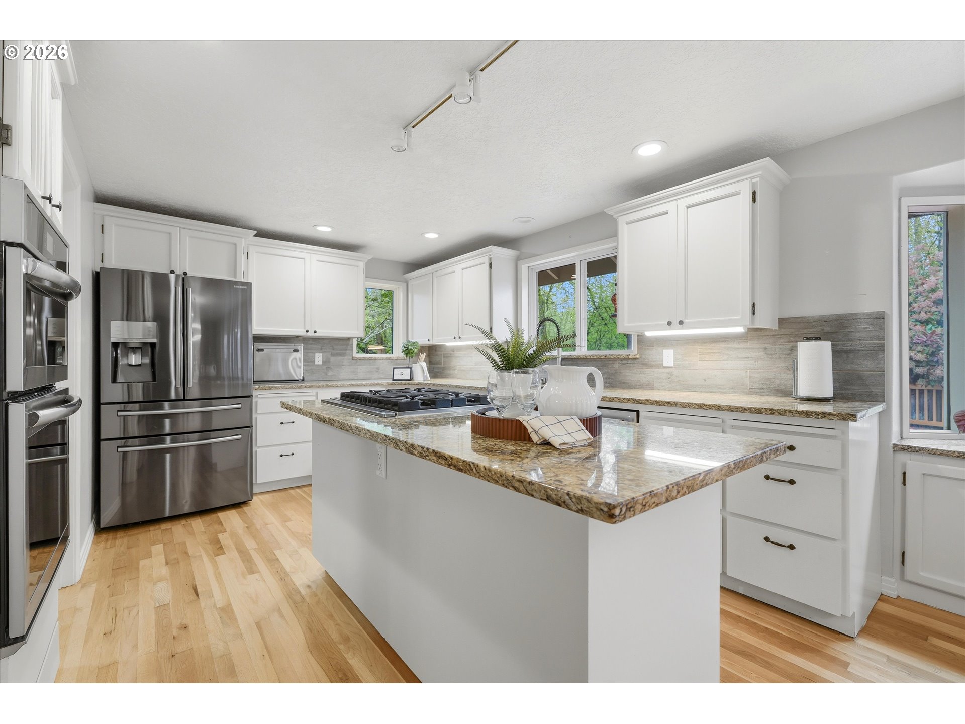 (503) 893-8874Spacious, light-filled home in the historic Oak Hills neighborhood! This 3,750 sq ft home offers 5 bedrooms, 3 bathrooms, multiple living areas, and incredible indoor-outdoor space perfect for entertaining and family living. The main level features 3 large bedrooms and 2 full bathrooms, a family room, living room with fireplace, sunroom, and sliders to both the deck and side yard. Skylights throughout the main level bring in abundant natural light. Refinished hardwood floors run through the family room, kitchen, and dining areas. Upper level includes a private guest suite (2nd Primary), additional bedroom, and family room, and easy access to a large attic storage space. The huge main level primary suite offers a walk-in closet, mirrored closets, and a spacious bathroom with shower and soaking tub. Laundry room, pantry, and mudroom conveniently located off the kitchen, has plenty of space to craft or study with counters, desk, and storage- even with a finished pull-down attic space perfect for a playroom, meditation, or workout. Exterior entrance makes heading outside easy! The massive 1,200+ sq ft deck with new railing, makes outdoor living inviting. . . by overlooking peaceful wetlands filled with native birds and sounds of nature. The .28 acre lot includes raised garden beds, mature landscaping, Japanese maple trees, a dogwood tree, roses, Oregon grape, ferns, and star jasmine. Sprinkler system throughout yard with Rachio digital control keeps the yard easily watered. A 2-car garage with attached workshop (or workout space); Large storage space above garage; Outdoor storage shed. The wide street on a corner lot provides plenty of parking. Excellent schools and the Oak Hills community center & pool are nearby. This is the perfect home for a growing or multi-generational family. Oak Hills Community offers 33 acres of pristine park like setting that runs through the community & year long activities for residents & guests.