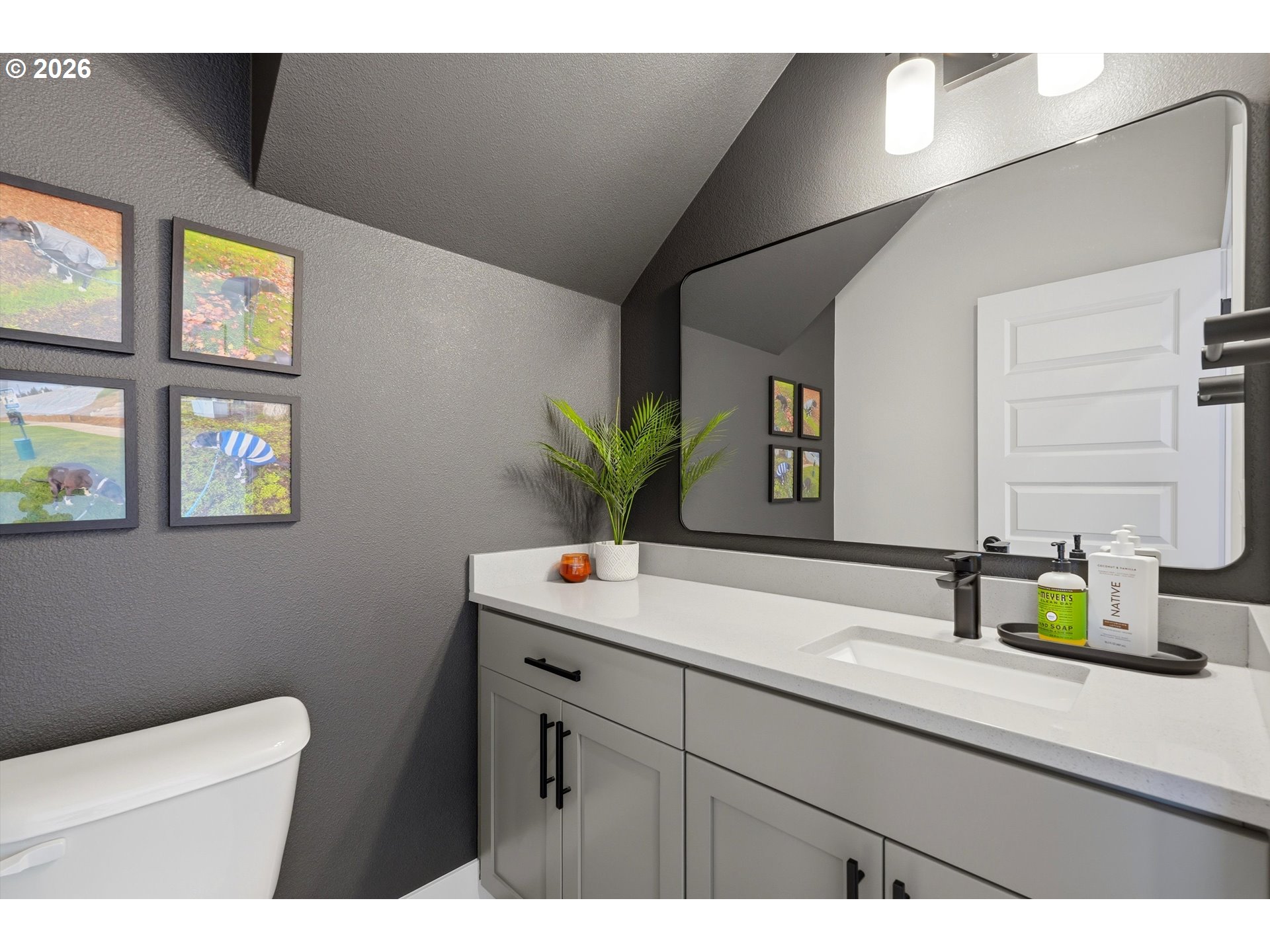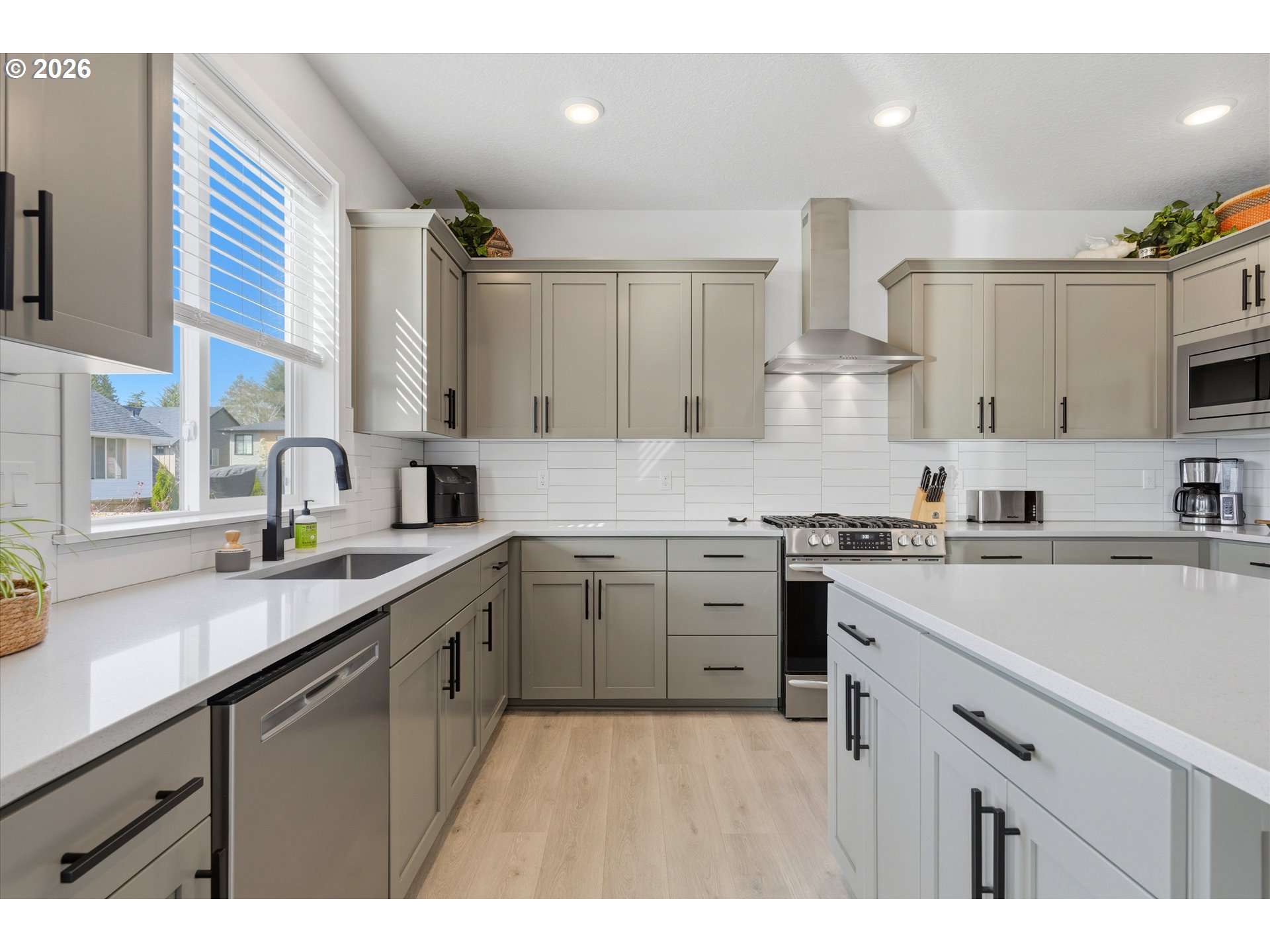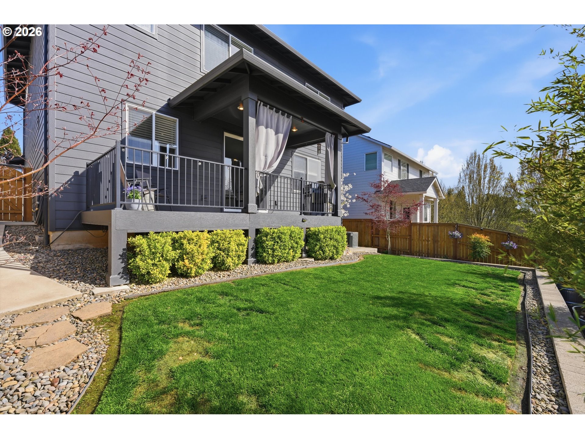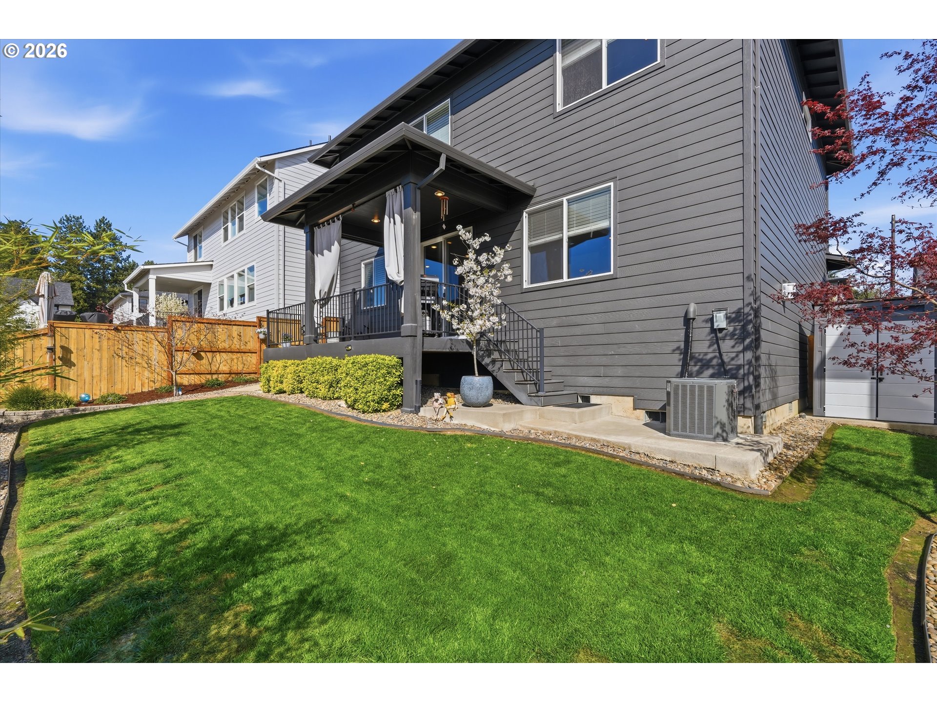 Stunning contemporary home on Bull Mountain! Discover, the epitome of modern living in the meticulously designed 4 bedroom, 2 1/2 bathroom home crafted by Mark Stewart. Spanning almost 2200 ft.², this home boasts 9 foot ceilings on both floors, creating an airy and spacious ambience. The main level features a great room with built-in features and a lovely spacious kitchen complete with quartz countertops, tile backsplash, stainless steel appliances (including a FS-Fridge & gas range), pantry and laminate flooring. French doors open to a versatile bedroom, currently utilized as a home office. Upstairs, the primary suite offers a sanctuary with a large soaking tub, beautifully tiled shower and walk-in closet. The expansive bonus room presents endless possibilities – use it as a 5th bedroom, home gym or theater room to suite your lifestyle. Outdoor living is a delight with an extended covered deck and a beautifully landscaped fenced yard. So many additional upgrades since purchase. No HOA! Home feeds to well rated schools; close to parks, shopping, so many delicious restaurants and fun activities. Don’t miss this incredible opportunity to live the Bull Mountain life style!