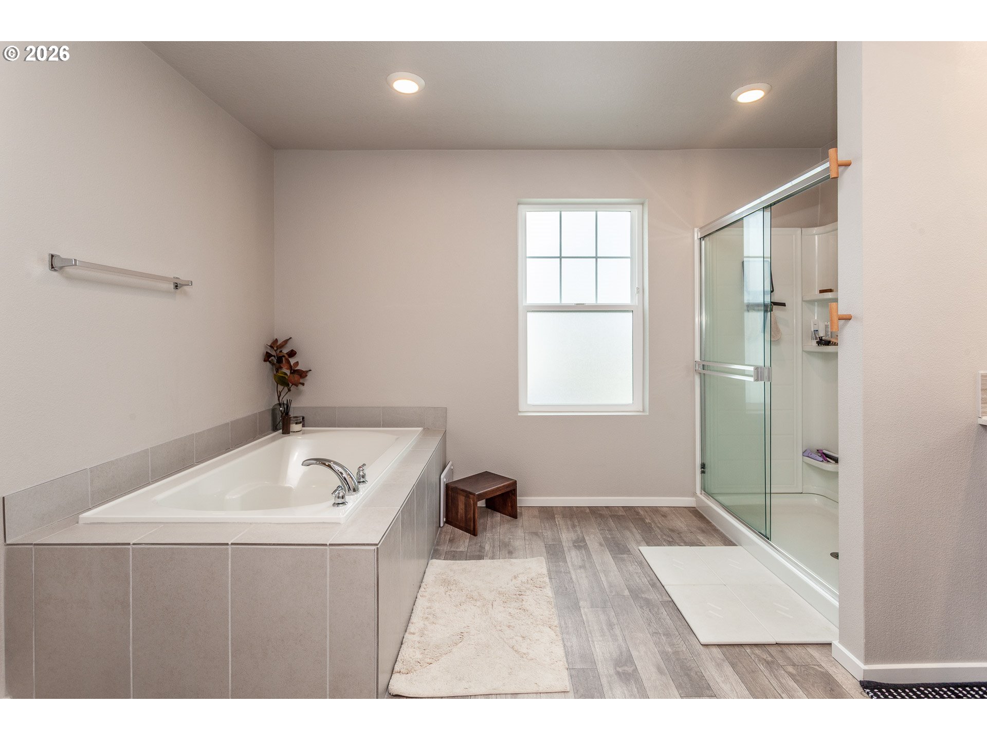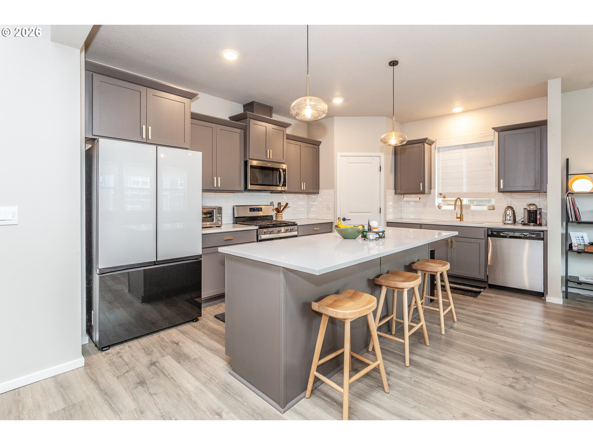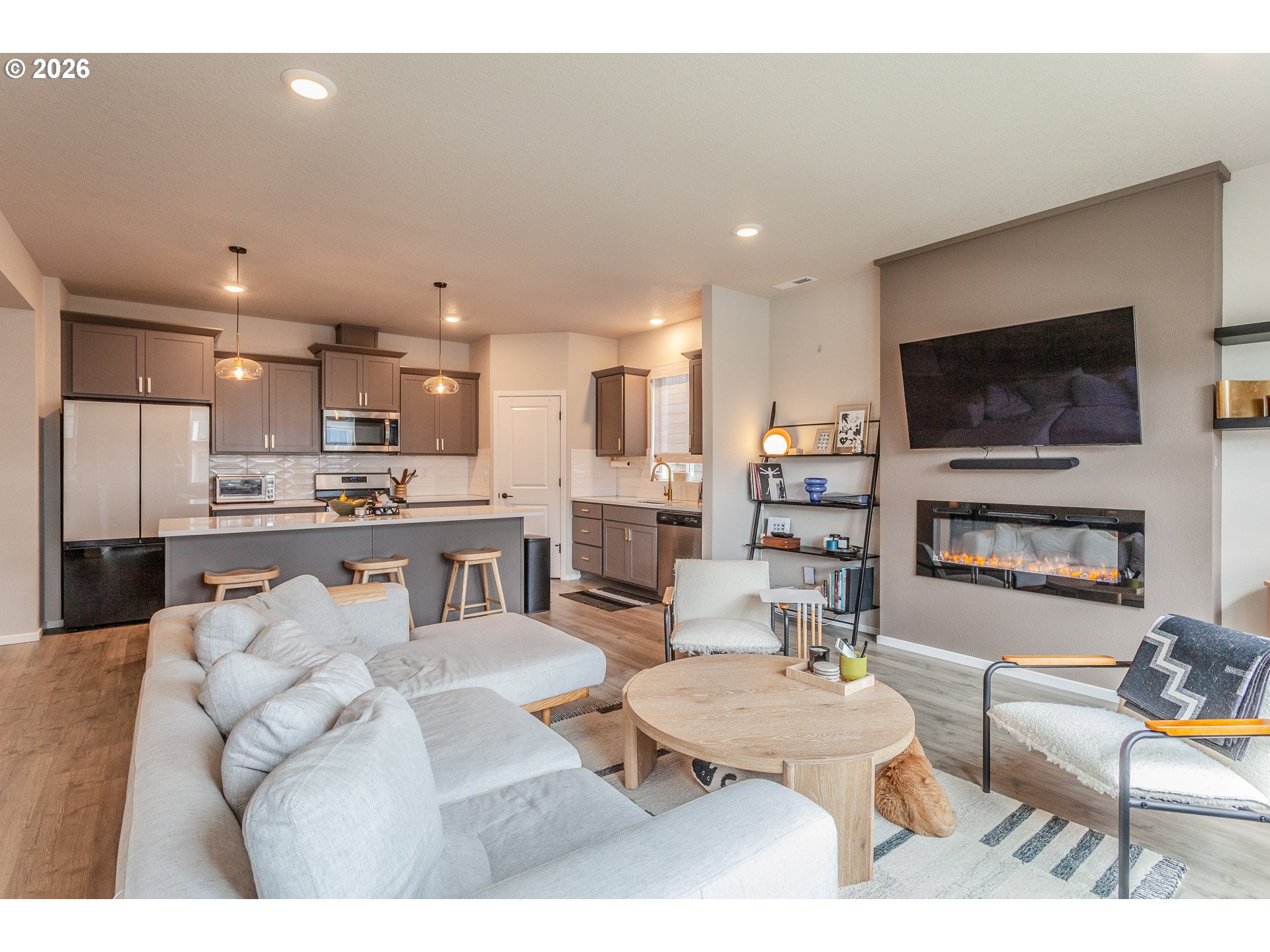 Better than new! Stunning 4 bedroom, 2.5 bath home, built in 2022 - all the conveniences of new construction, with some awesome upgrades! Desirable great room floor plan with separate dining area, and a cozy living room with flush mounted electric fireplace for ambiance. A true cook’s kitchen with quartz counters, stainless steel appliances, gas range, large island, breakfast bar, pantry, and tons of storage! Four generous sized bedrooms upstairs, including a luxurious primary suite complete with soaking tub, walk-in closet, walk-in shower, and double sinks with custom medicine cabinets! Convenient upstairs laundry, wired in whole house wifi hot spot, and smart light switches. High efficiency gas furnace, central air, security system, and a car charging unit in the attached 2 car garage! Wonderful, low - maintenance yard, with built in sprinklers, and a back patio perfect for summer BBQs! Convenient location, close to I -5 and 217, yet tucked back on a quiet street - close to shopping, restaurants, parks, or enjoy a stroll along the beautiful Fanno Creek trail - this is a must see!