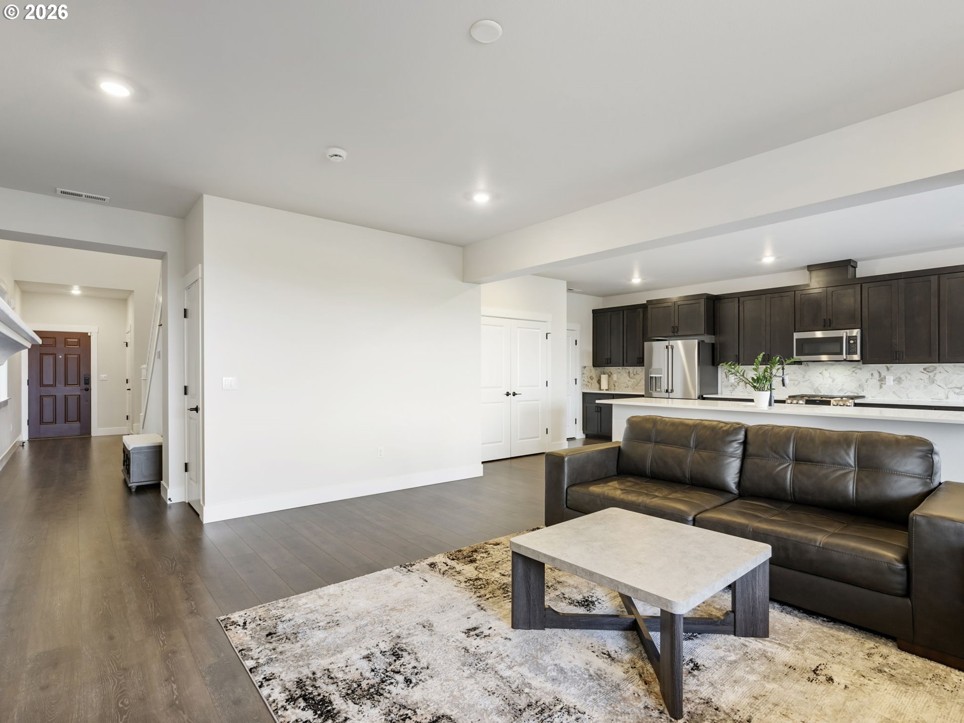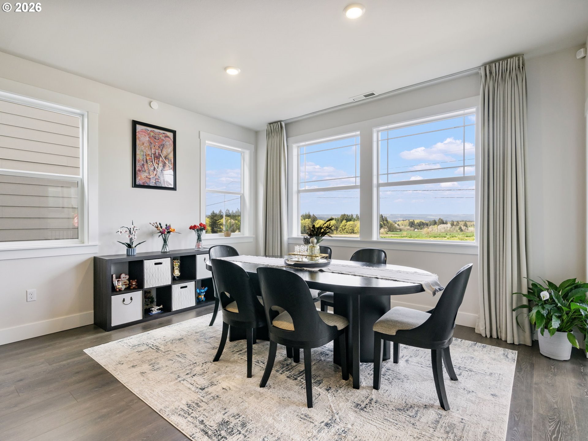 OPEN HOUSE SAT, 4/11 FROM 1PM-3PM & SUN, 4/12 FROM 11AM-1PM. Stylish Comfort & Smart Living in Sought-After Tigard! Just like new, beautifully maintained home in South River Terrace community, offering the perfect blend of modern comfort & convenience. Built in 2023 with spanning across 2704 SqFt of living area, this property features 4 beds/2.5 baths, bright & light, a thoughtfully designed open layout with generous living areas and a seamless flow perfect for everyday living. Inviting entry with high ceilings & laminate flooring leads to the great living room with electric fireplace. The spacious kitchen is a true centerpiece, featuring a large island, expansive pantry, ample cabinetry, quartz counter tops, SS appliances including dishwasher, microwave, 6-burner gas range, refrigerator, eat bar and a dining area with a slider that leads to a covered deck. Upstairs is all carpeted, and has a relaxing primary suite with a well-appointed layout, walk-in-closet & an ensuite bath with dual vanity, soaking tub and a separate shower, offering comfort & privacy. Additional 3 bedrooms and a versatile loft space offers flexibility for guests, a home office, or hobbies. Convenient laundry room with washer/dryer and additional storage space. Enjoy gorgeous views that add to the home’s charm and sense of tranquility. Smart & functional upgrades include a Ring doorbell, central air, Low-VOC Material, and an electric water heater. The furnace & hot water heater are conveniently located in the garage and operate quietly, enhancing the home’s comfort. An exterior AC unit ensures efficient cooling during warmer months. Outside, fenced, low maintenance backyard—perfect for summer barbecues & gardening. Easy access to near by parks, schools, shopping, dining & major commuter routes including Scholls Ferry & HWY 217.
