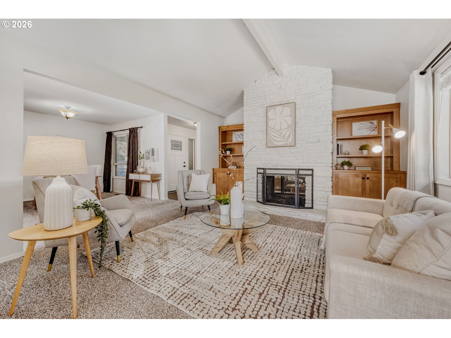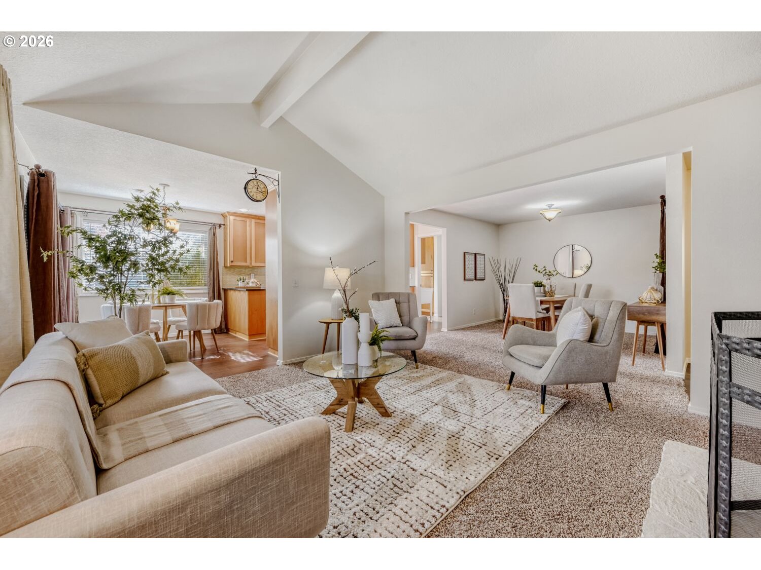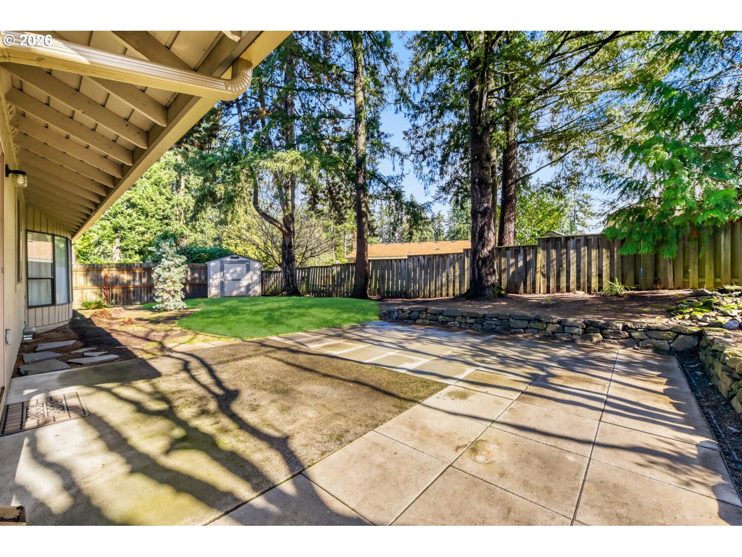 Gorgeous turnkey ranch in desirable Hartwood Hylands neighborhood! Situated on a peaceful loop street, this northwest contemporary has been immaculately maintained and fully updated. Gourmet kitchen offers shaker-style cabinets, quartz countertops, full-height tile backsplash, stainless steel appliances, and dining nook. It's open to the vaulted family room, featuring a floor-to-ceiling two-way stone fireplace and built-ins. Oversized primary suite offers double closets and an updated bathroom with new walk-in shower. High-quality construction including vaulted ceilings with exposed beams, large room sizes, and abundant window space for great natural light. Numerous updates including white doors and millwork, all-new interior paint, updated fixtures and hardware, and more! Fully fenced backyard boasts large patio, tool shed, mature landscaping, and exceptional privacy. Outstanding location, just steps from numerous THPRD parks and trails!