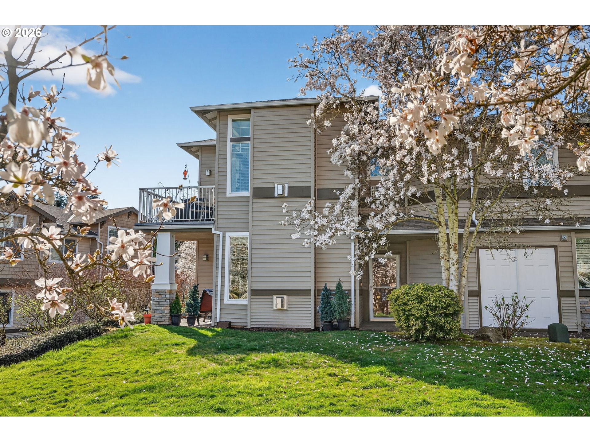 In Full Bloom... Progress Ridge offers the elusive blend of plentiful access to nature and metropolitan amenities, making it one of Beaverton’s most desirable communities, a grocery oasis! This private, bright corner unit captures the tableau of the flourishing tree-lined courtyard – what a peaceful, parklike setting to call home! Meticulously maintained, with abundant comfort and style, features include a gas fireplace, granite countertops, an eating bar, and a primary bedroom that can accommodate a king sized bed and has a walk-in closet and en suite bathroom with a soaking tub. Don’t miss the private patio next to a community greenspace. This spic-and-span complex, with its verdant grounds bursting with spring blossoms, is a must-see for anyone looking for the perfect setting and easy one-level living. FHA/VA-approved! Make your way on Mallard Dr for a cuppa at Ava Roasteria and on to Progress Lake or Splash Pad, then dinner and a movie.