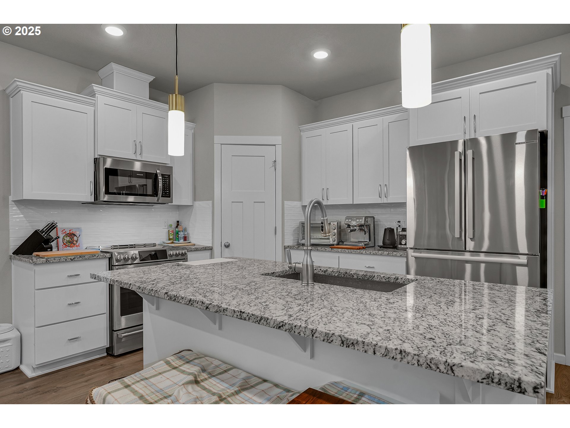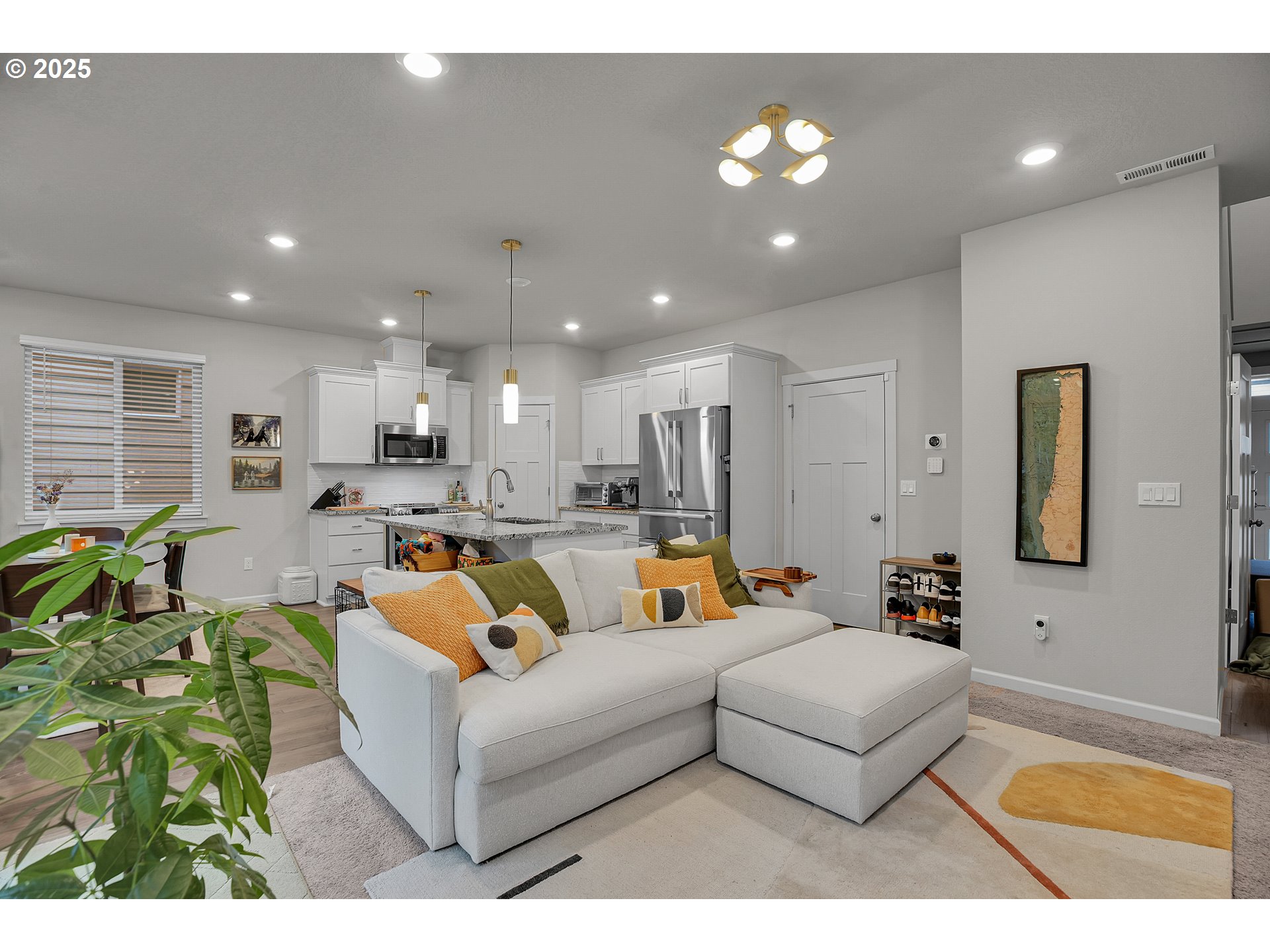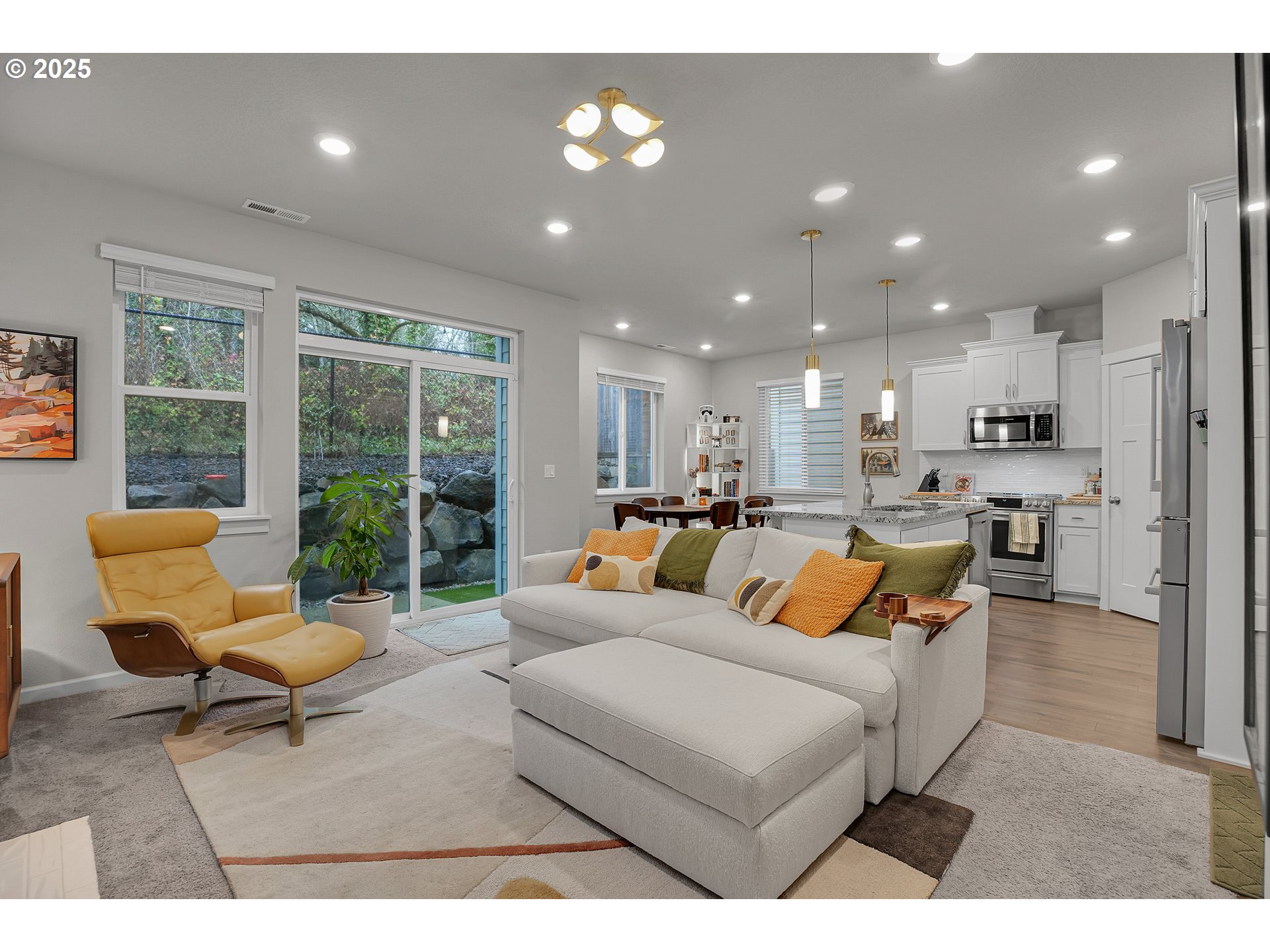 Welcome to this 2021 built home in Gales Creek Terrace. With a comfortable layout featuring 3 bedrooms and 2.5 baths, along with a full-sized garage, this home provides everything you would need. This well-maintained property delivers an efficient and comfortable living experience. Exceptional upgrades make it better than new! The open kitchen is a central feature, including beautiful white cabinetry, granite countertops and stainless Steel appliances including an induction oven. Primary bedroom with ensuite bath and large walk-in closet. In the back you will find a private, fully fenced rear patio with turf backing up to green space providing an ideal, low-upkeep space for your enjoyment. Take advantage of low energy costs with owned solar panels included in the sale of the home. Reap the benefits of year around comfort with central AC. Enjoy local walking paths & parks, and an easy walk to downtown Forest Grove and Pacific University.