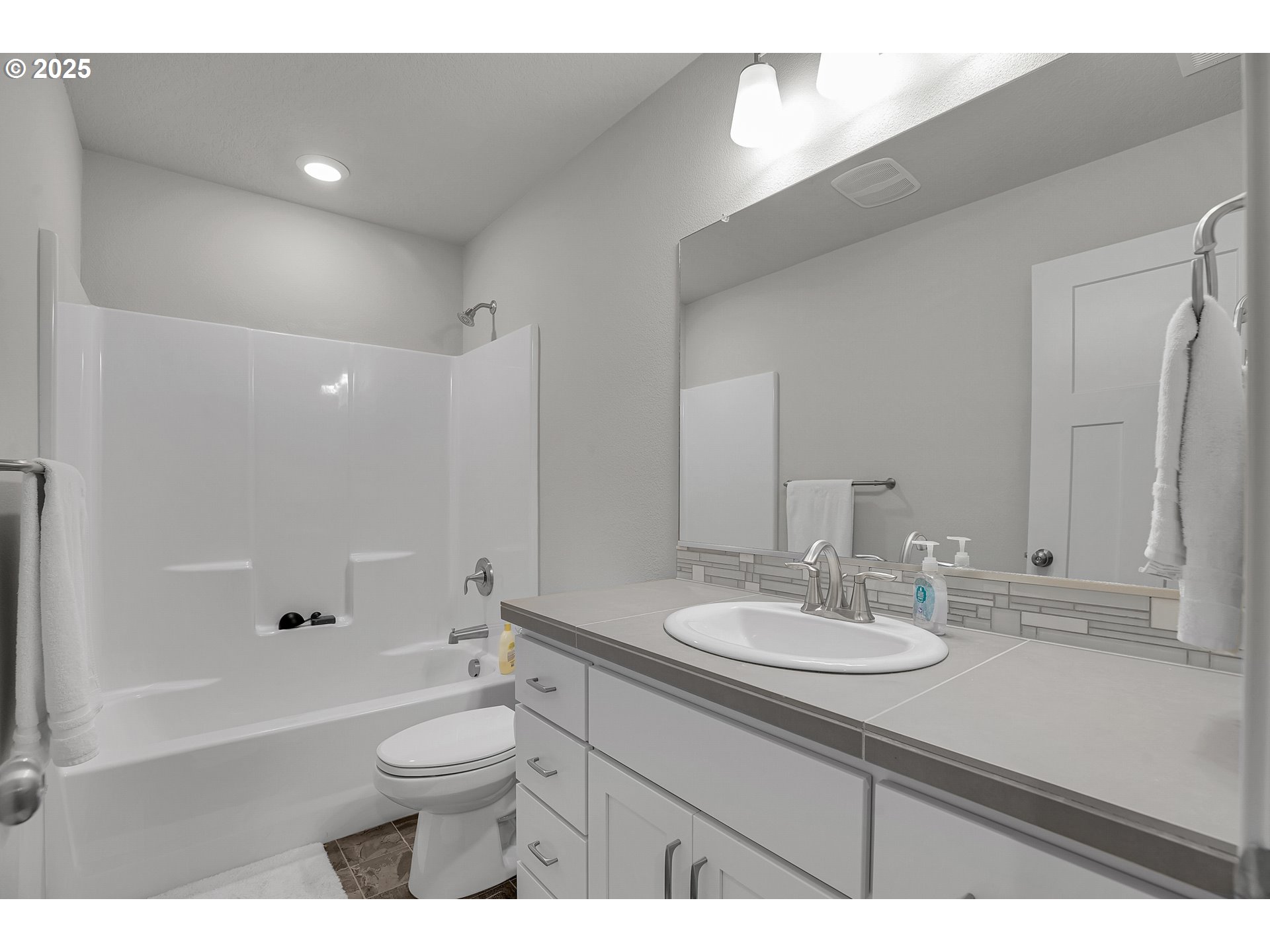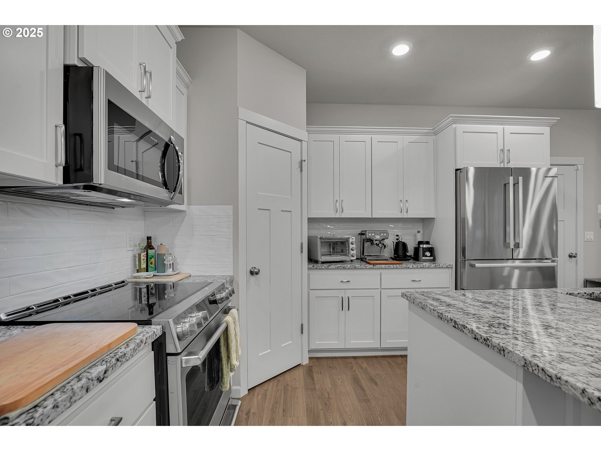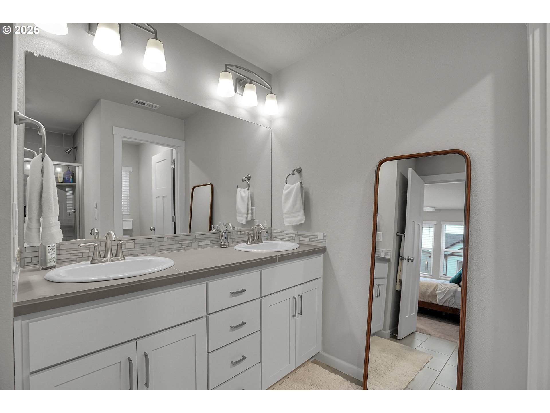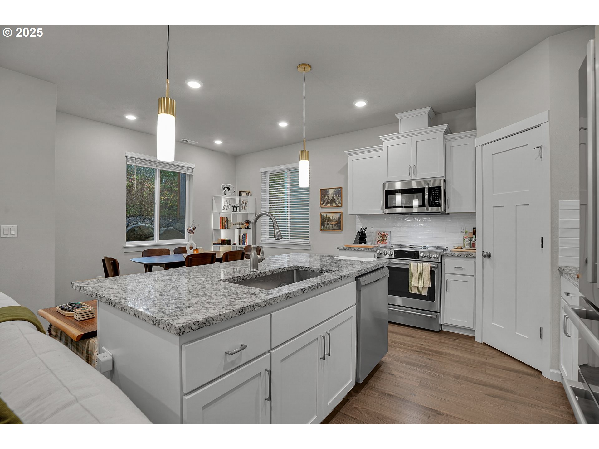 Welcome to this 2021 built home in Gales Creek Terrace. With a comfortable layout featuring 3 bedrooms and 2.5 baths, along with a full-sized garage, this home provides everything you would need. This well-maintained property delivers an efficient and comfortable living experience. Exceptional upgrades make it better than new! The open kitchen is a central feature, including beautiful white cabinetry, granite countertops and stainless Steel appliances including an induction oven. Primary bedroom with ensuite bath and large walk-in closet. In the back you will find a private, fully fenced rear patio with turf backing up to green space providing an ideal, low-upkeep space for your enjoyment. Take advantage of low energy costs with owned solar panels included in the sale of the home. Reap the benefits of year around comfort with central AC. Enjoy local walking paths & parks, and an easy walk to downtown Forest Grove and Pacific University.