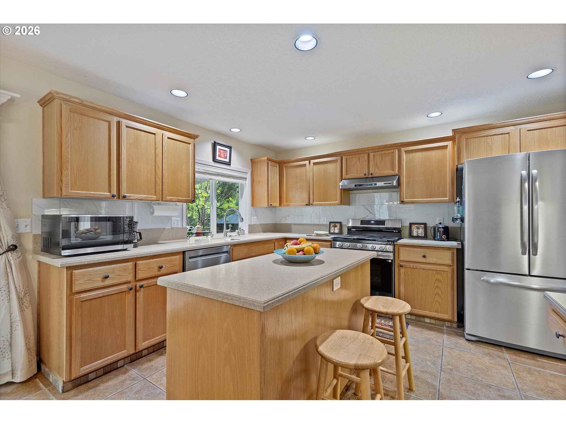 Dishwasher, Disposal, FreeStandingGasRange, FreeStandingRefrigerator, Island, Pantry, StainlessSteelApplia