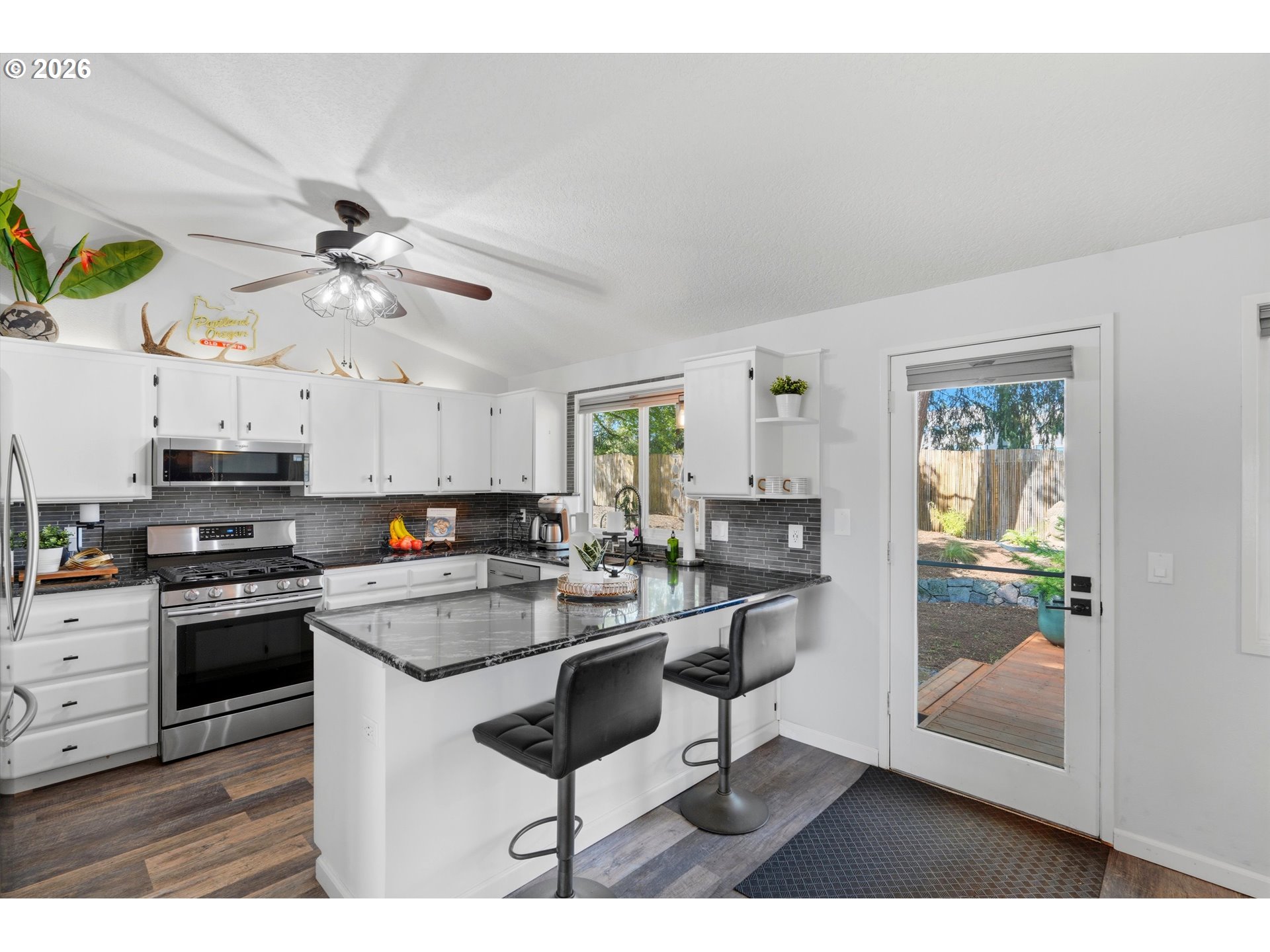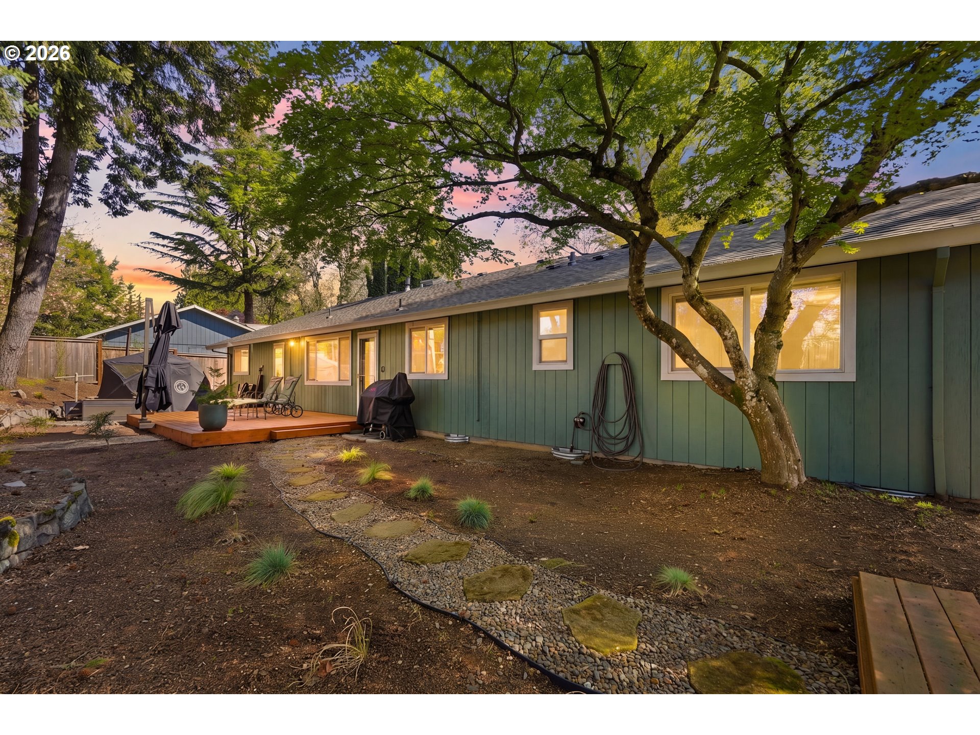 3 Bed / 2 Bath + Flex Room | 1,491 Sq Ft. Welcome to Tigard living at its best! This beautifully updated one-level ranch is tucked into a quiet cul-de-sac and offers a light-filled, open layout designed for easy, everyday living. Vaulted ceilings and a spacious living and dining area create a bright, inviting atmosphere, complete with a cozy pellet stove for cooler evenings.The home features three bedrooms, two bathrooms, and a versatile flex space perfect for a home office, fitness area, playroom, or hobby room. The kitchen shines with stainless steel appliances, granite countertops, and a sleek tile backsplash—both stylish and functional.Step outside to a backyard that feels like your own private park, with plenty of space to relax, entertain, or run and play. Dog lovers will appreciate the two built-in “peek” windows in the fence, perfect for pups to safely keep an eye on things. Unwind in the sauna or take a refreshing dip in the cold plunge, creating a truly unique outdoor retreat.A rare bonus: a private gate opens directly to the James Templeton Elementary School field. Located less than 2 miles from Bridgeport Village, with easy access to parks, trails, dining, and kayaking.Move-in ready with standout indoor-outdoor living—this is one you don’t want to miss.