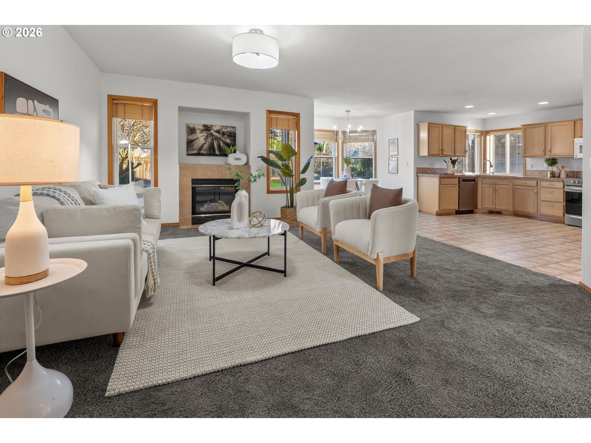 Spacious, single-level home has 1883 SqFt and 3 bedrooms & 2 full bathrooms. Move-in ready with freshly painted interior and exterior trim. Vaulted living Rm adjoins formal dining room. Large open kitchen with eat nook and door that opens to patio and fenced backyard. Family Room with gas fireplace. Primary Suite w/ walk-in closet and ensuite offering both walk-in shower and jacuzzi-style soak tub. Indoor utility / mud room with sink, storage cabinets, and includes washer and dryer. 3-Car Garage! Gas heat and air conditioning. A BRAND new roof was just installed (Jan'26). Nearly 1/4 acre corner lot, conveniently located in central Brookwood area of Hillsboro. No HOA. Open Houses on Sat., Jan 24th from 1-3pm and Sun., Jan 25th 1-3pm